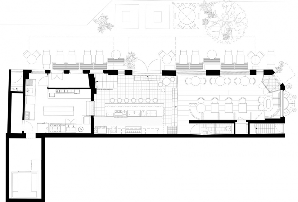 The interior of Gitane is divided into three areas: ground floor; mezzanine; bar. The restaurant is hosted on the ground floor and mezzanine. with the bar two steps down from the ground floor. After the kitchen closes, the ground floor gradually turns into a wine and cocktail bar. Each area has a unique atmosphere to suit a different mood activity and time of day. Together they compose a drinking and dining destination where everyone from food connoisseurs to local residents will feel at home.