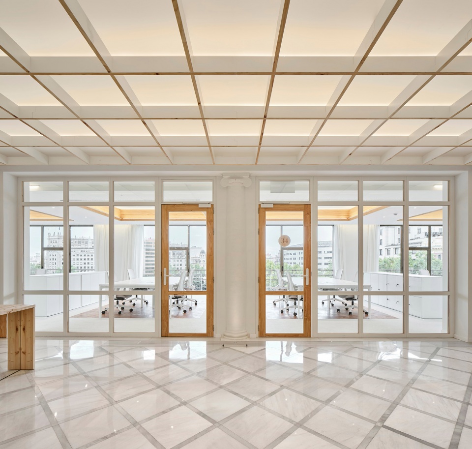 SCOB事务所自豪地公布了其位于巴塞罗那加泰罗尼亚广场的室内改造项目,设计修复并改造了建筑师Puig i Cadafalch早期的建筑作品Casa Pich i Pon大楼,恢复了这栋建筑于20世纪早期的大楼的辉煌。LOOM隶属于梅林地产的灵活办公部门,他们委托SCOB事务所来负责此次的翻新项目,作为其在巴塞罗那扩展业务范围的重要助力。SCOB事务所以西班牙“新艺术运动”Novecentista中提出的美学原则为灵感,并对此进行了现代化的诠释。设计旨在打造共享、开放且健康的空间,重视员工之间的合作精神,以良好的照明和通风,以及优质材料和工艺技术,来为员工们创造出时尚,简单和舒适的工作环境。