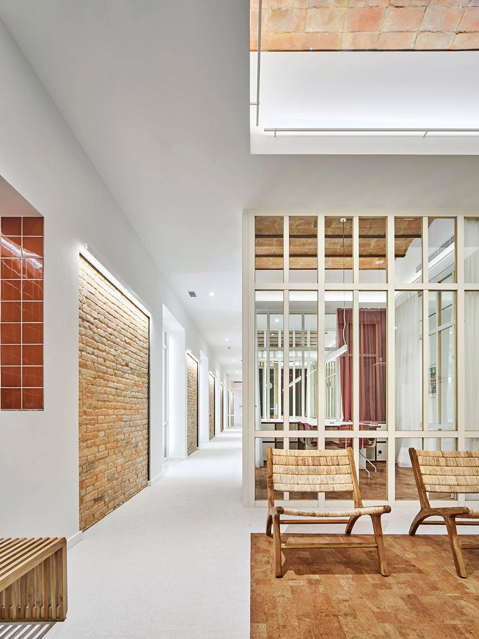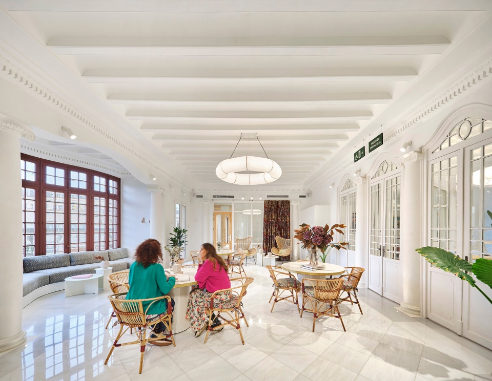 The sensation of community is closely linked to the sensation of belonging. For that reason, the architects wanted to highlight the values and philosophy of contemporary workspaces, drawing on the spirit of collaboration, community, and shared effort. The design aims to recreate a modern version of the classic athenaeum. These places represent successful models of social and cultural exchange in many cities, but especially Barcelona, dating back to the beginning of the 20th Century. They are hybrid spaces that combine work and research, informal meetings, cultural events, and the sensation of ‘being at home’. The choice of materials such as wood, ceramic, marble, velvet, rattan, cork, and cotton fabrics accentuates this material and temporal throwback.