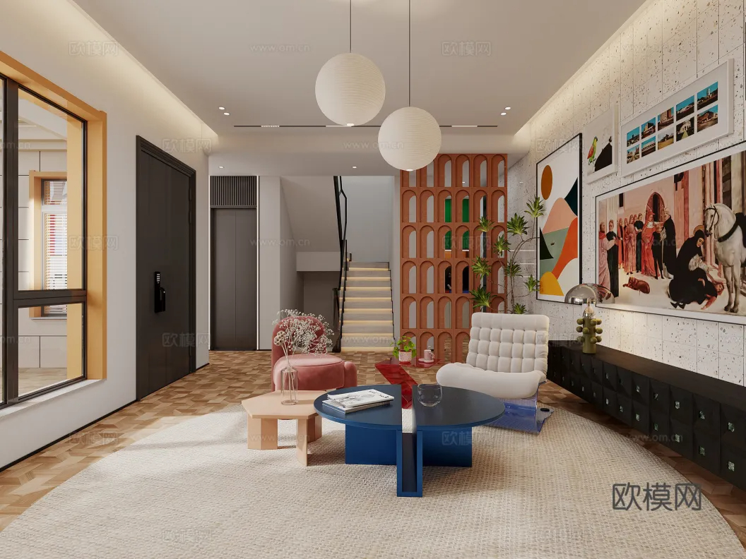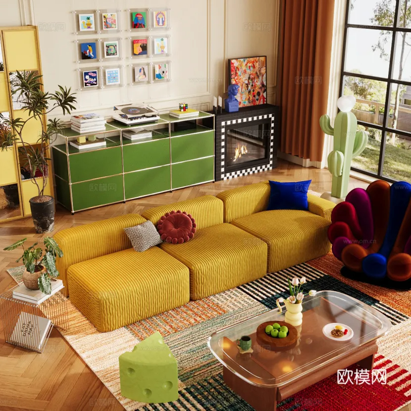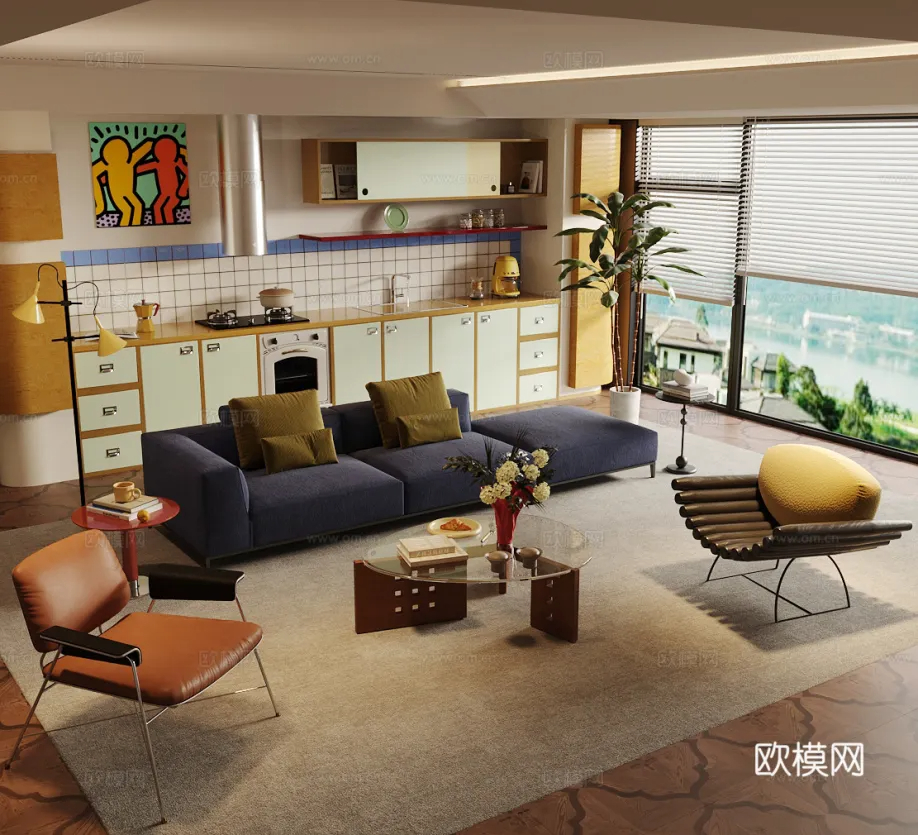 包豪斯+孟菲斯客厅3d模型ID:15789031