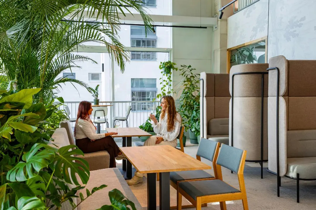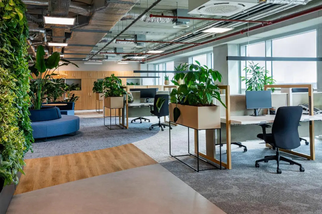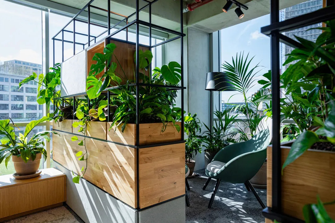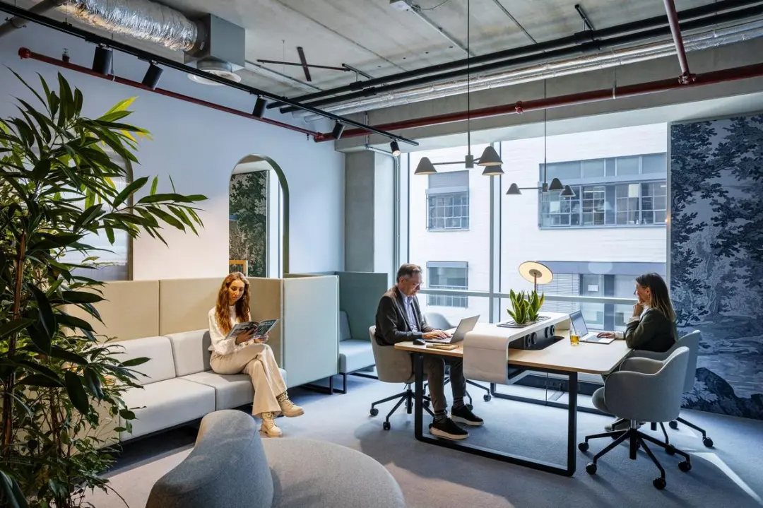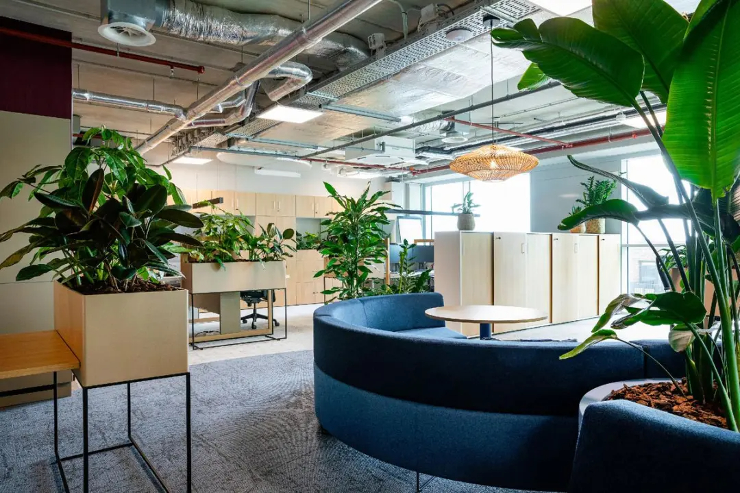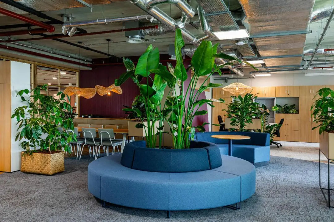 开放式工作区以自然景观为灵感,谷地区设有厨房和餐吧式布局,促进交流;涌泉区以流水幕墙为视觉焦点,令人静心凝神。每个工作区都有专属功能与命名,“三角洲区”设有钢制书柜,“水沼区”设有靠岸平台和声学波浪长椅,“森林区”则以墨绿地毯、繁茂绿植等营造舒适办公氛围。