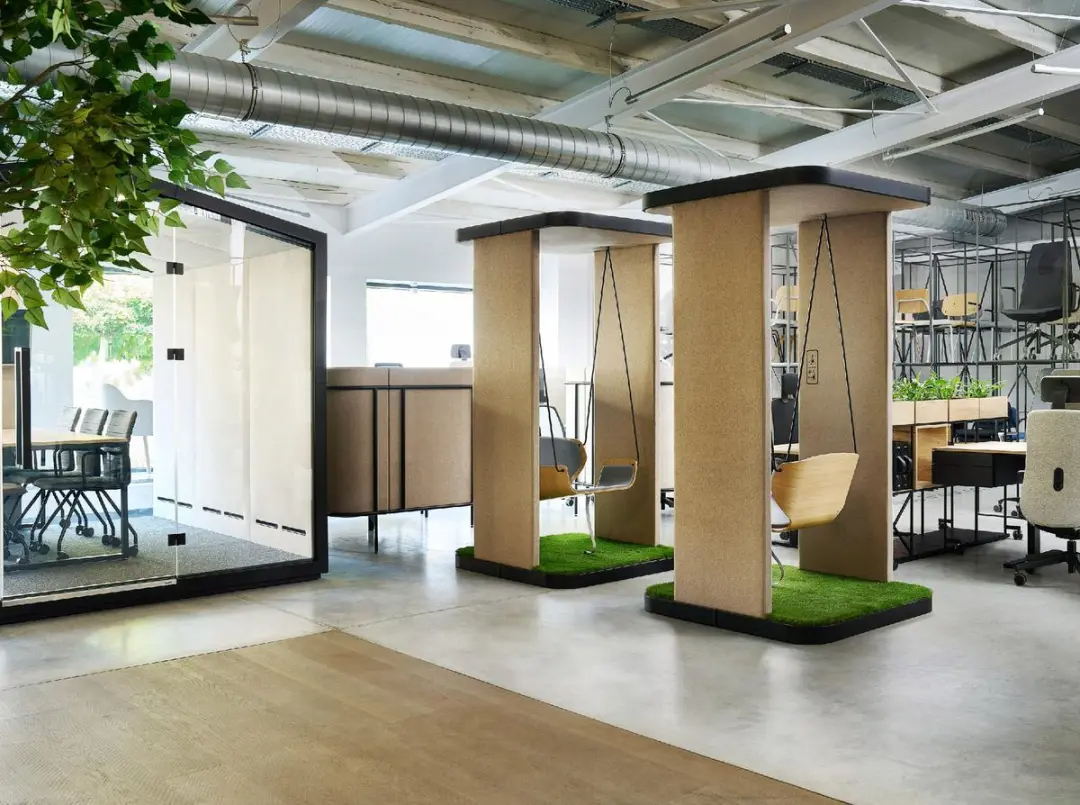 展厅内还有诸多惊喜细节,如“社交秋千椅”和艺术化编排的储物柜系统。这里超越传统展厅范畴,化身真实办公场景的缩影,依托顶尖品牌办公家具解决方案,成功打造美学与功能兼具的办公范本,是对未来办公形态的生动预演。