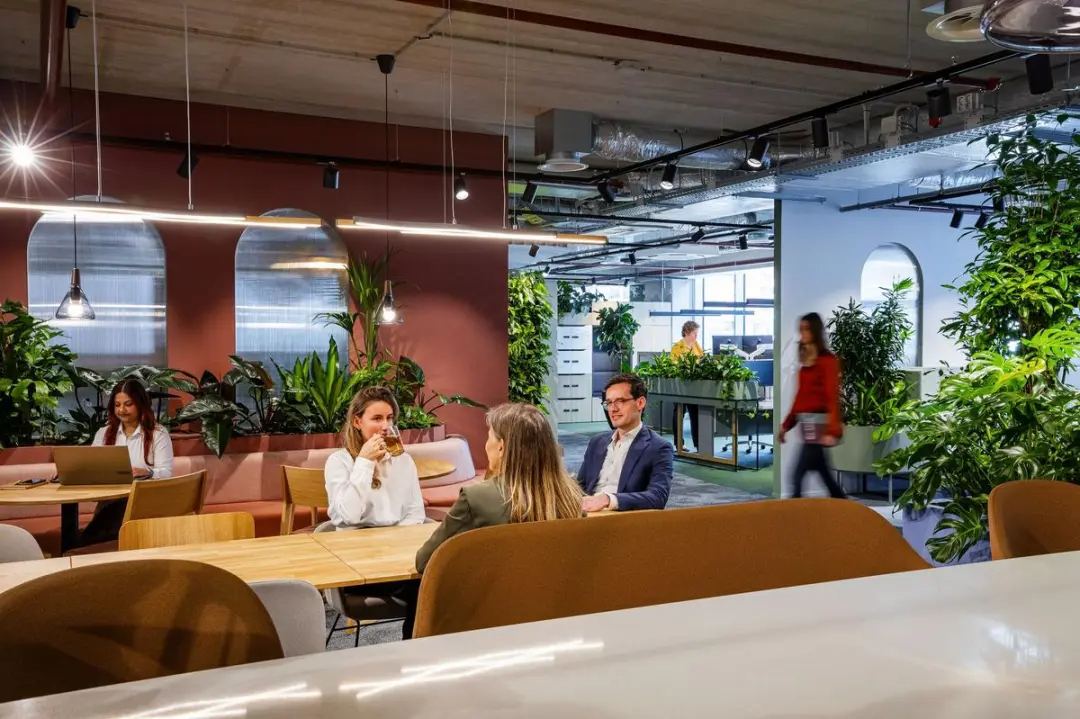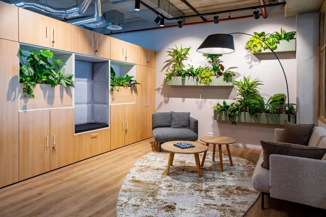 Be-Max是Bejot和Mikomax品牌在荷兰商务市场的独家进口商,为开放式办公环境提供高端解决方案,展厅设计也以此为起点。展厅遵循“亲生物设计”理念,通过植物、光影、水景与有机形态等自然元素,将办公空间转化为健康高效的工作场域。设计团队将空间划分为多个功能区域,每个区域都有独特定位、色彩搭配、材质运用及专属命名,呼应自然景观与生态过程。