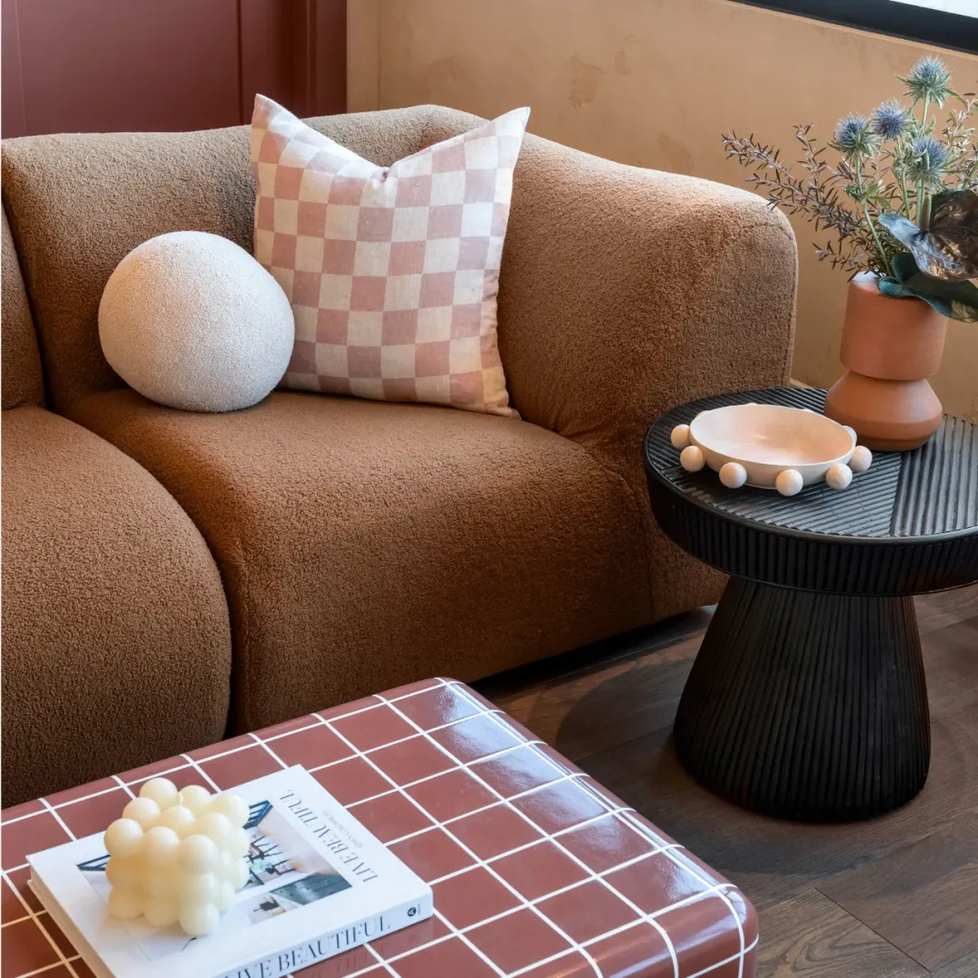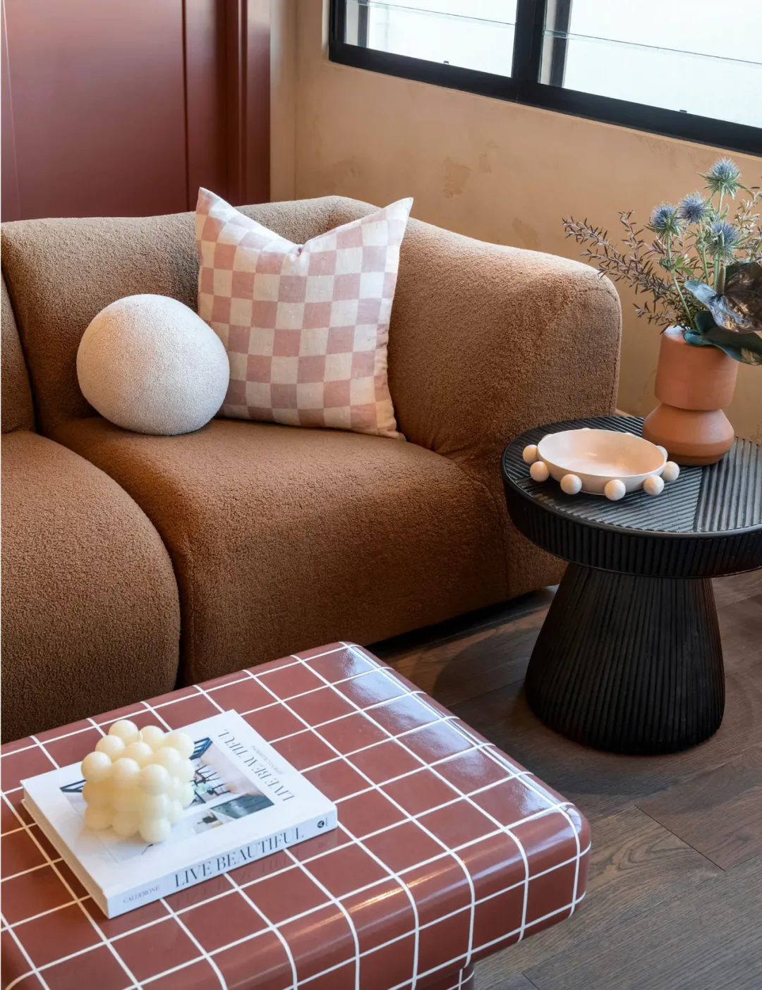 临窗处的小客厅一张咖色绒面沙发配以弧形茶几,阳光穿过落地窗倾泻而入,这里既是私密休憩所,也是偷得浮生半日闲的阅读角。
