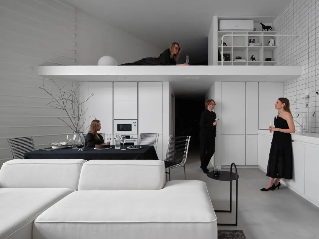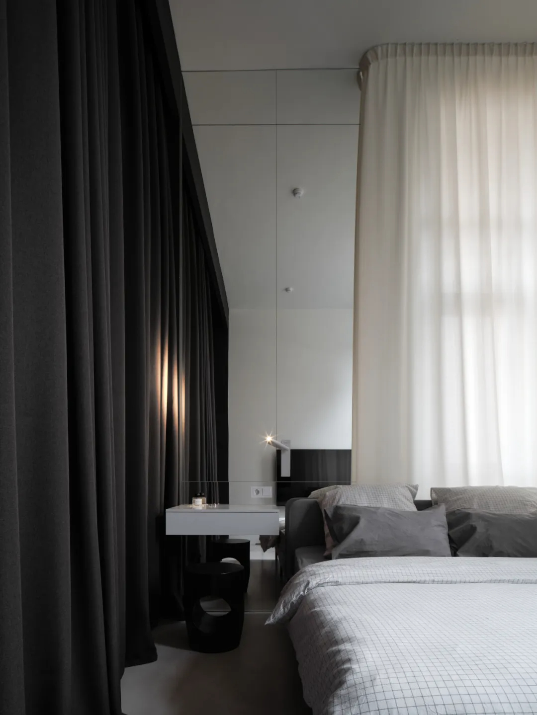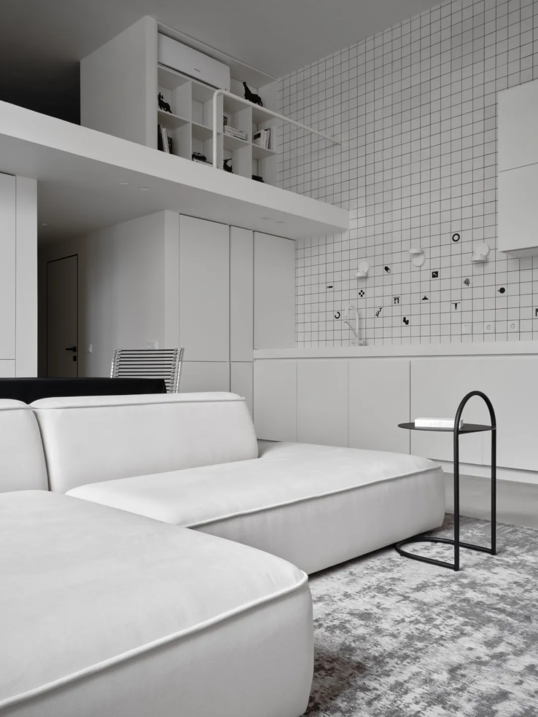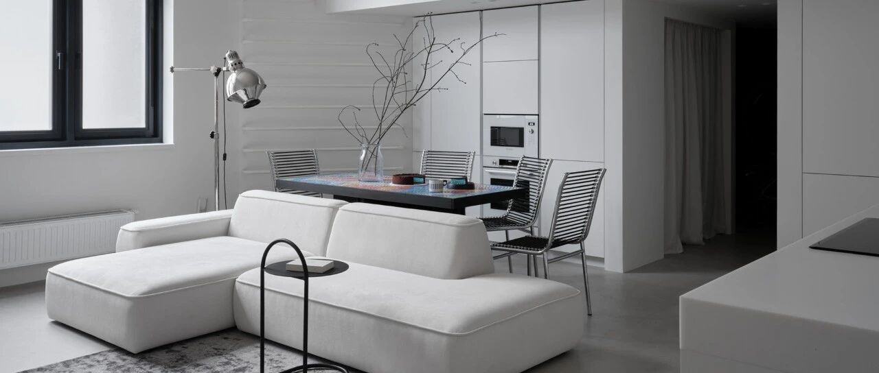 纯白基底搭配黑灰软装,比例精准的家具释放舒压感。