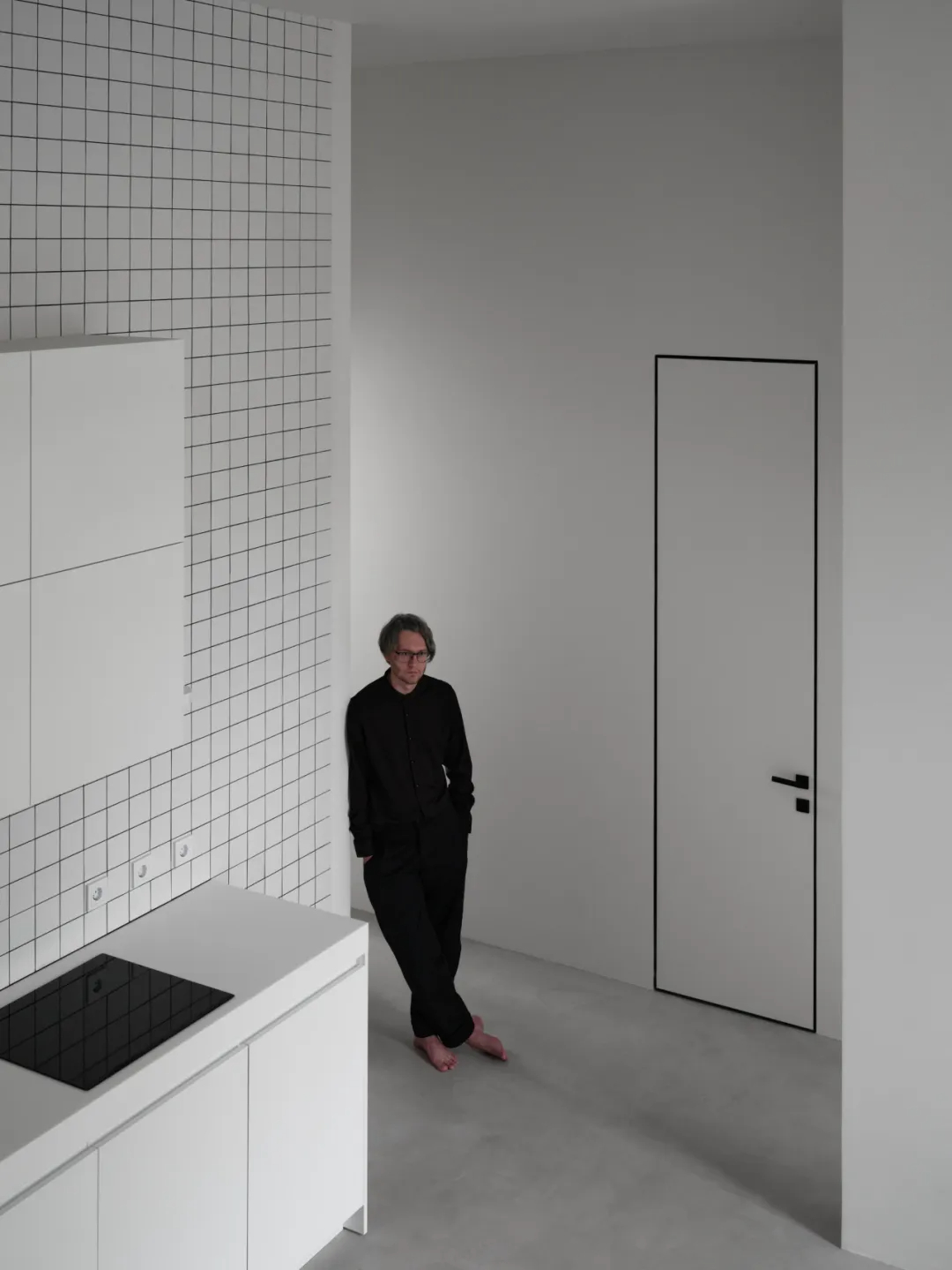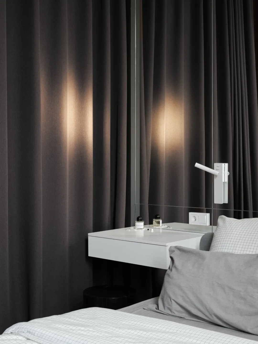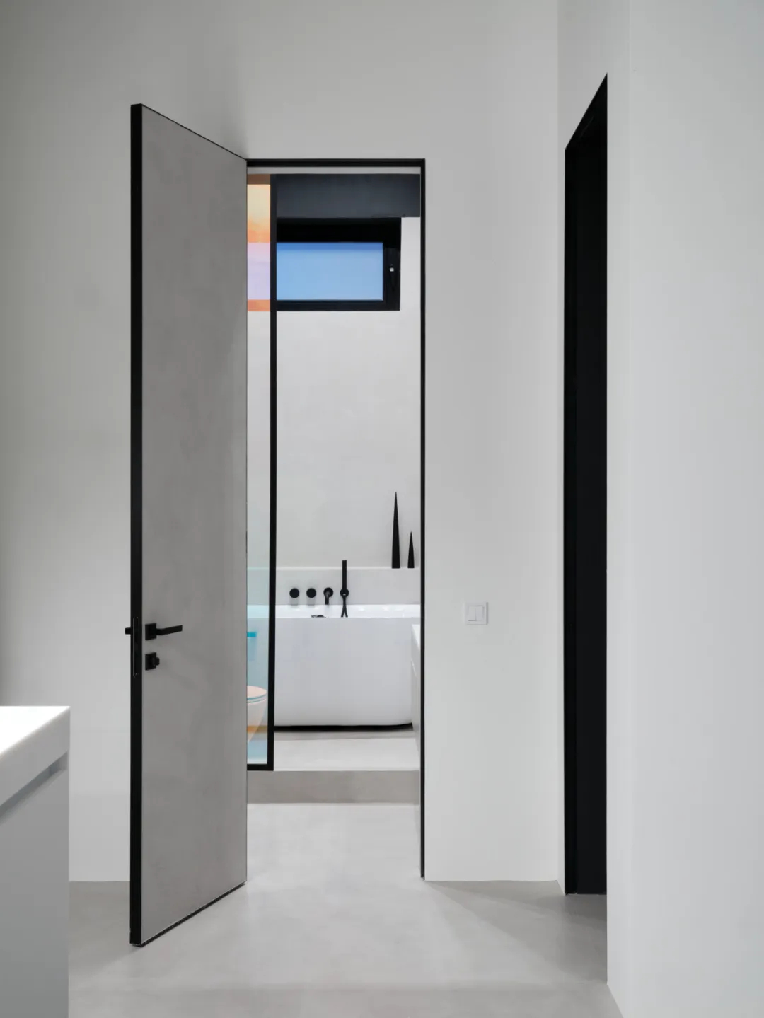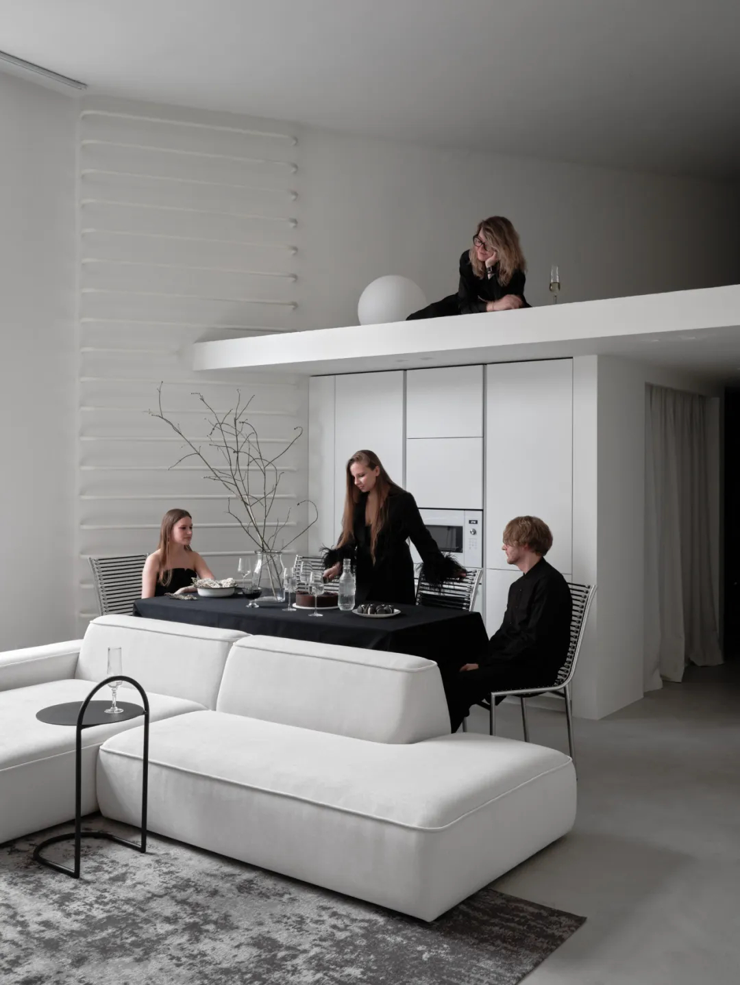 纯白基底搭配黑灰软装,比例精准的家具释放舒压感。