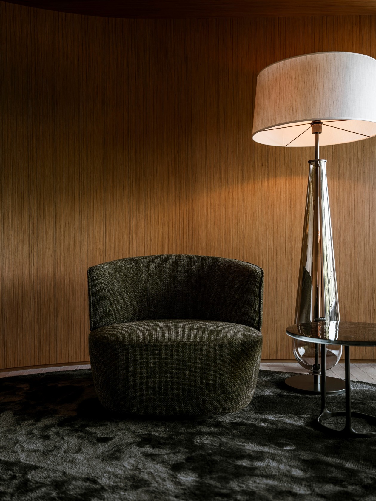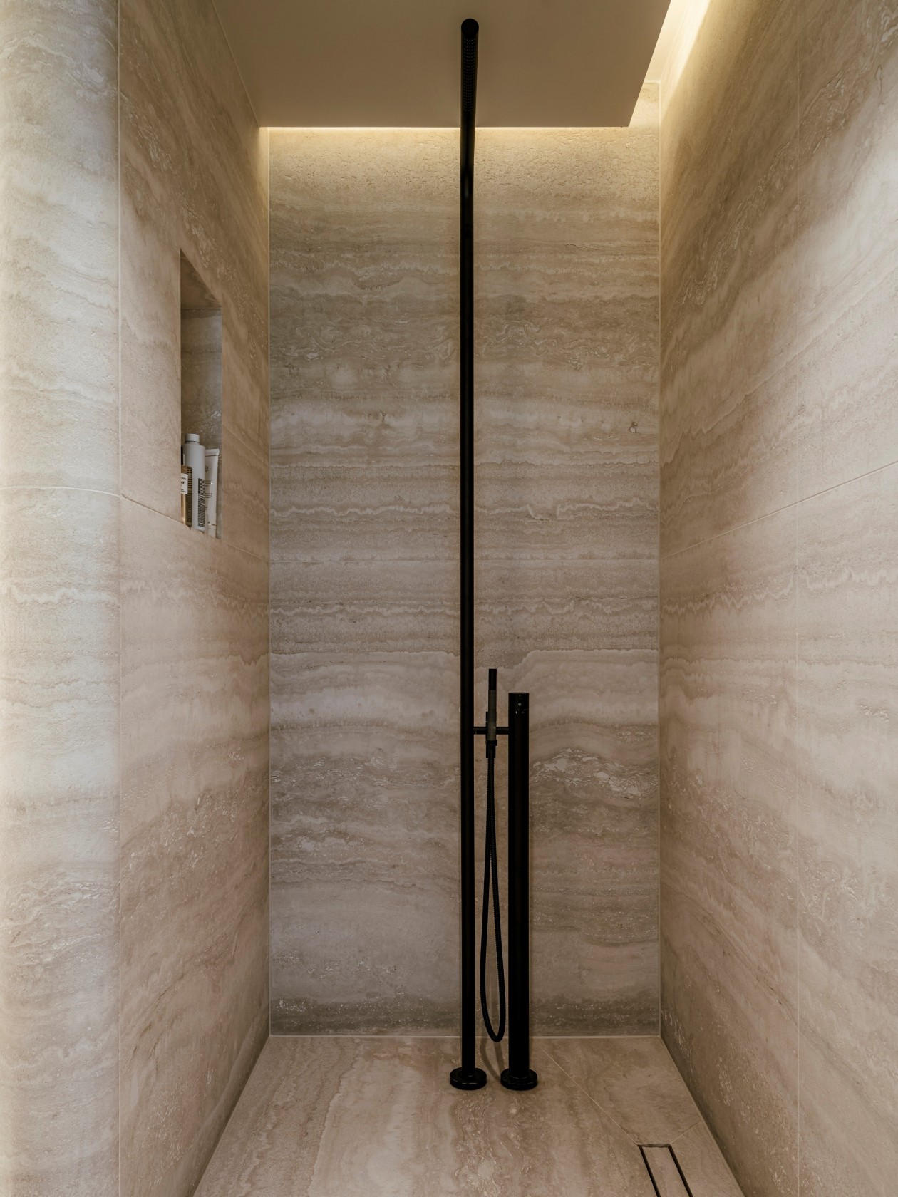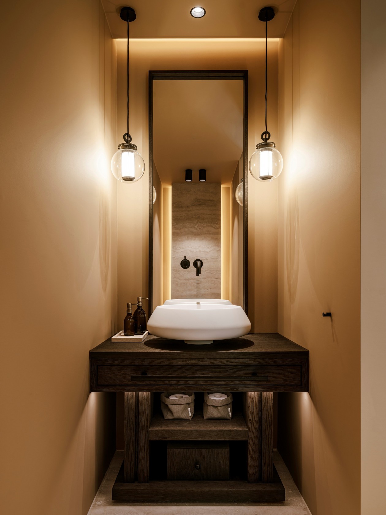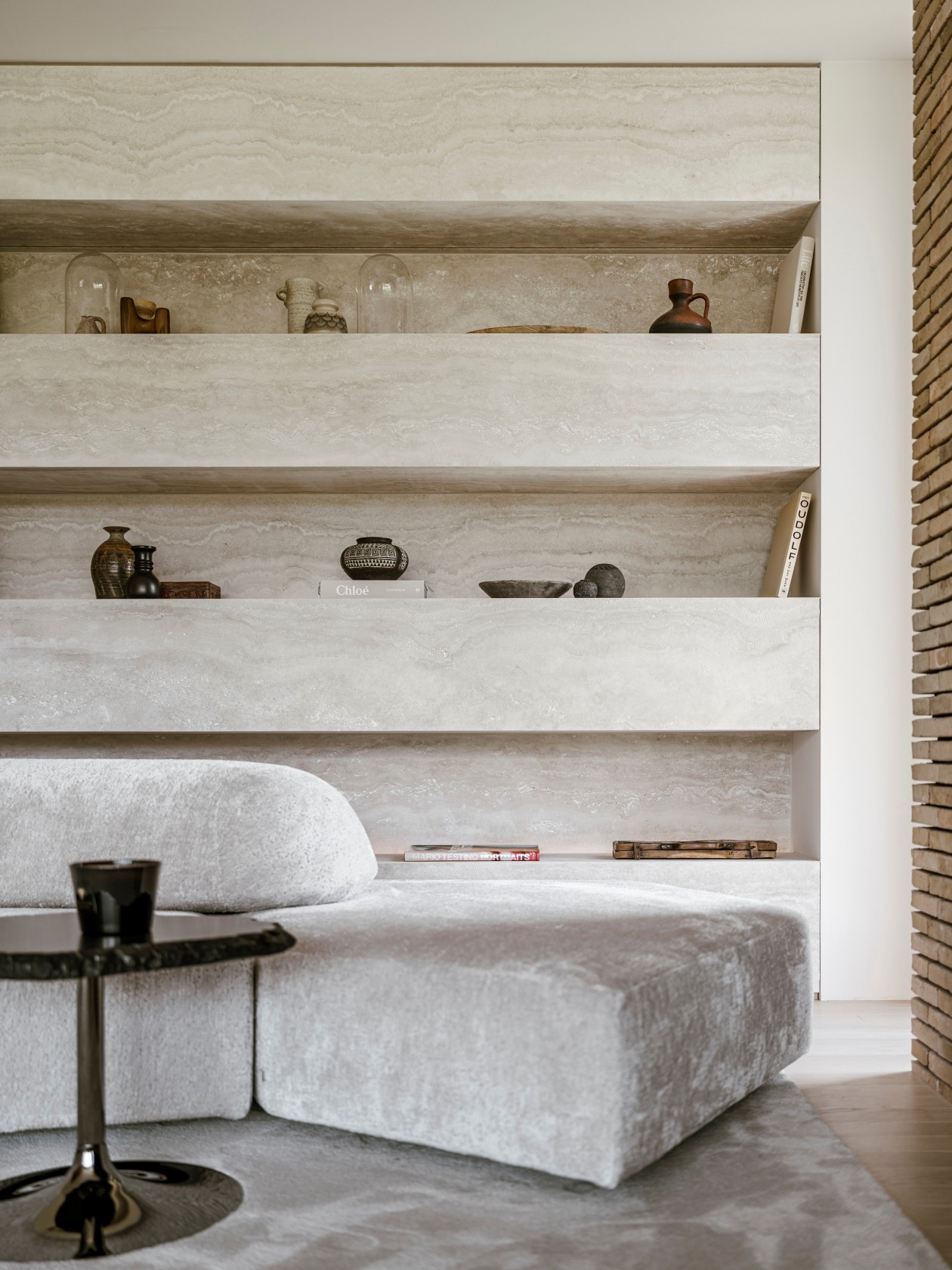 整个别墅的设计都用了预加工柚木面板,搭配石灰华和微晶粒,这三种材料结合在一起,不仅让房子结构稳固,质感也很出众。柚木的温润、石灰华的厚重加上微晶粒的细腻,让室内外都显得扎实又大气,阳光照进来时,还能看到不同材质上的光影变化,特别自然。
