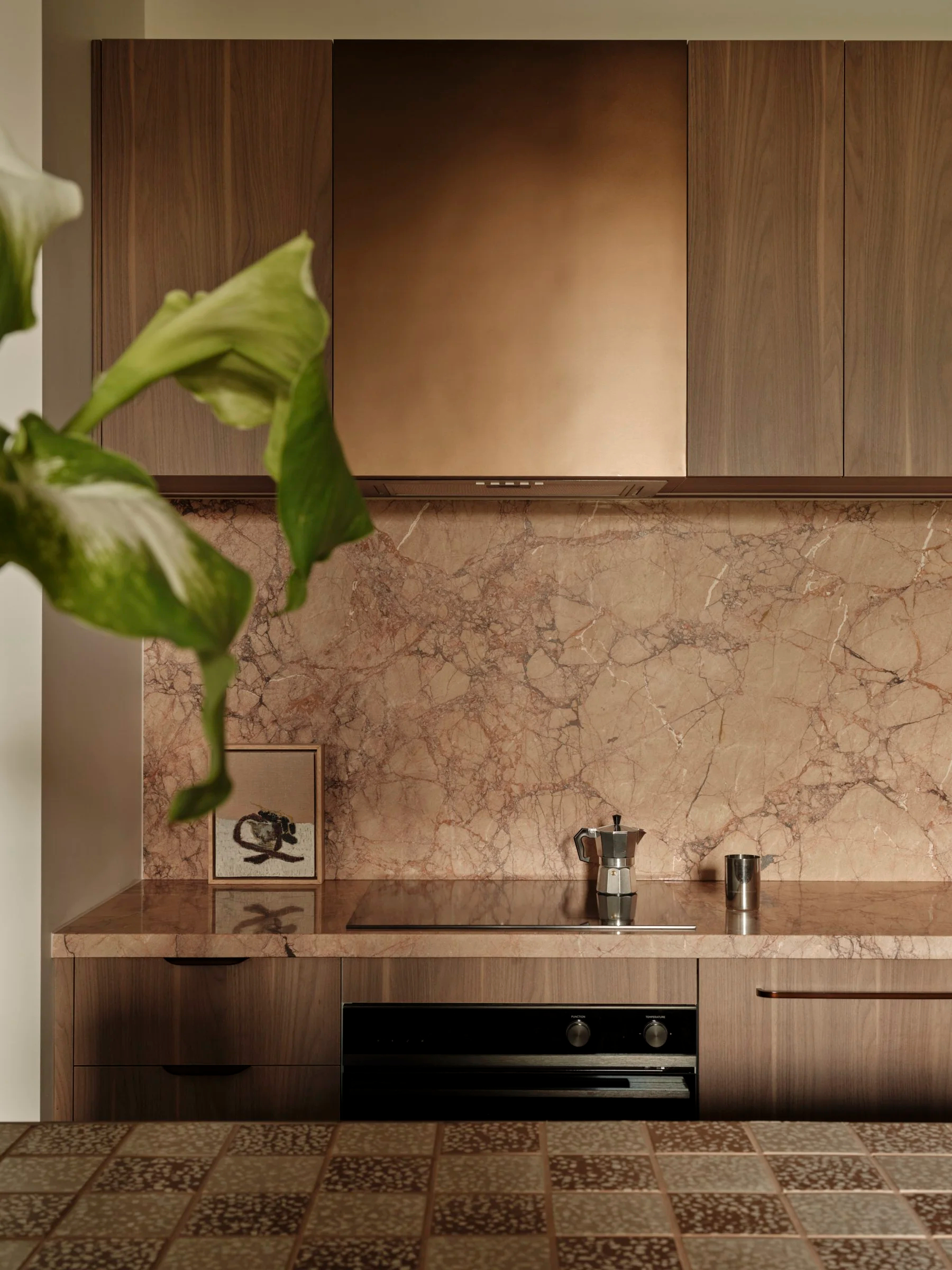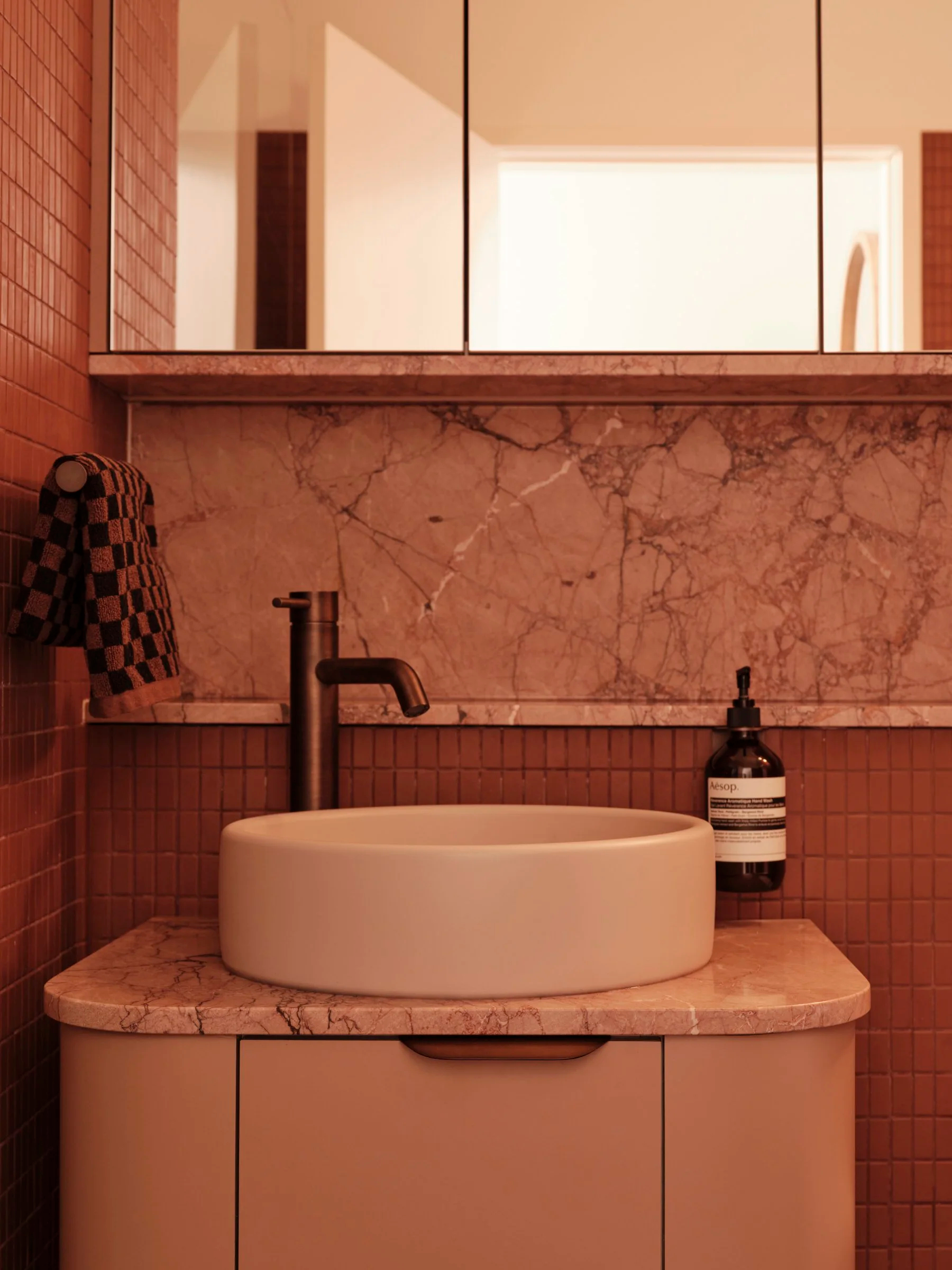 这间曾经略显老旧的出租公寓,经过细致而深思熟虑的改造,如今成为屋主专属的、富有温度与精致感的私人居所。自然石材、水磨石瓷砖,以及柔和有机的色调,共同赋予室内一种低调、优雅却不失奢华的氛围。
