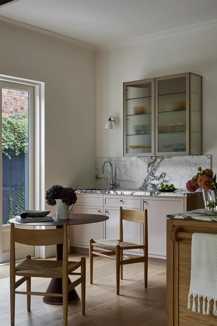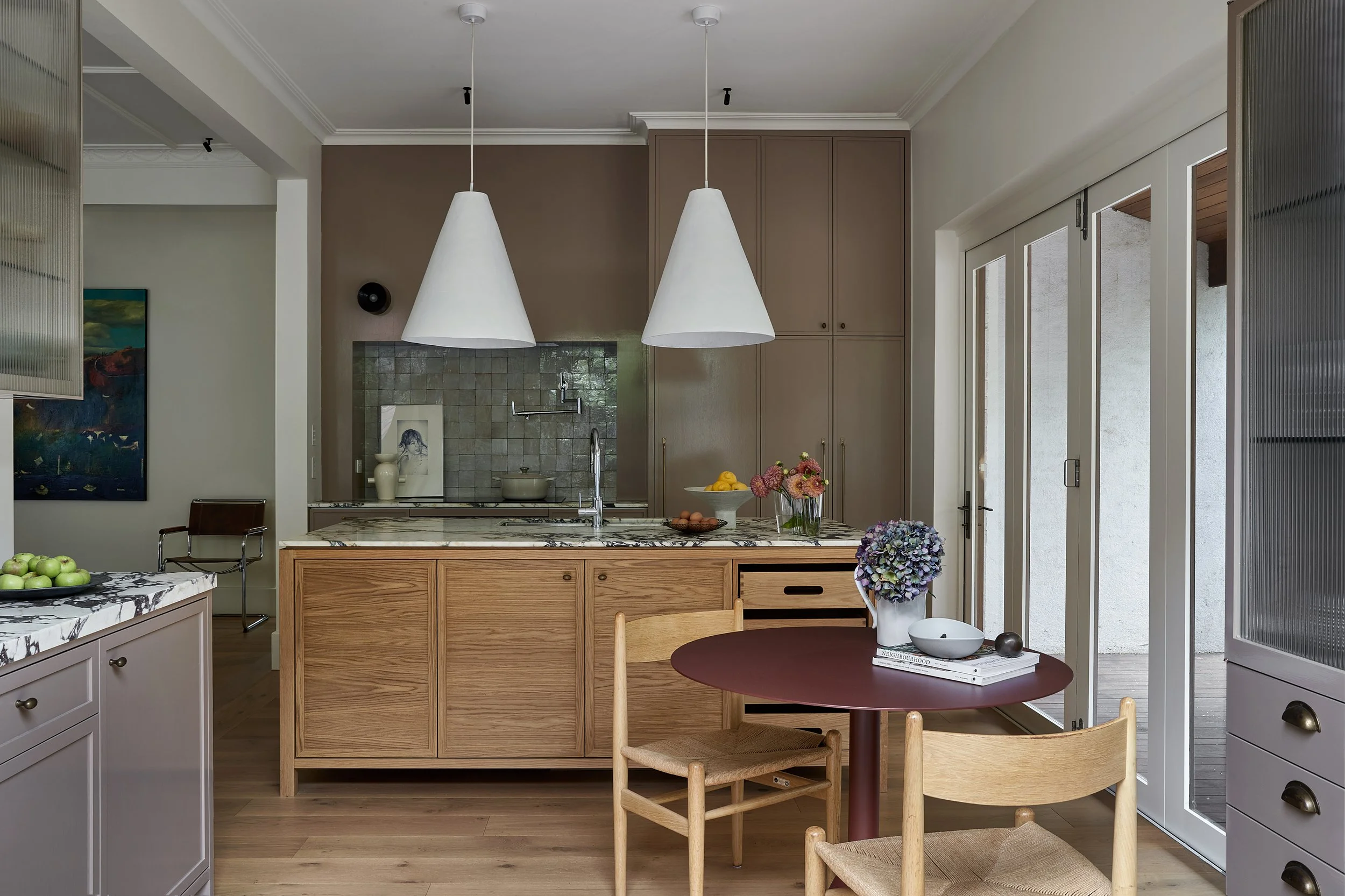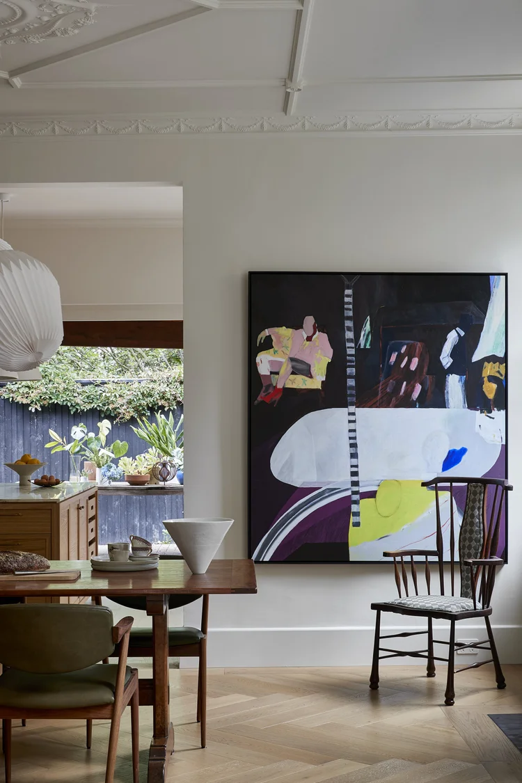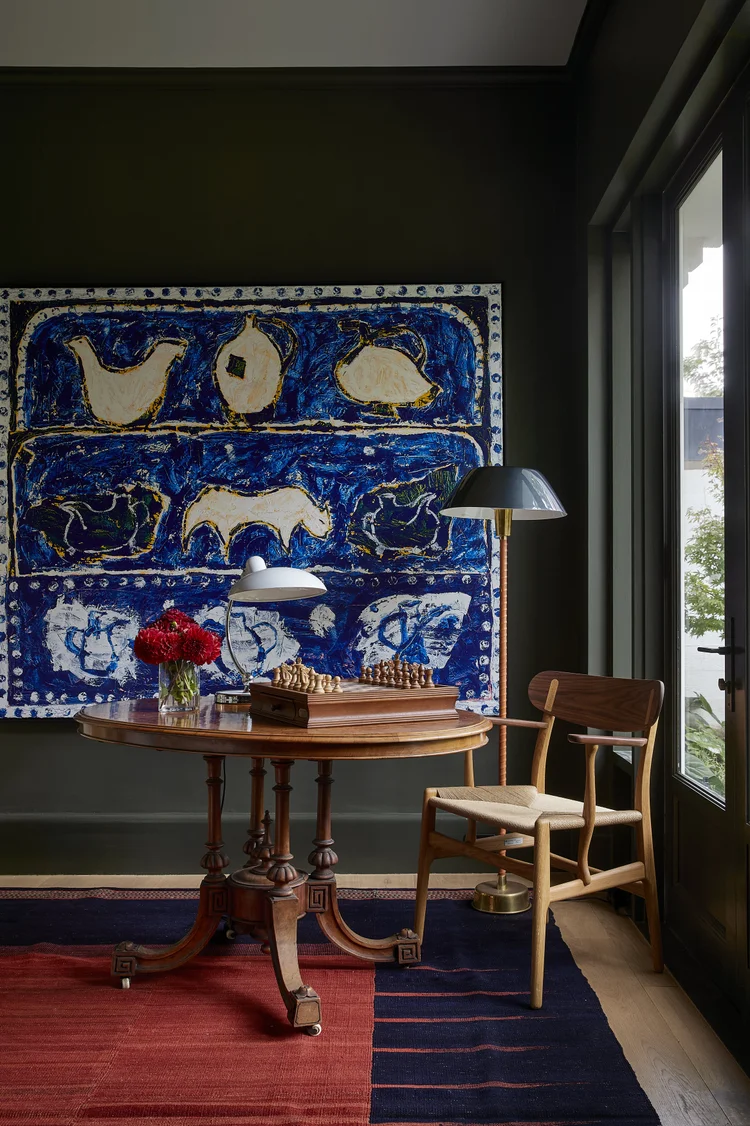 色彩、材质与个人收藏品的精心布局,如同用一种共同语言的不同方言,为每个继承下来的空间描绘出独特的个性。通过与业主及其藏品的紧密协作,设计师运用色彩理论,最终选用了沉静的绿、大胆的粉与深邃的软木色,这些色彩以一种非常个人化的方式,与房屋的时代背景轻声对话。
