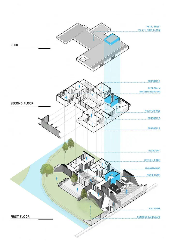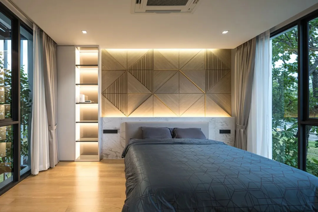 设计同时回应了热带气候的日照特点,立面与百叶系统为室内提供恰当的遮阳,有效调节光线与热量,提升居住舒适度。