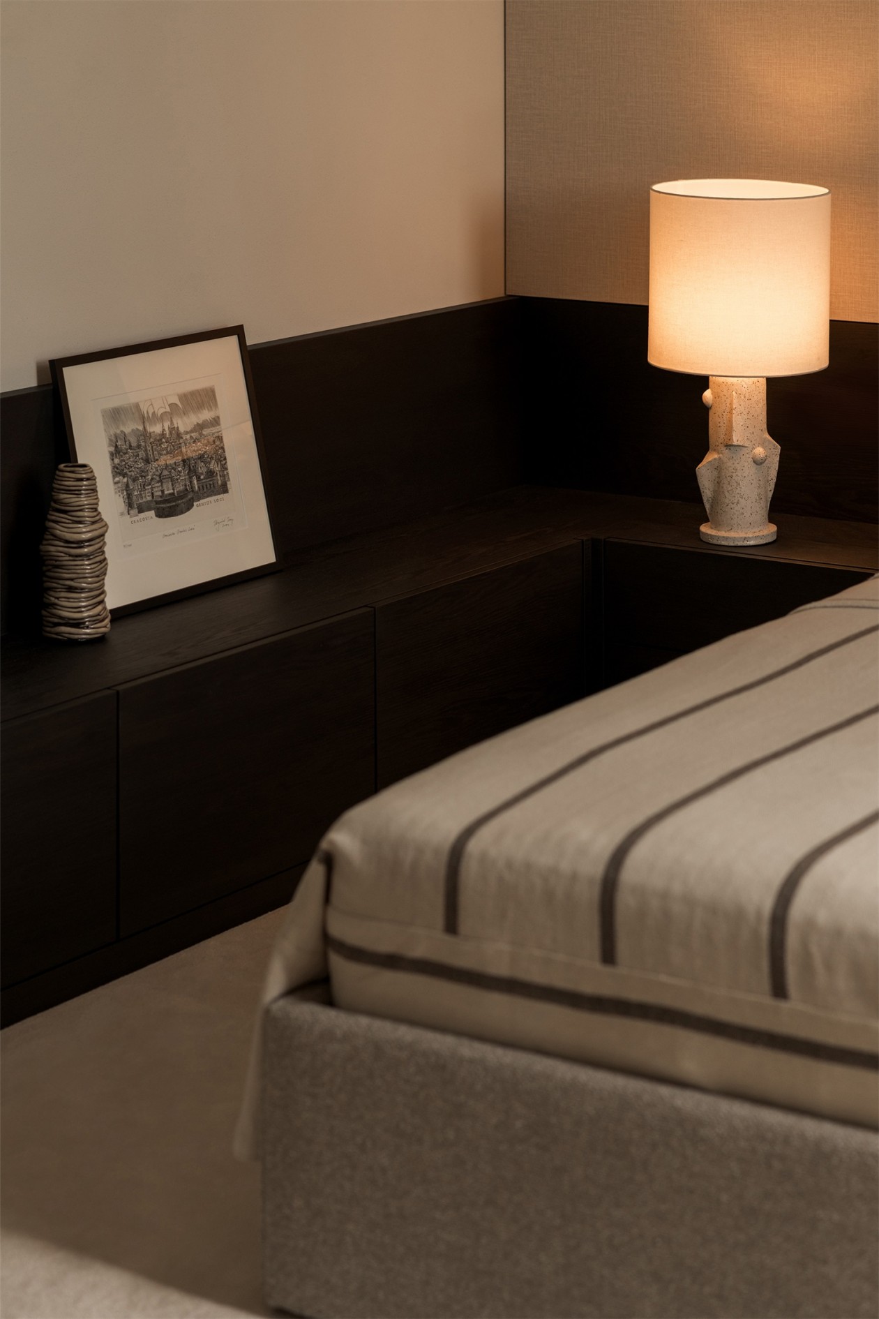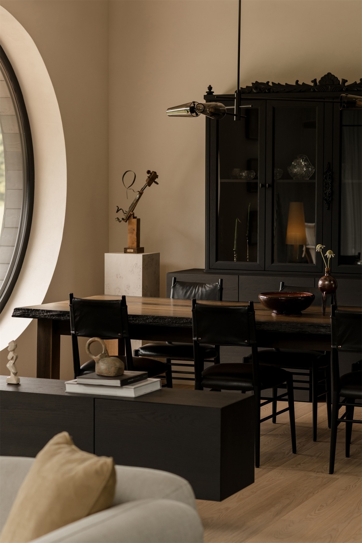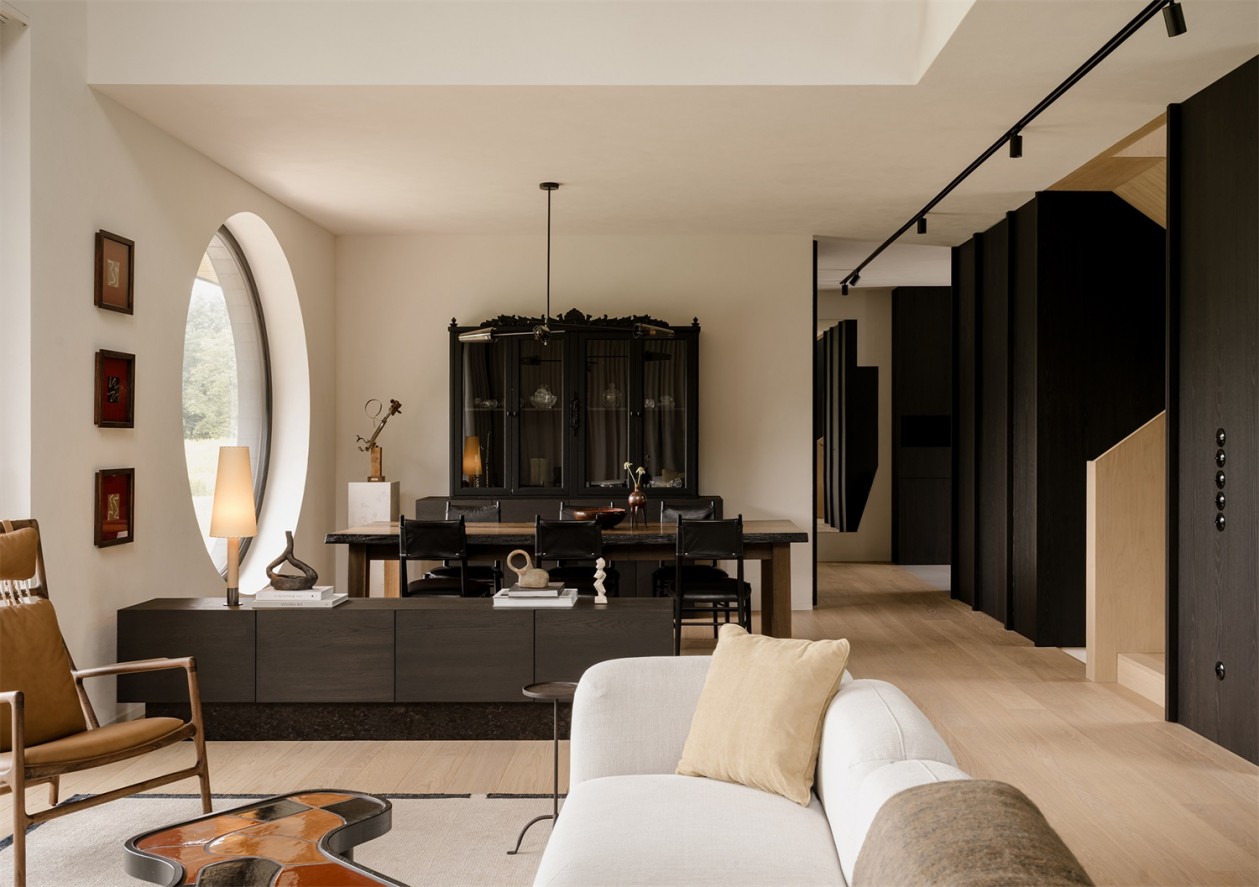 设计并未追求视觉上的炫技,而是在触感与光影之间建立起一种深沉的安静。客厅里定制座椅围合出柔和尺度,材料层次轻声叙述着岁月感。置身其中,仿佛被温柔包裹,进入无需刻意的放松状态。屋主常感叹,这里像远在欧洲的某处熟悉之地,带来久违的宁静与隐逸。