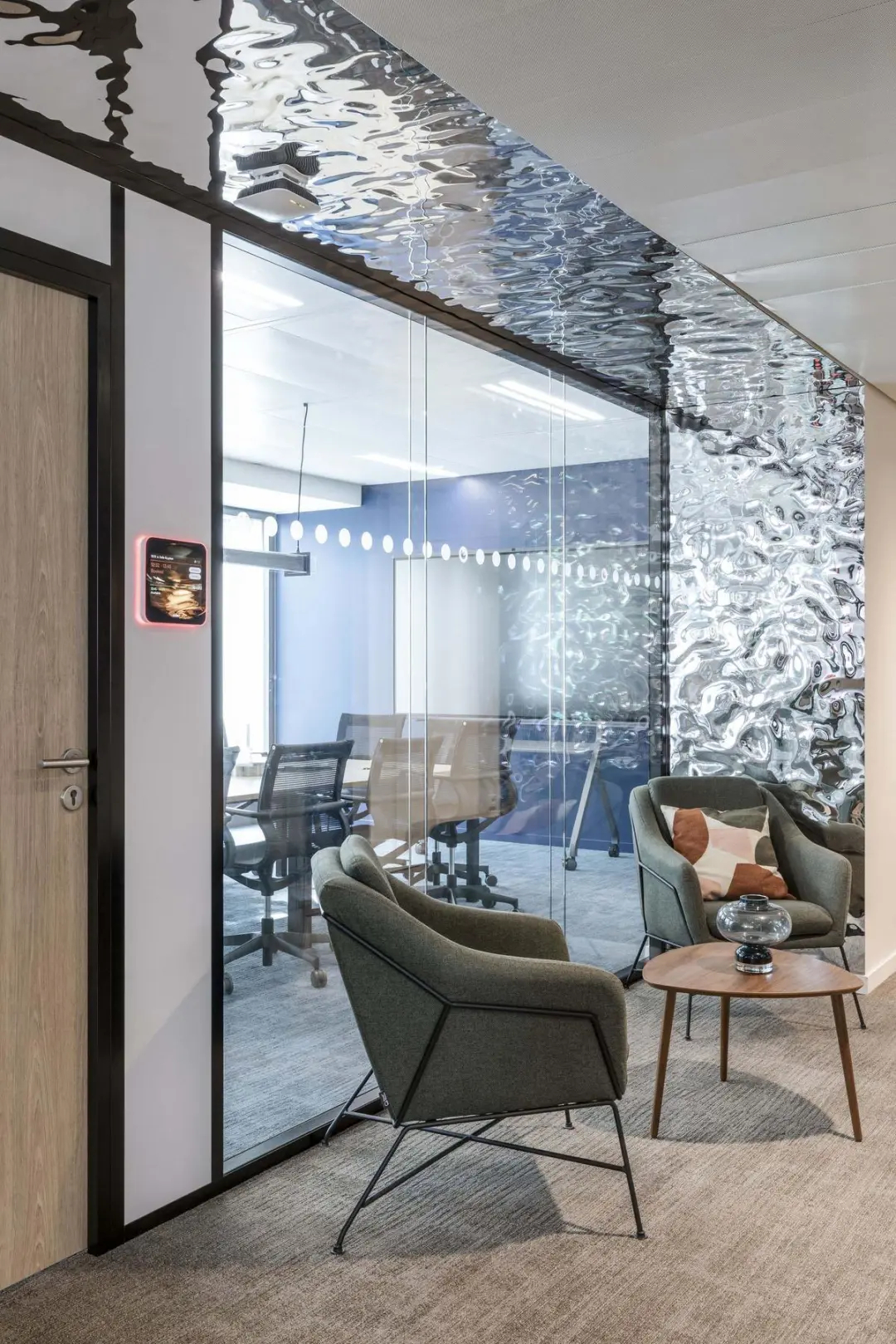 功能布局上,元素逻辑同样发挥着关键作用:“火区”作为会议空间,激发观点碰撞;“水区”适配电话沟通等私密场景;“气区”专供头脑风暴,助力创意迸发;“土区”则设为独立办公区,保障专注工作需求。这种精准的场景划分,让空间价值最大化。