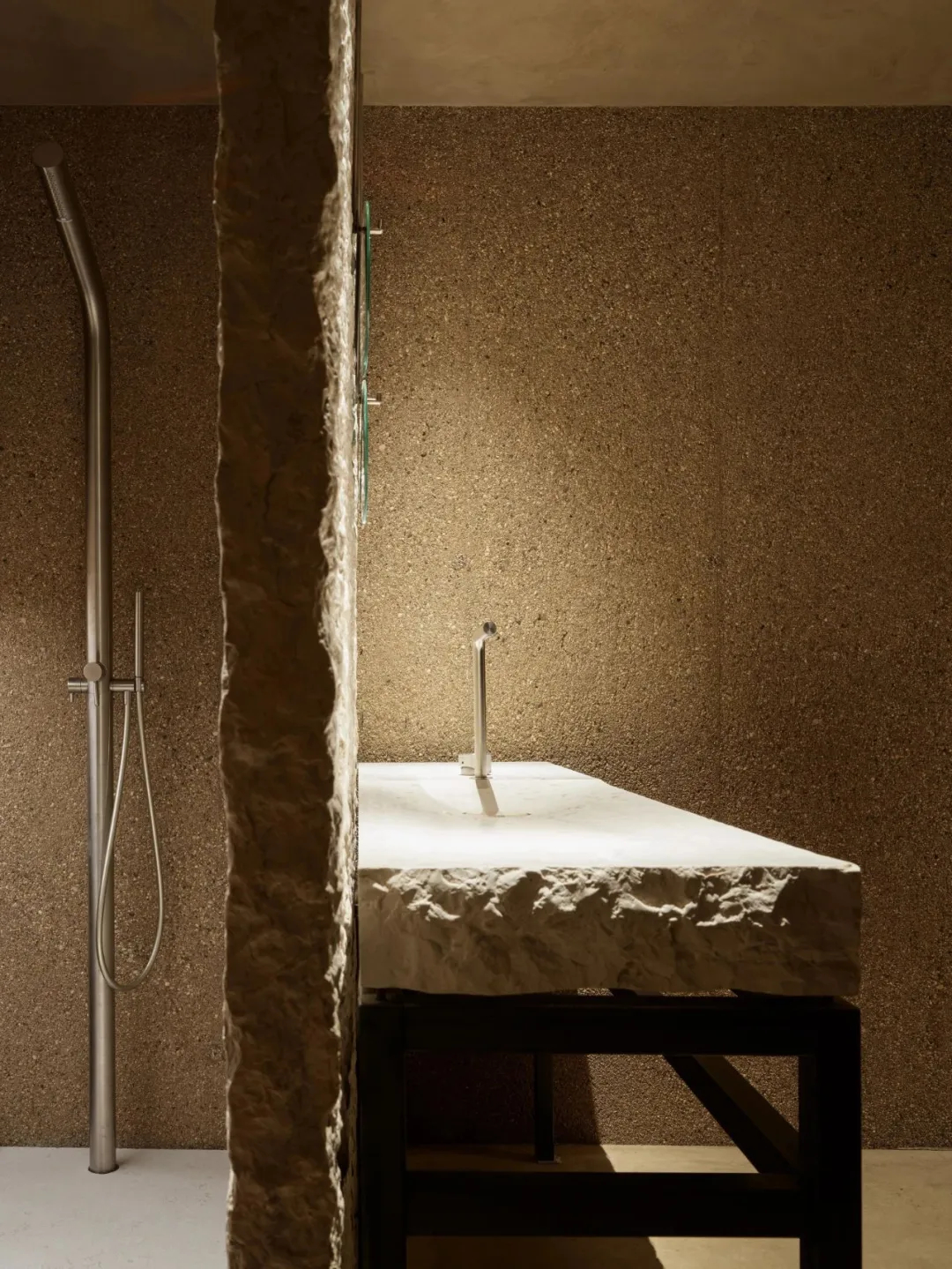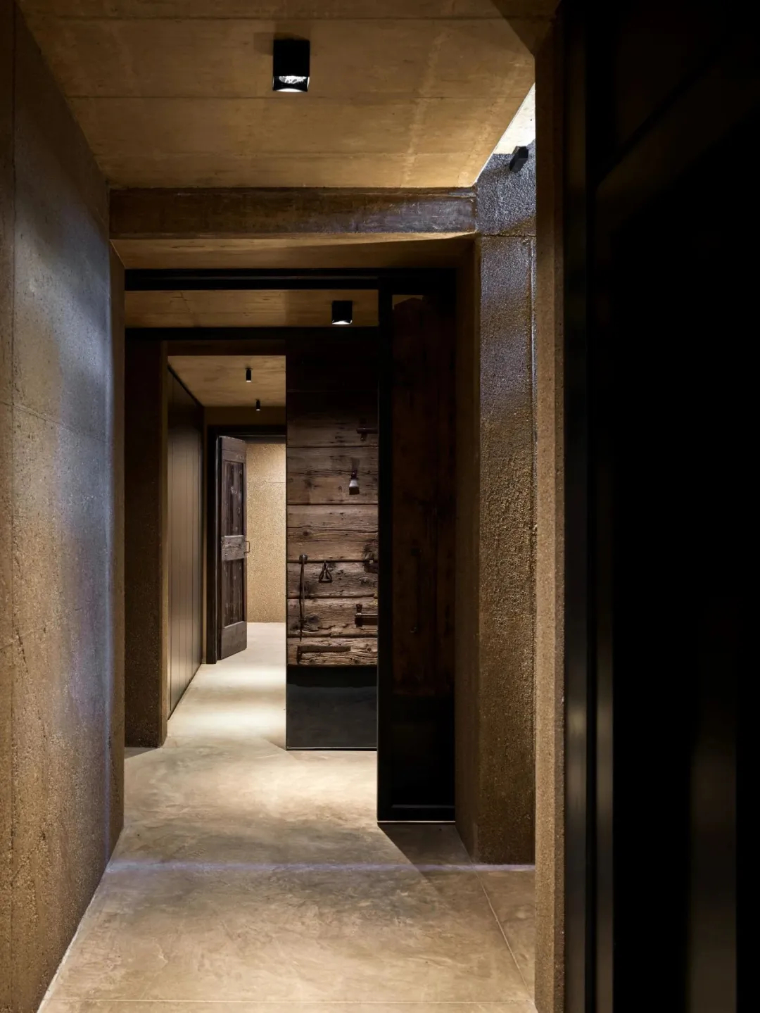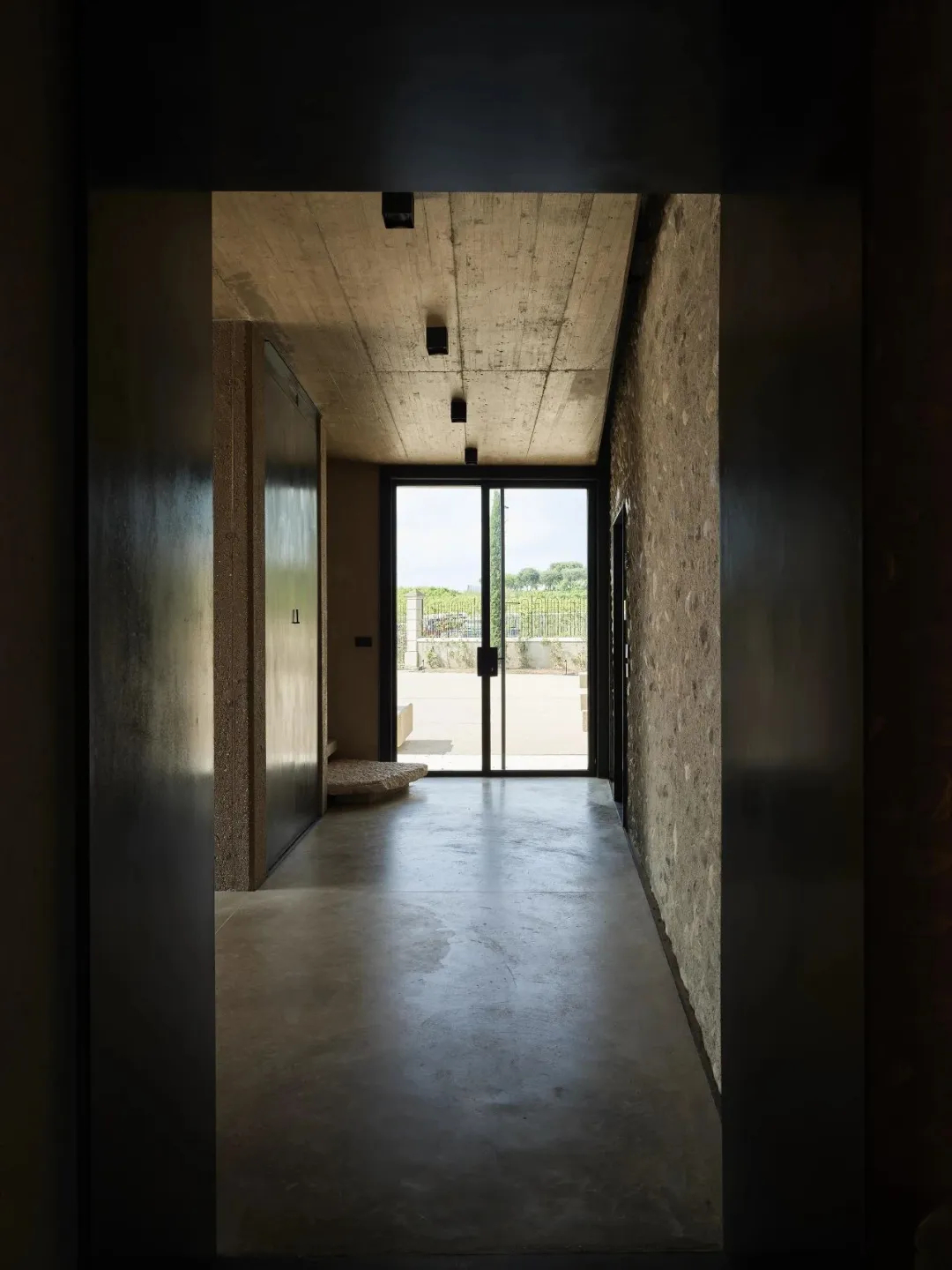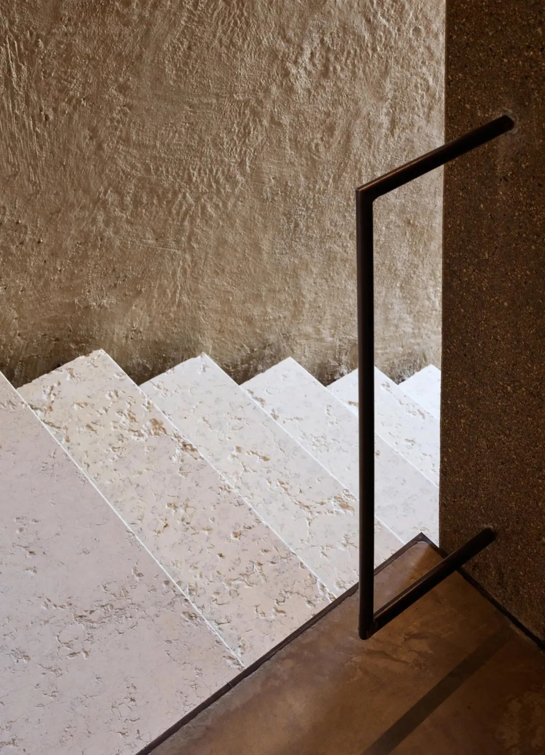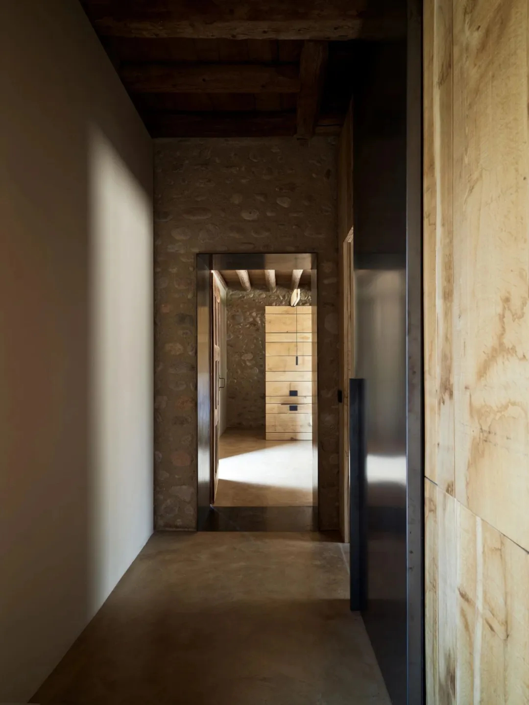 石墙、木质天花板及混凝土地面相得益彰,既保留古朴质感,又融入现代元素,营造出和谐且富有韵味的空间氛围。
