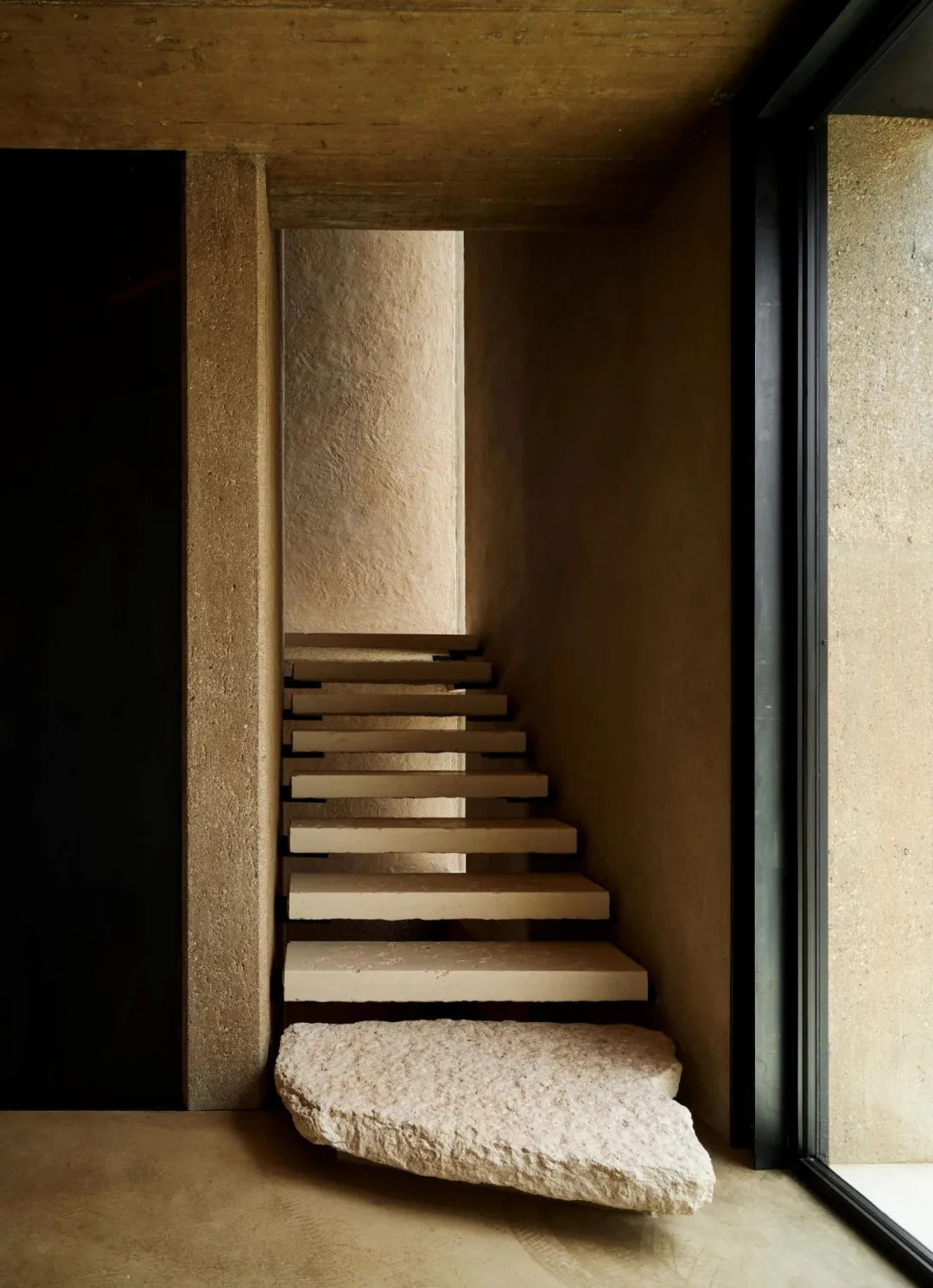 门与楼梯设计简约而独特。门多为黑色金属材质,线条利落;楼梯以石材为主,搭配黑色扶手,造型别致。