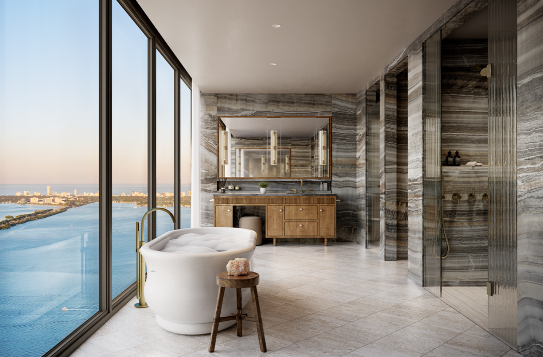 72 套的豪华住宅,涵盖半层和全层单元,住宅空间从 3 居室至 5 居室不等,每套住宅都享有 360 度水景,最大限度地展示了比斯坎湾的壮丽景色。