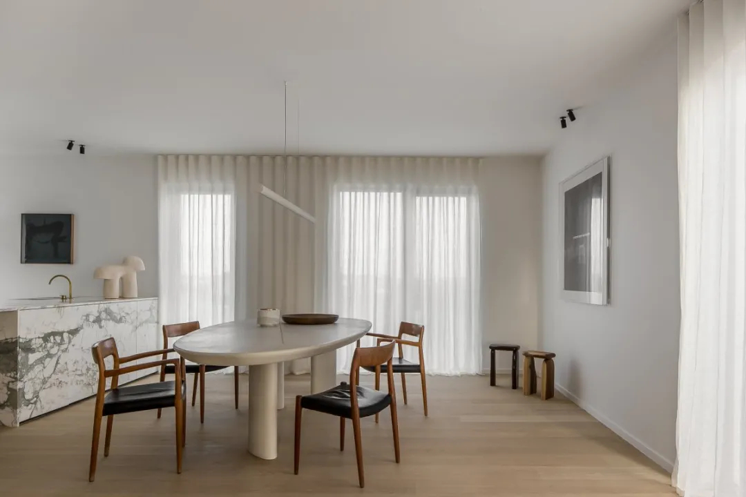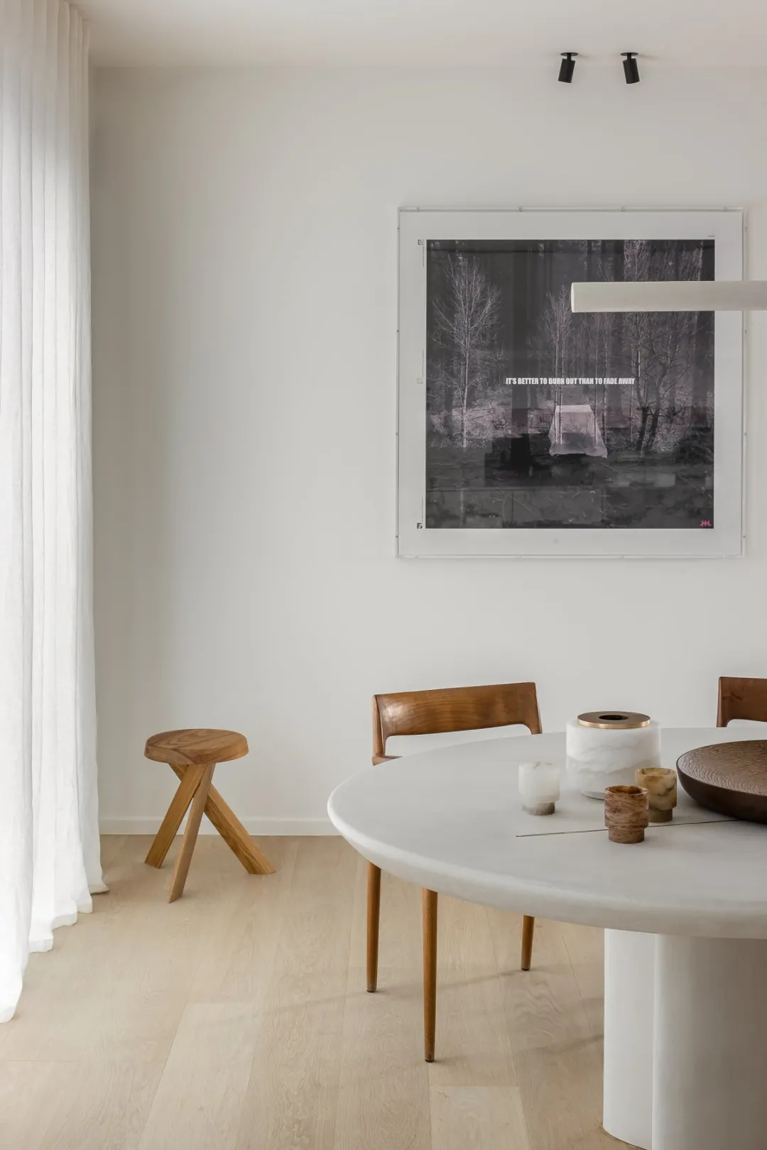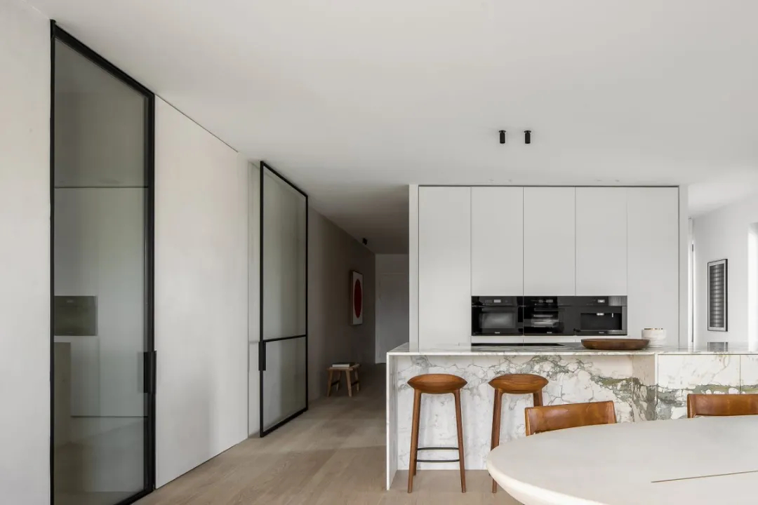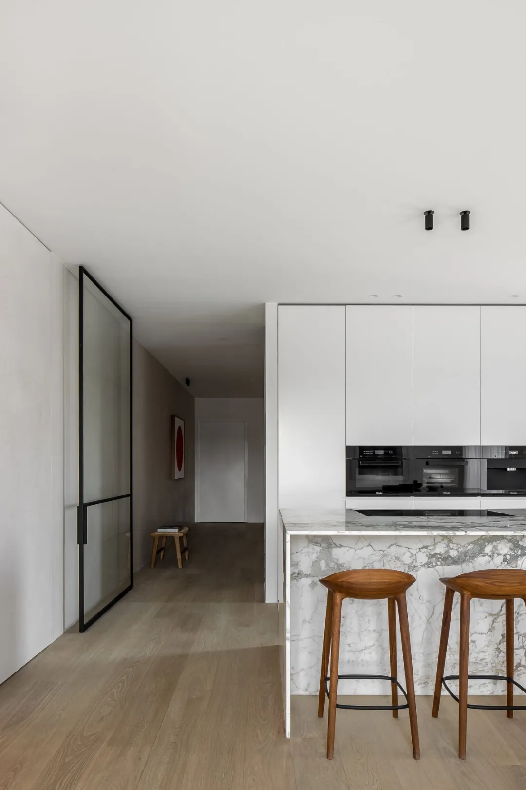 VPS是位于比利时Oudenaarde的一间250㎡的私人住宅。客户青睐于乡村的清新空气,他们想在这座城市中拥有一个可以将他们从城市生活的喧嚣中分离出来的极简公寓。为了创造一个经得起时间考验的室内空间,Thais Niville选择了无可挑剔的产品和细节,并将其完美地带入了这间住宅中。