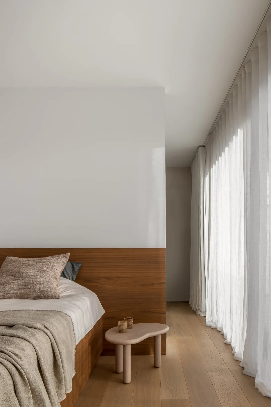 住宅在大体与细节方面都完美呈现了中性色调和天然材料的合拍。亚麻窗帘和橡木地板都散发着更低调,更舒适,更本质的味道。