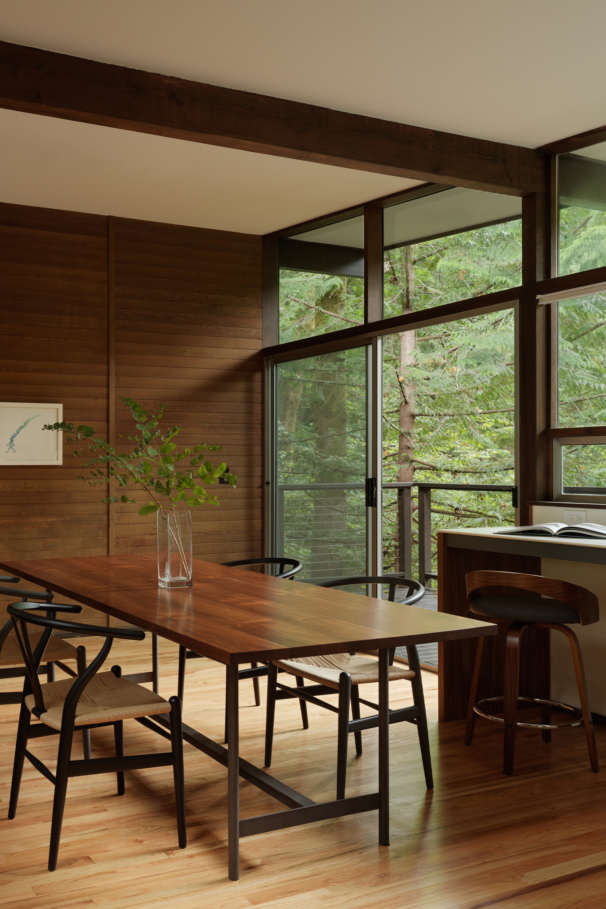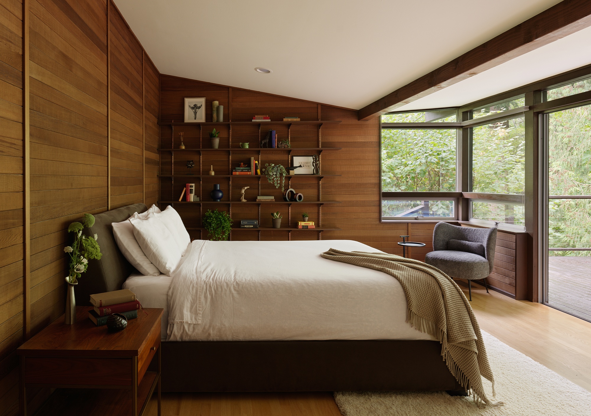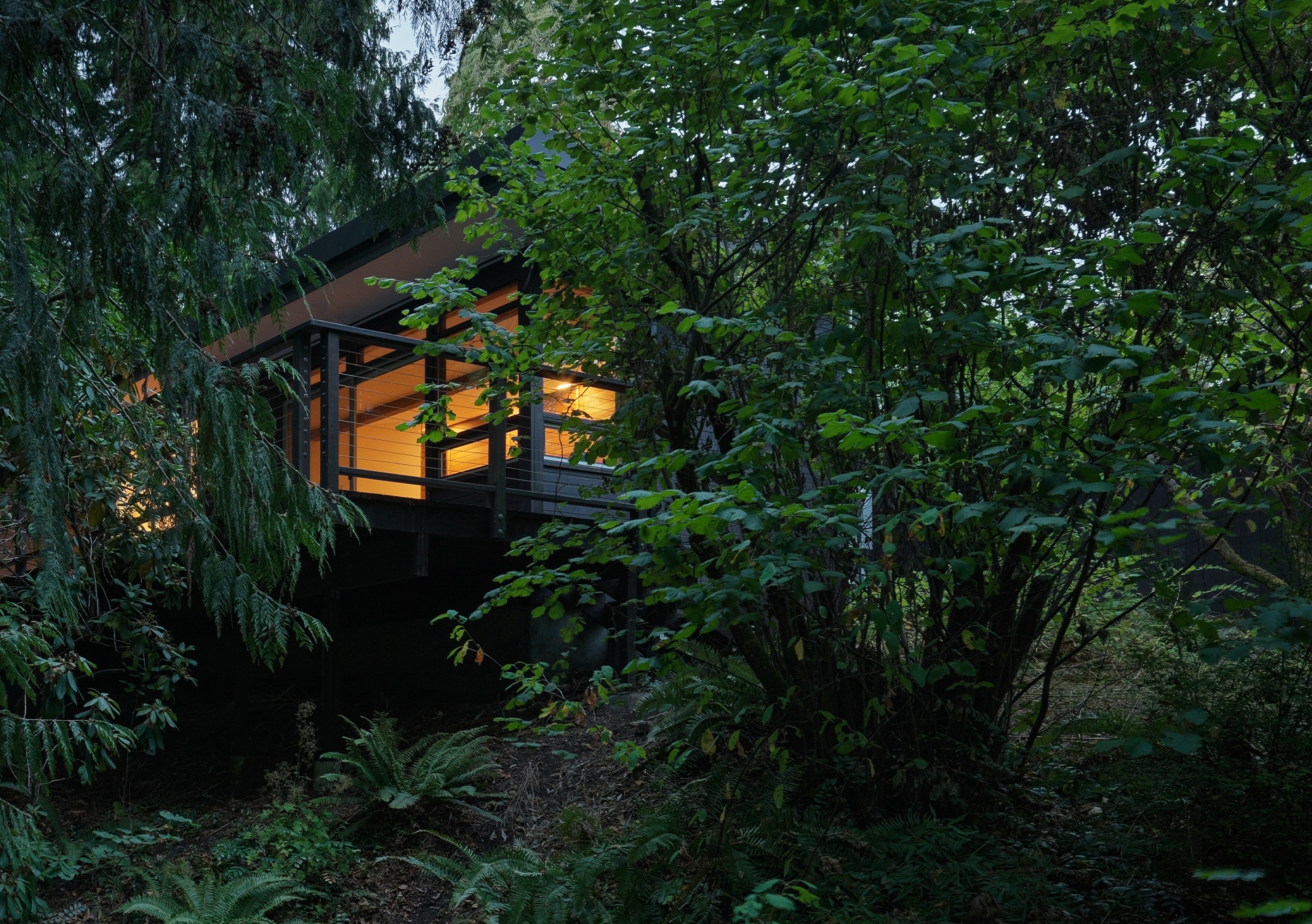 Alden Mason House,一座诞生于1958年的建筑佳作,由建筑师Charles A. Marsh Jr.与建造者Tom Paulsen共同为西雅图艺术家Alden Mason精心打造。它不仅是典型的西北地区中世纪现代风格典范,更是一座隐于都市边缘、栖于溪流与林木之间的静谧“树屋”。毗邻华盛顿湖的这片葱茏之地,将城市喧嚣温柔隔离,唯留自然私语环绕。房屋本身即是艺术家热爱自然的宣言,其灵魂与周遭的宁静永续共生。步入其中,阳光经枝叶滤成光斑,溪声低吟,风动叶响,天窗下光影翩跹——每一刻都沉浸于与自然无界的安宁体验。