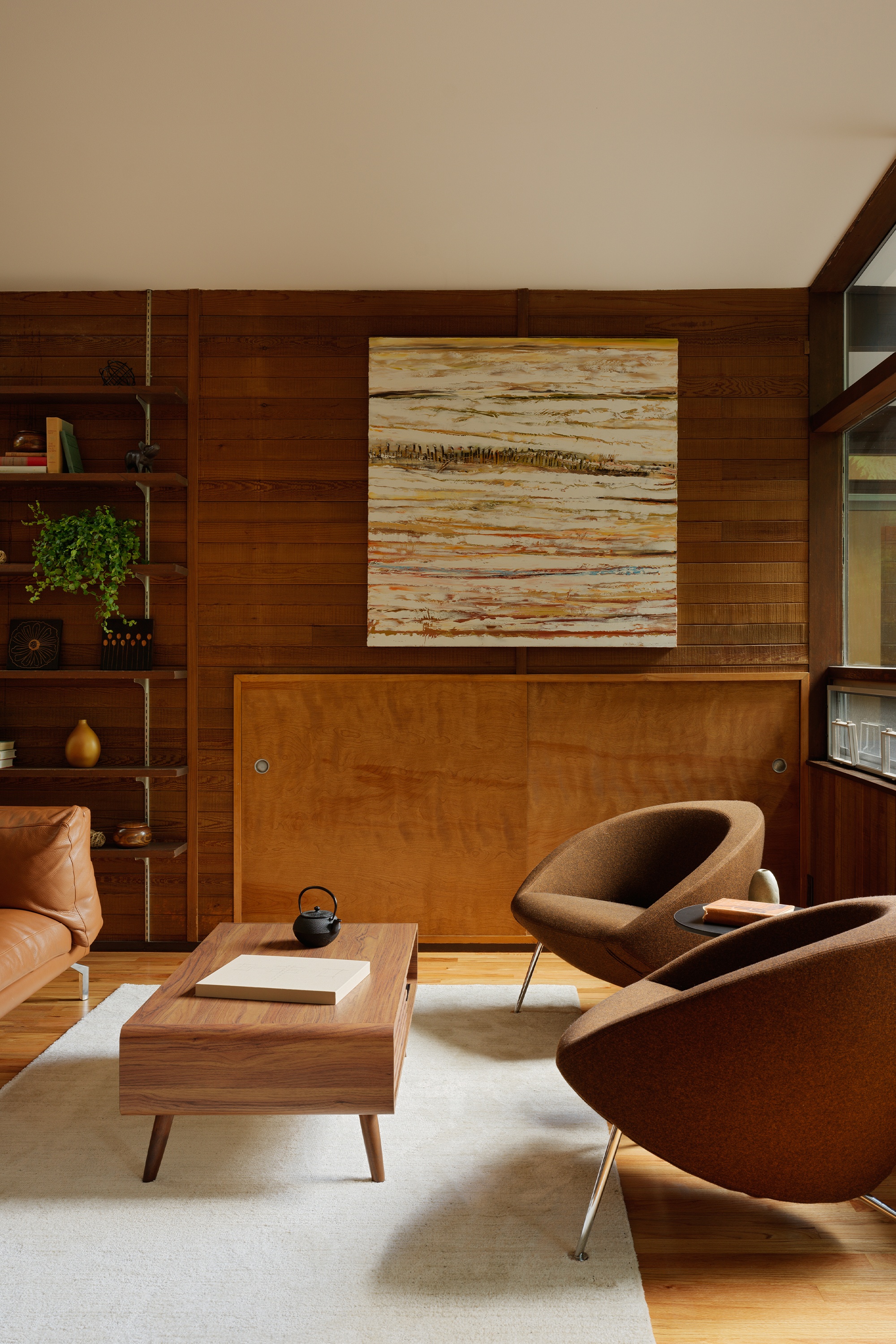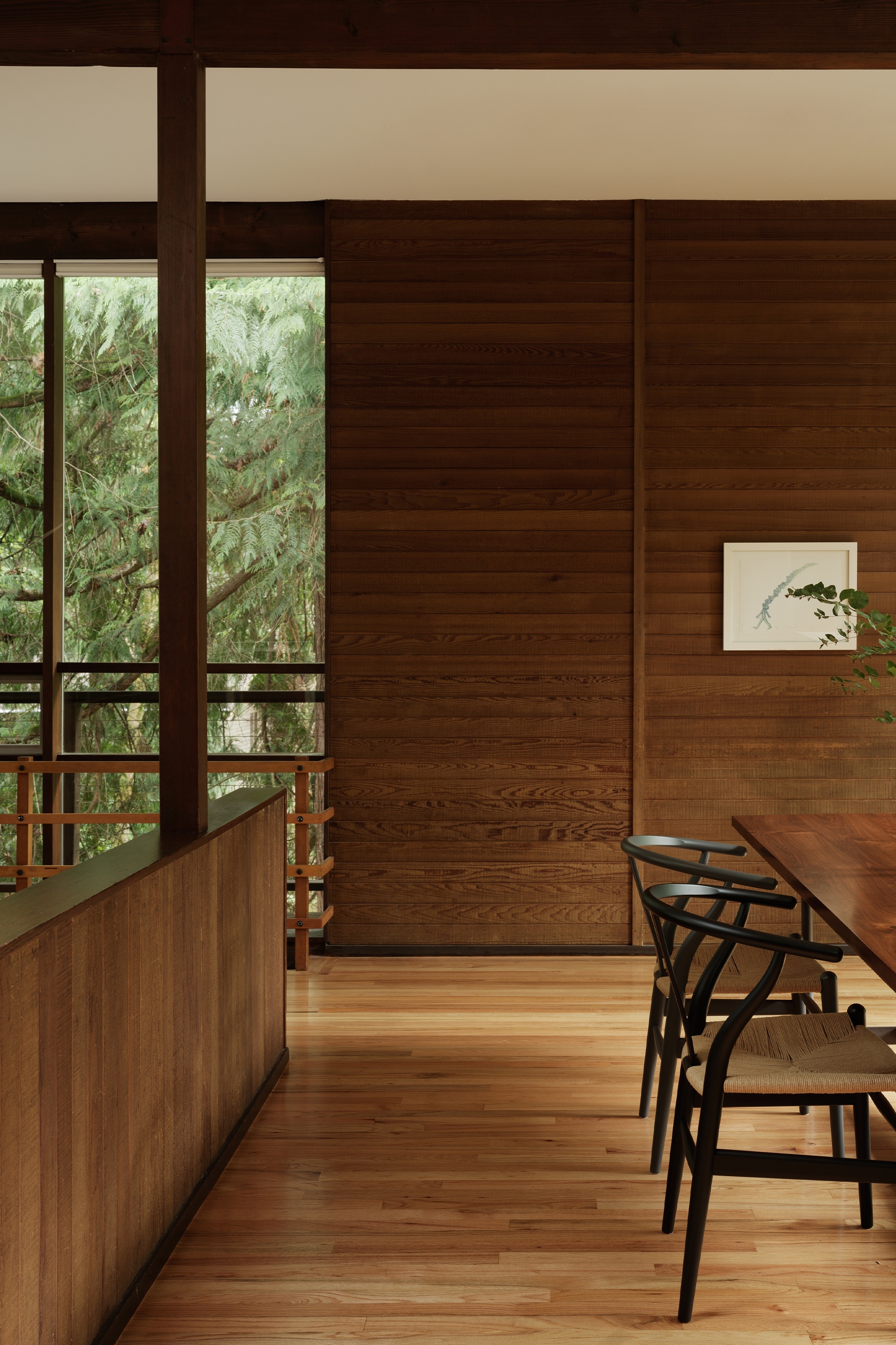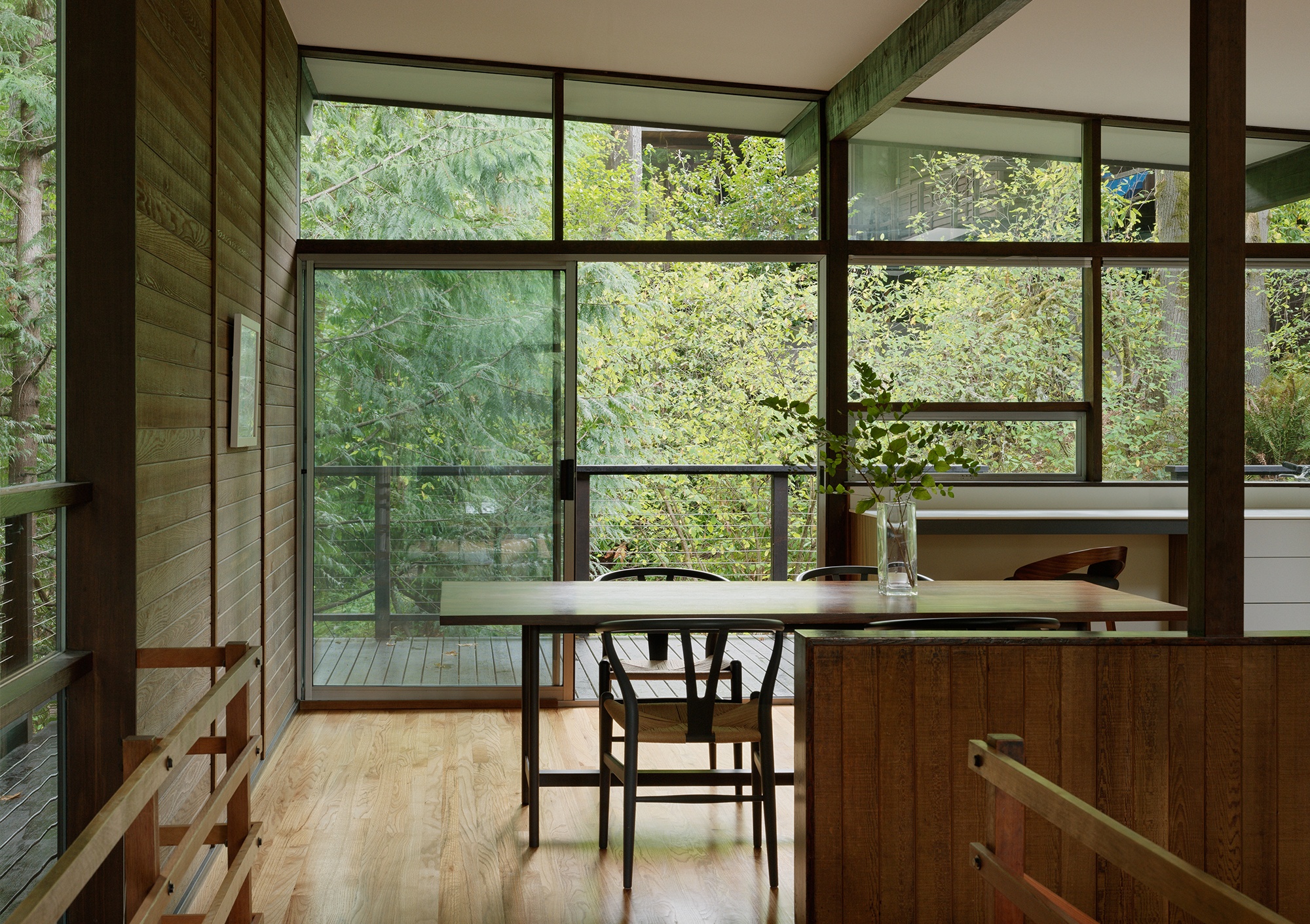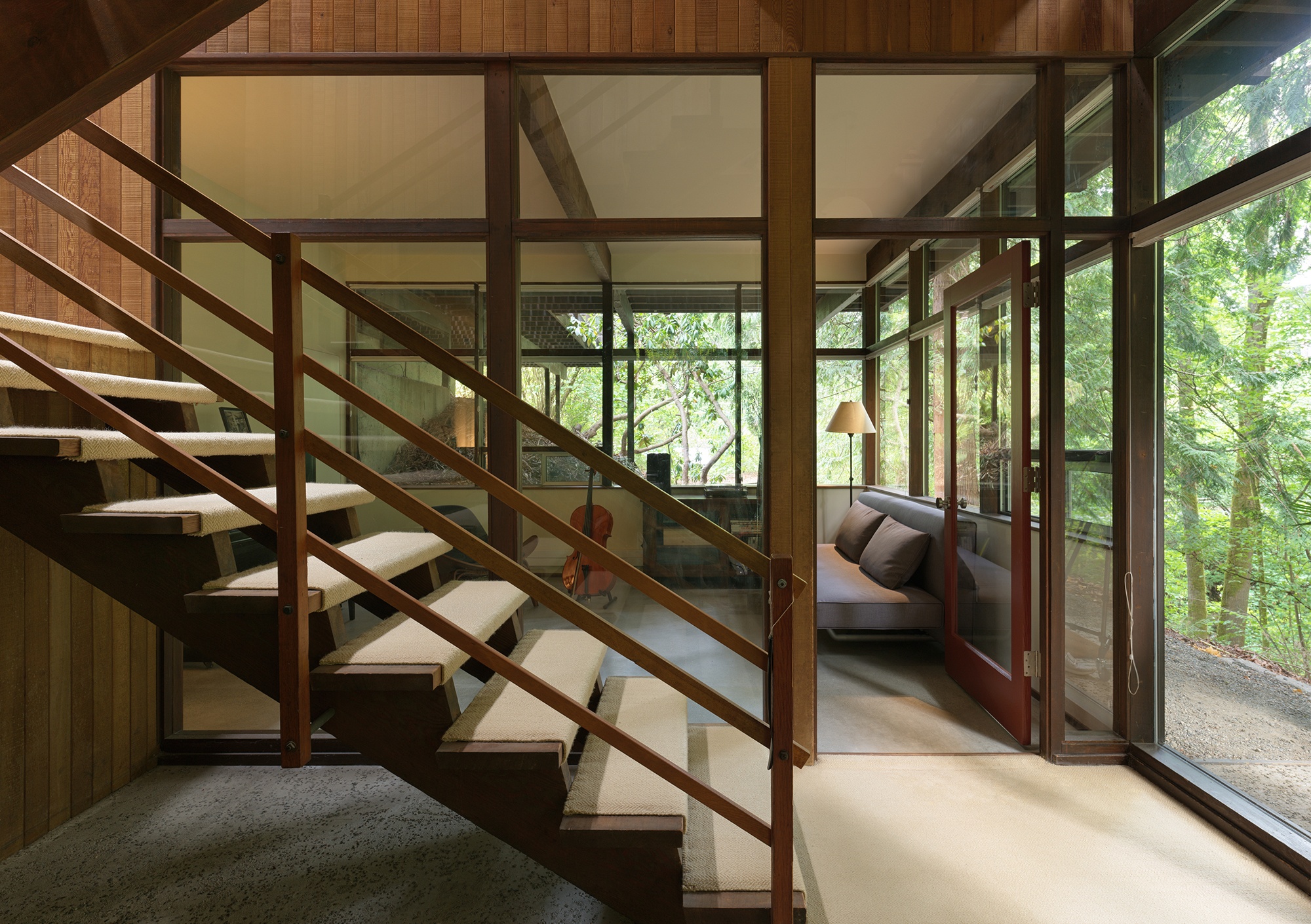 Alden Mason House,一座诞生于1958年的建筑佳作,由建筑师Charles A. Marsh Jr.与建造者Tom Paulsen共同为西雅图艺术家Alden Mason精心打造。它不仅是典型的西北地区中世纪现代风格典范,更是一座隐于都市边缘、栖于溪流与林木之间的静谧“树屋”。毗邻华盛顿湖的这片葱茏之地,将城市喧嚣温柔隔离,唯留自然私语环绕。房屋本身即是艺术家热爱自然的宣言,其灵魂与周遭的宁静永续共生。步入其中,阳光经枝叶滤成光斑,溪声低吟,风动叶响,天窗下光影翩跹——每一刻都沉浸于与自然无界的安宁体验。