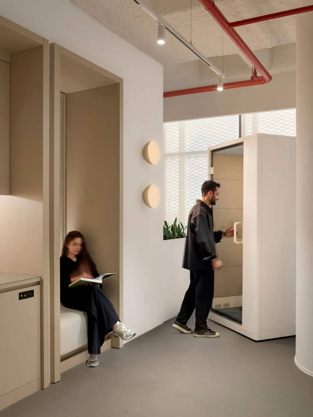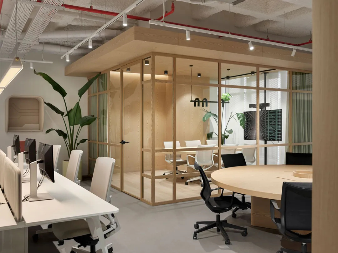 在设计团队看来,真正的可持续办公空间,从来不只是关乎节能降耗的技术考量,更在于构建兼顾多元需求的工作与生活体验,从而唤醒员工活力、提升工作效率。未来办公场域的形态,终将由技术、自然与人本思维共同塑造,而神经多样性理念的融入,正是这份人本关怀的深刻体现。设计认同并尊重人们思考、感知与处理信息的多元性——有人需在绝对安静中沉淀专注,有人则能在动态交流中迸发灵感。基于此,空间量身定制了丰富多样的场景:全封闭静音舱隔绝外界纷扰,适配深度专注需求;半开放协作区配备可移动白板与灵活家具,方便团队头脑风暴;休闲社交区则以柔软织物、温馨灯光与趣味装饰,为员工提供放松休憩的角落。不同区域搭配差异化的照明强度与声学环境,让每一位员工都能找到契合自身的工作节奏,实现个体价值的最大化释放。
