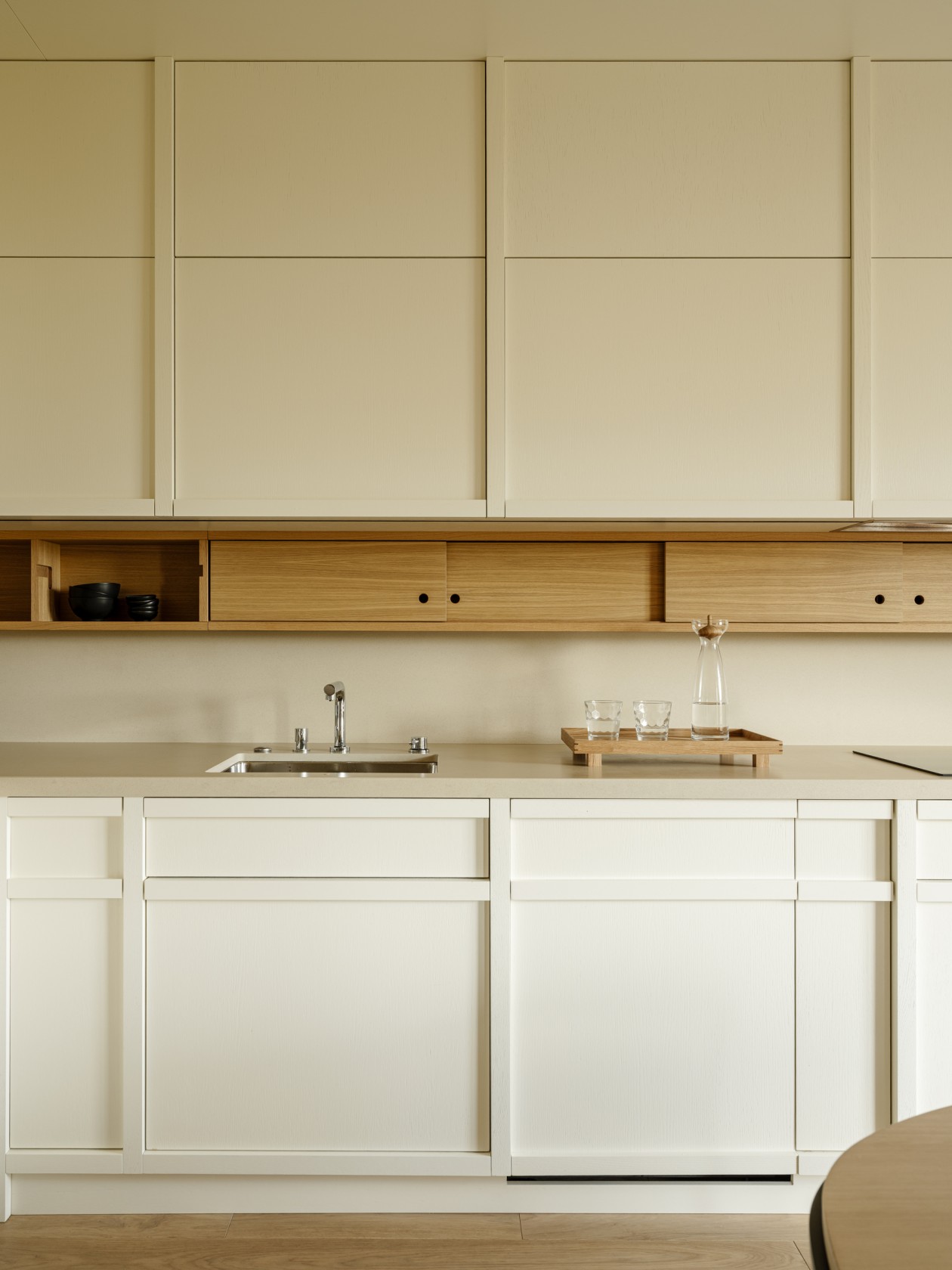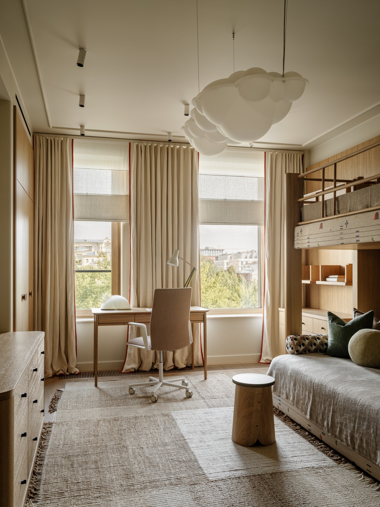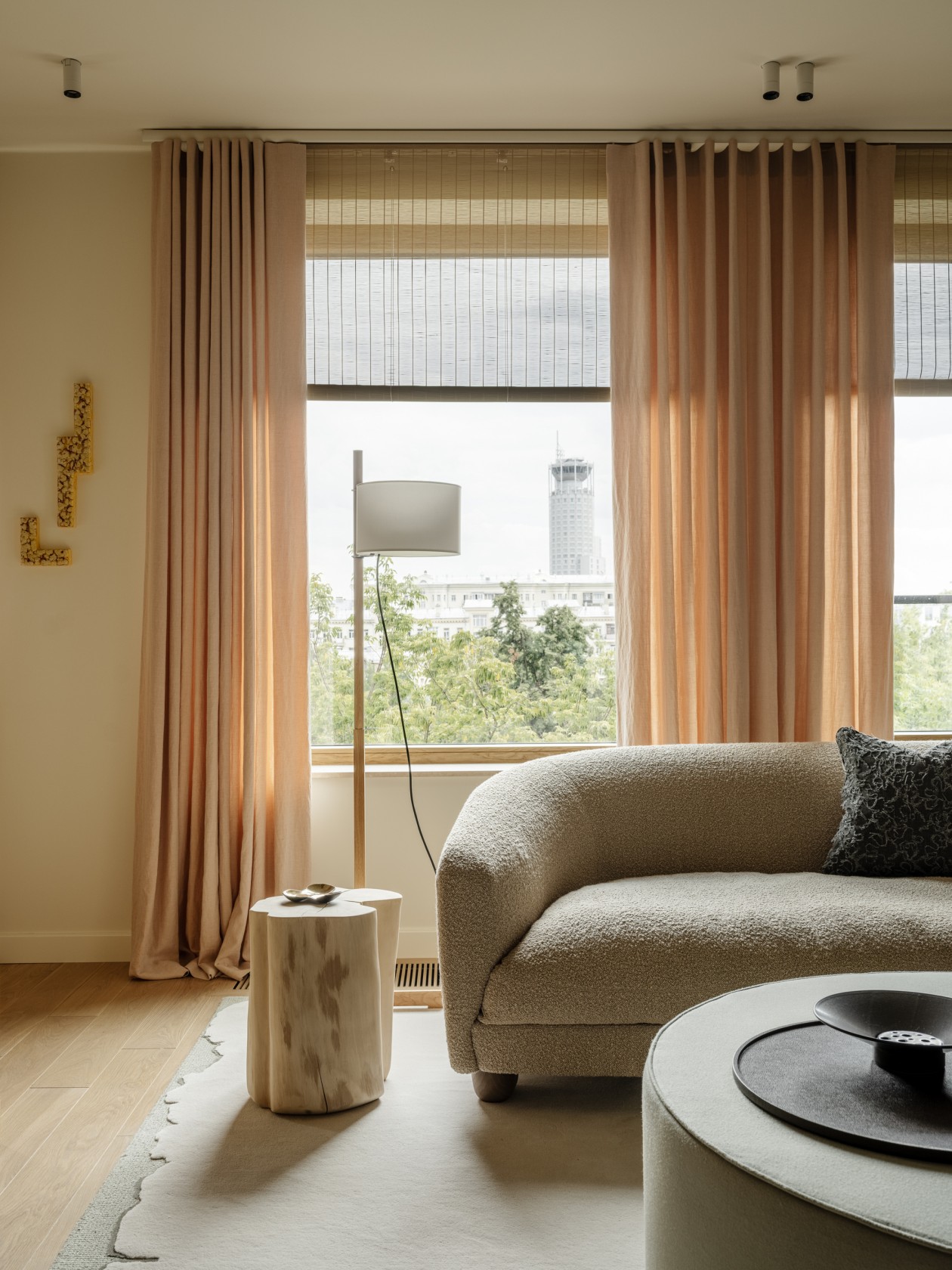 公寓位于三层,窗外树影成为天然风景。初次踏勘时,毛坯空间中清澈柔和的光线,奠定了设计的基调——如同置身林间,宁静而开放。