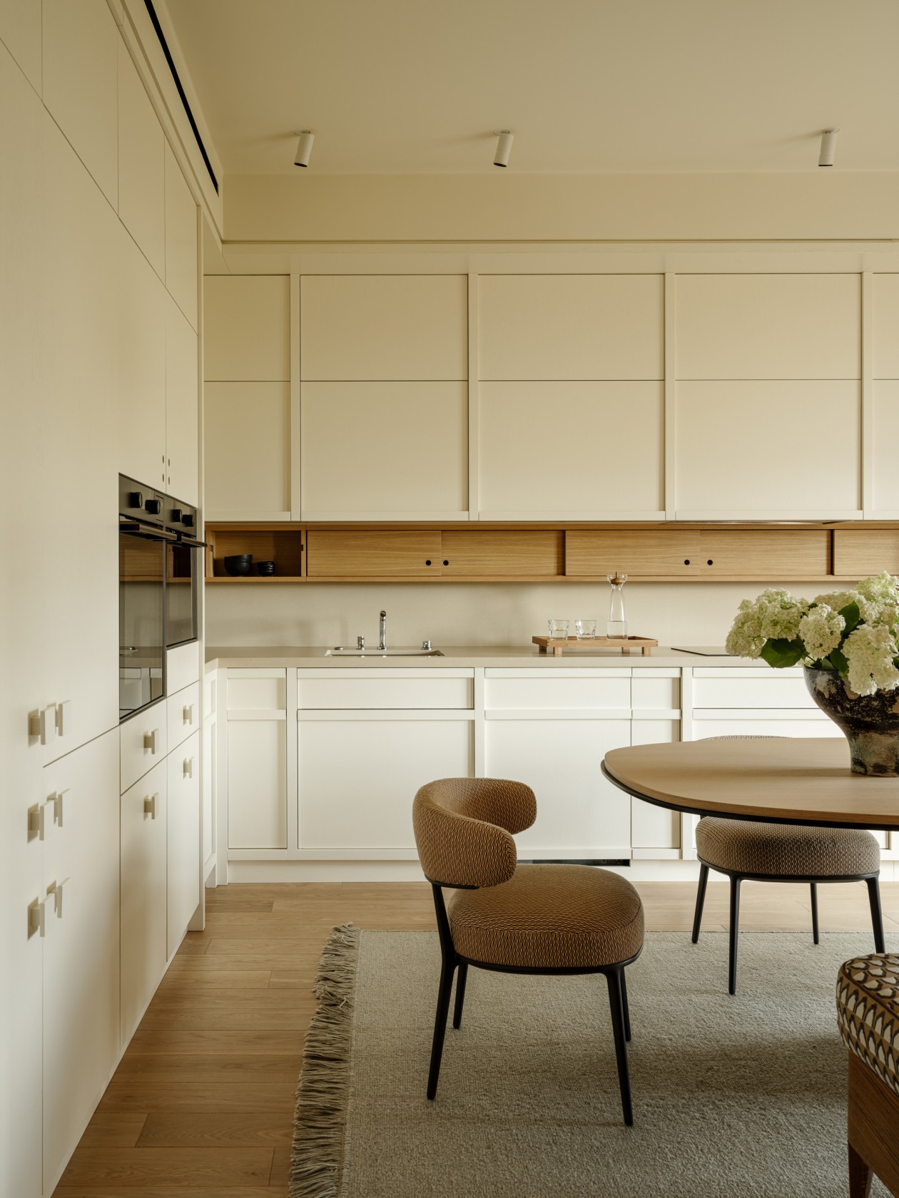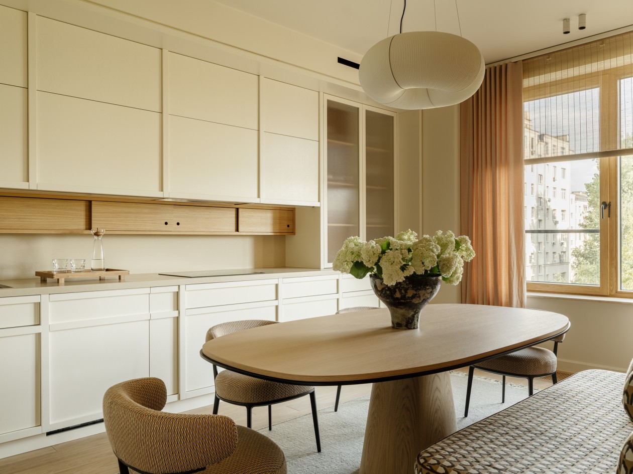 这间170㎡的公寓位于莫斯科巴尔丘格岛Wine House历史住宅区内,业主为视觉舒适画廊(Visual Comfort Gallery)创始人尤利娅·奥克塔布罗娃。设计师安娜·帕夫洛夫斯卡娅接手项目后,并未将其视为简单的委托,而是一场共同创造。关键在于穿透客户的专业身份,洞察其内在需求,让空间成为居住者个性的真实延伸。