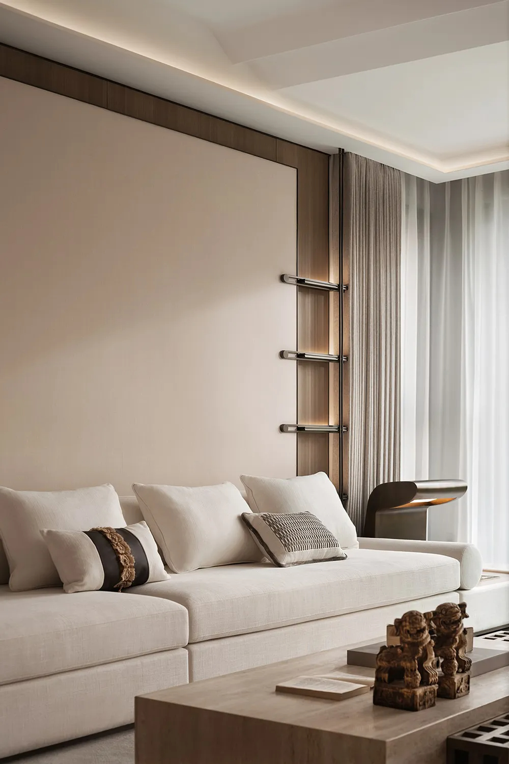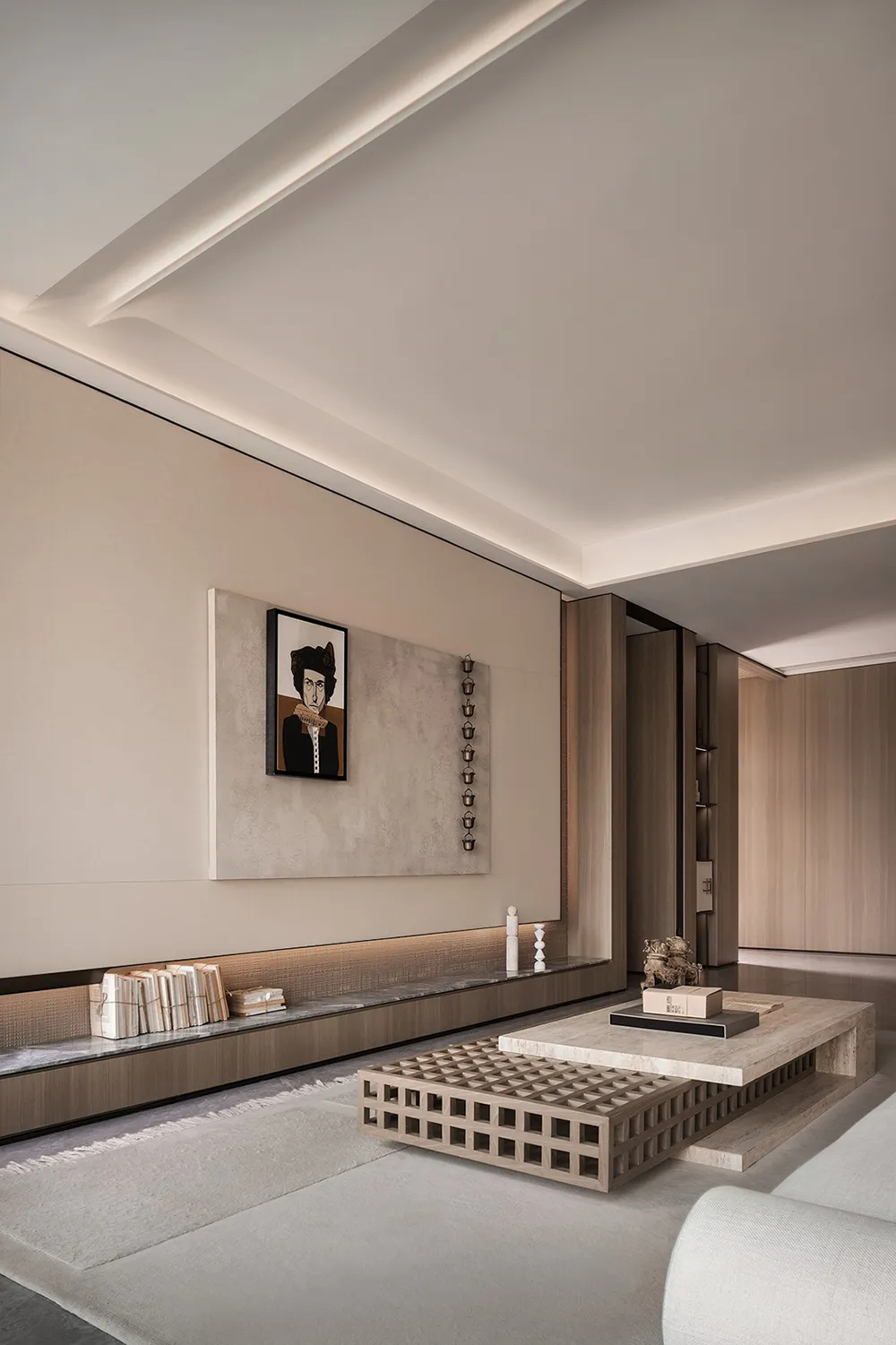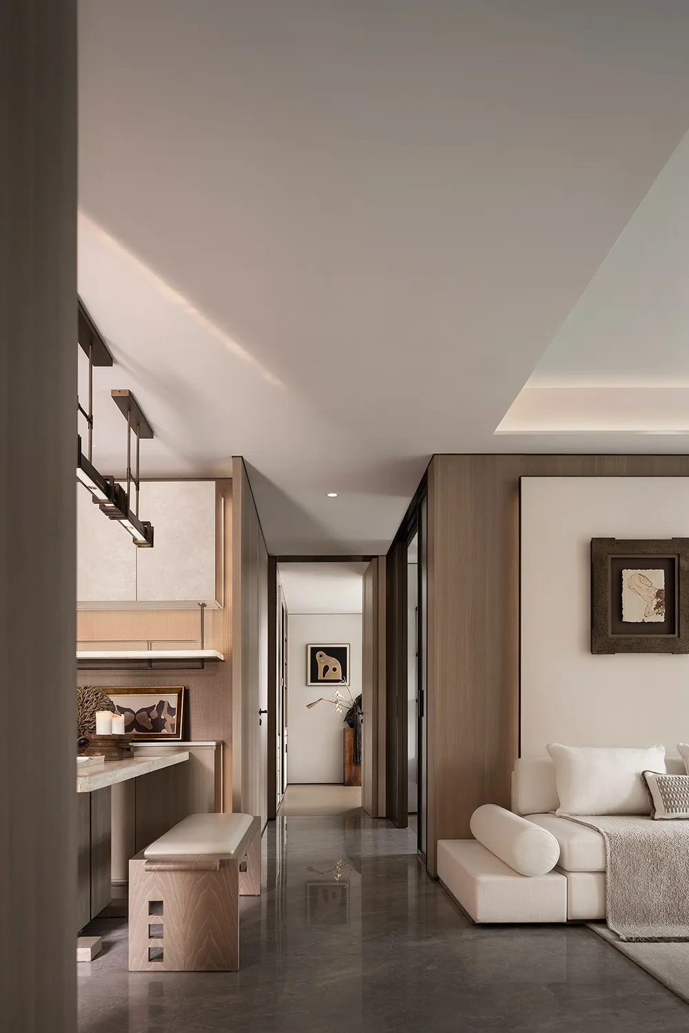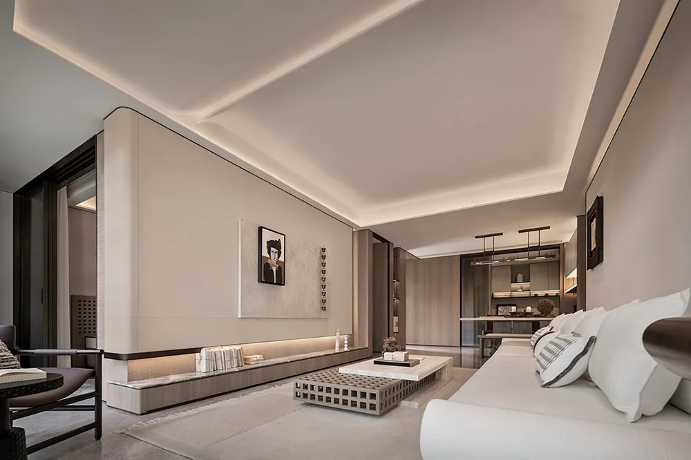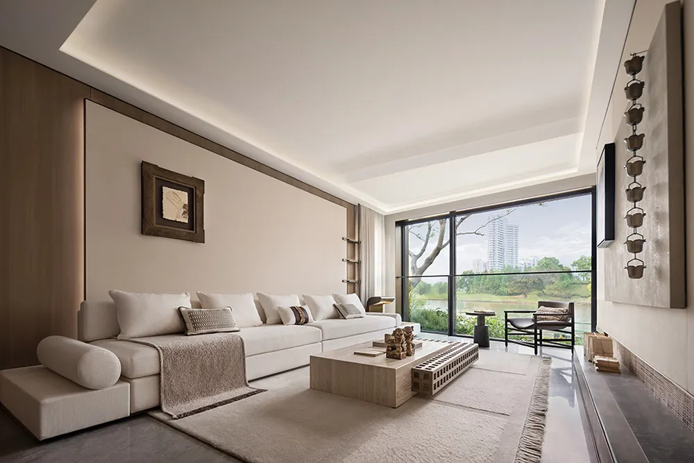 吴文粒团队在成都麓湖核心区打造了一套120㎡的简约风格样板间,通过巧妙设计呈现出大平层的开阔感。项目坐拥优越自然环境,设计以自然元素为灵感,将理想生活场景具象化,塑造出处处动人、充满故事感的居住空间。