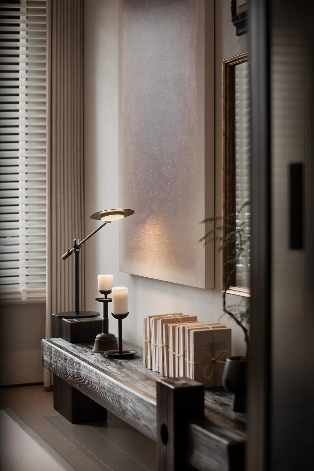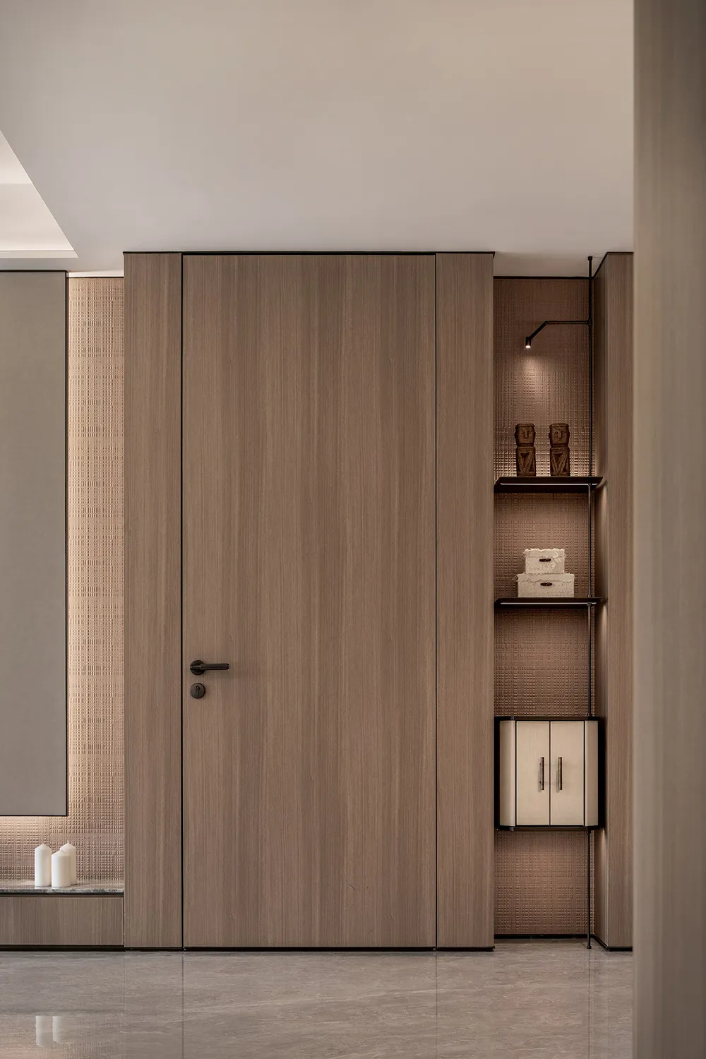 整体设计注重材质与哲学的融合。木质与金属的碰撞,构成冷暖交织的视觉表达;布艺的柔软中和了硬朗的棱角,在刚柔并济中展现细节艺术,达成空间平衡。场景如诗如画,蕴含生活与自然的双重哲学。