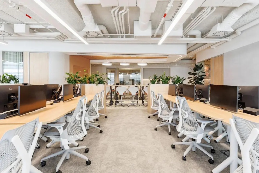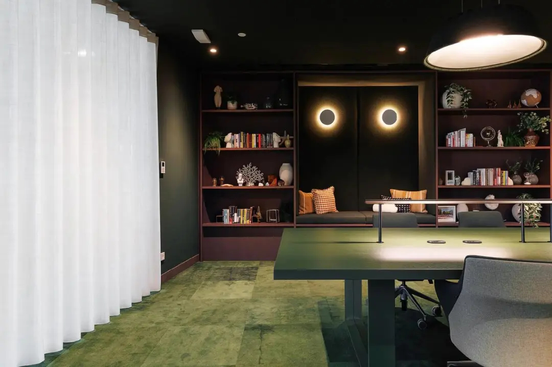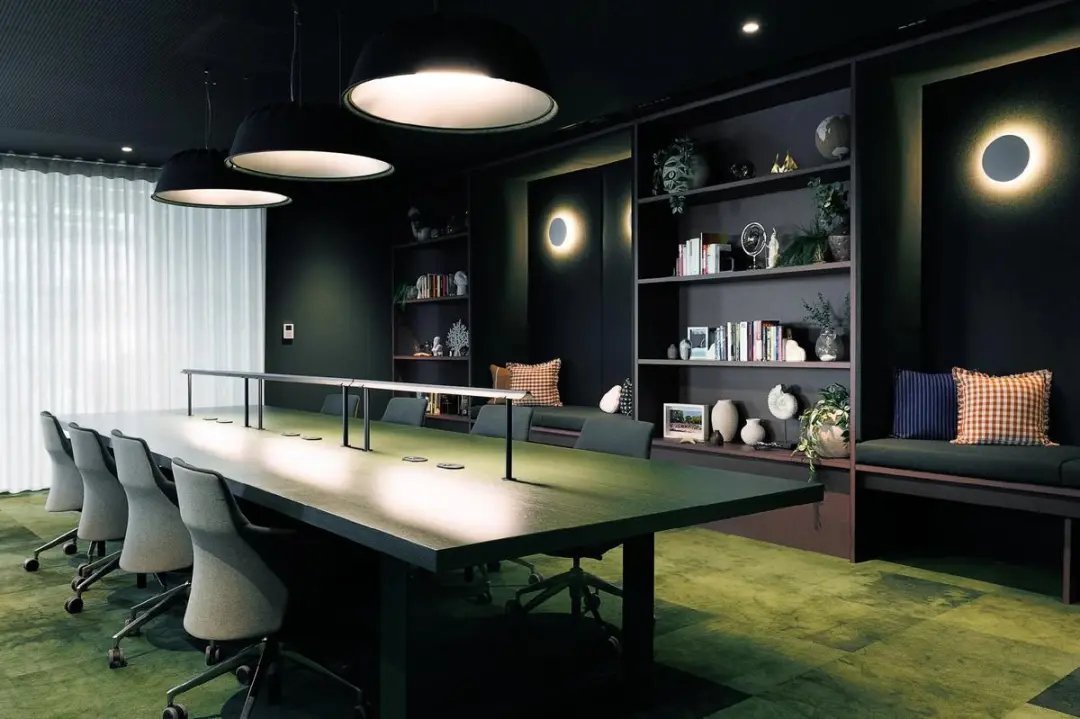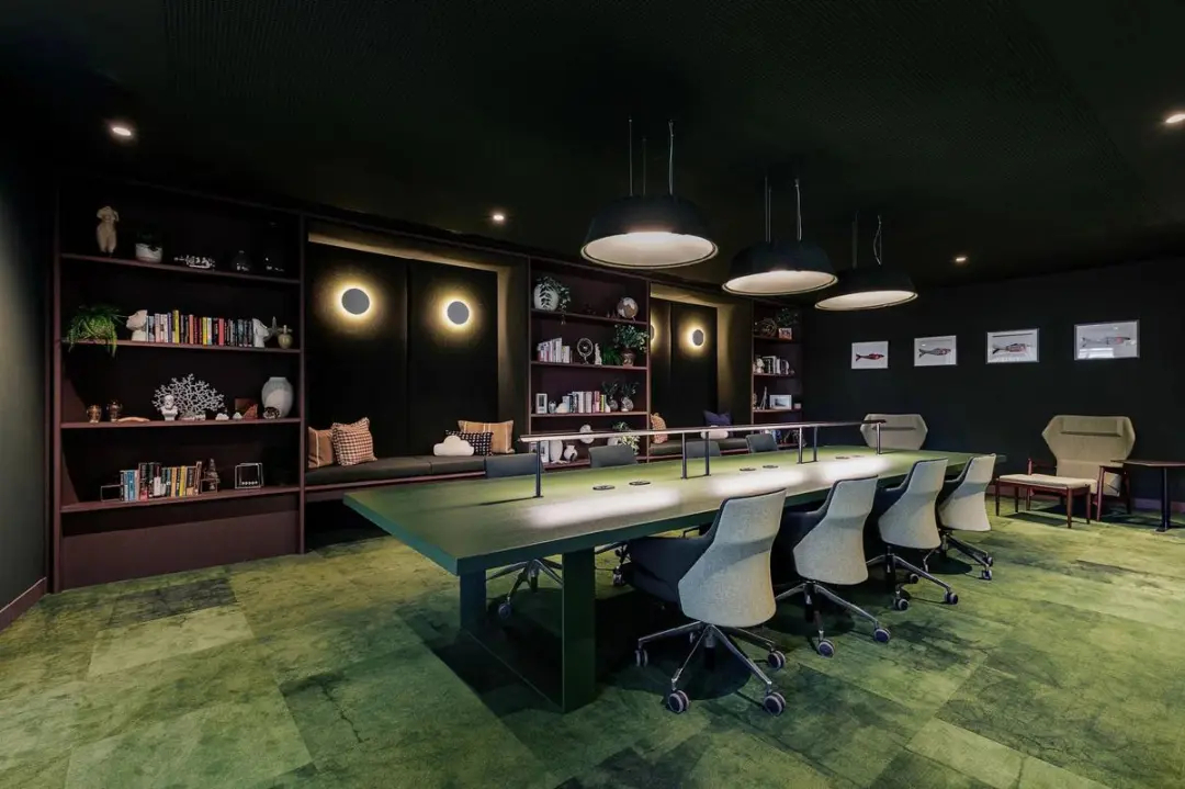 冰冷数据与温暖匠艺共生,严谨代码与流动曲线相融,这里打破了传统办公室的刻板框架,形成数据光影交织、算法人文兼具的空间氛围。