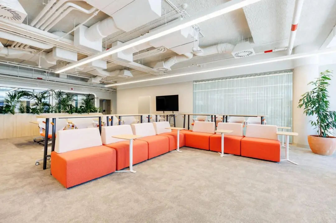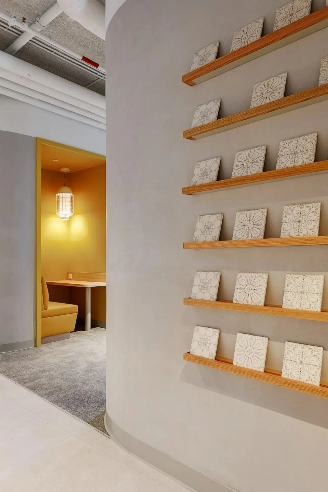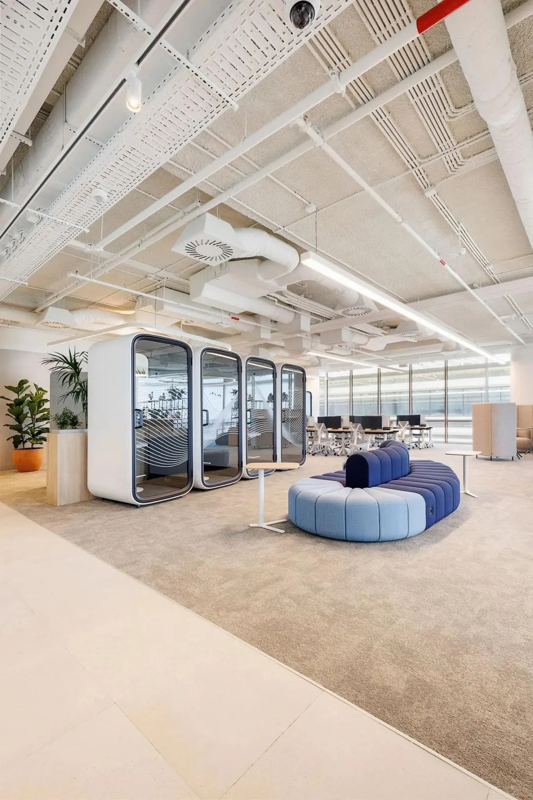 设计以“活力熵增”为核心理念,塑造波浪状流动空间,促进人员交汇与协同创新。各区域采用灵活可变的模块化设计,瓷砖、饰面等材料均源自葡萄牙本土匠人手工制作,承载地域特色。