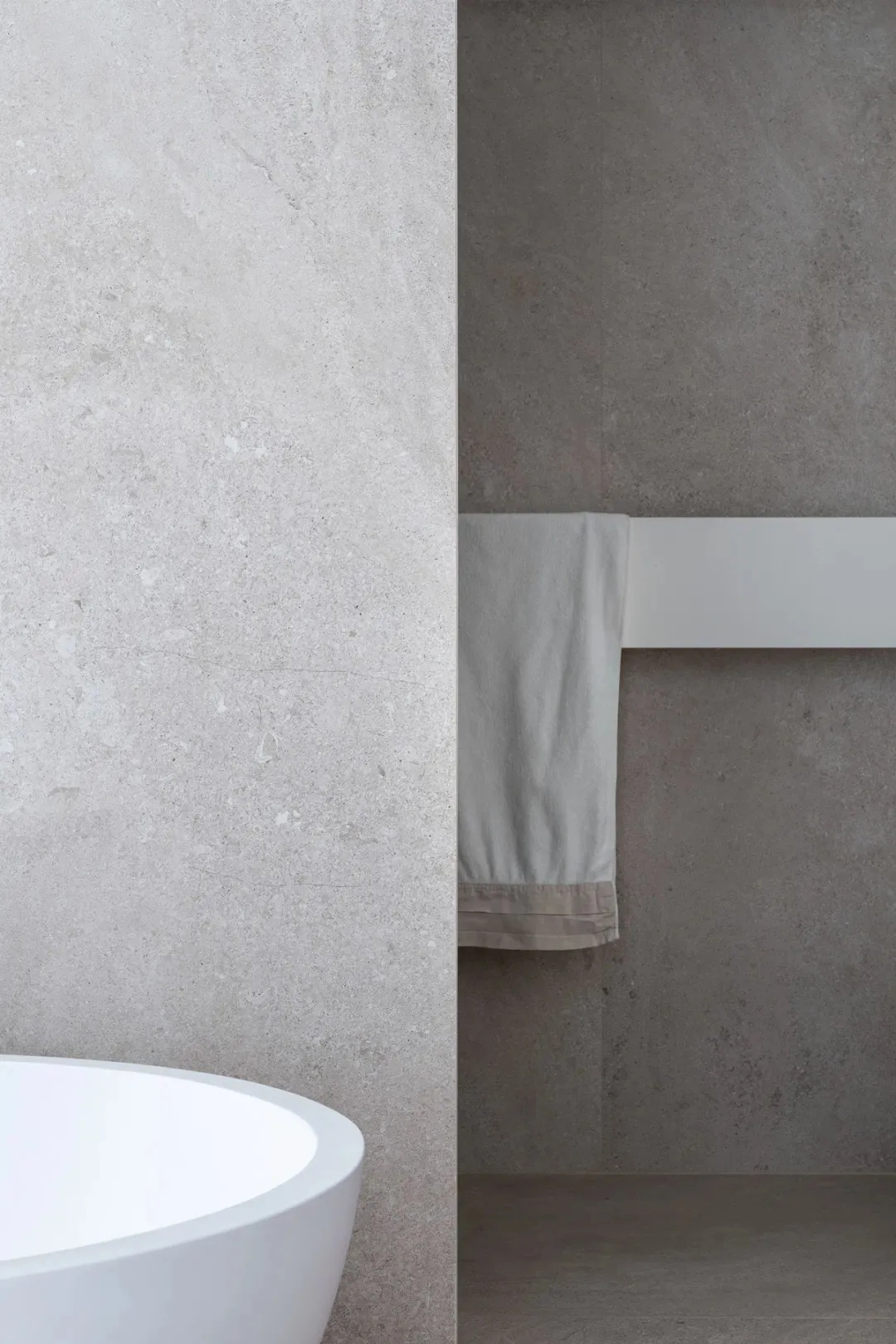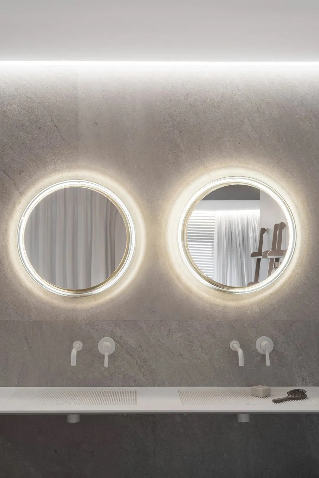 卫生间延续整体简约调性,圆形镜面赋予空间细腻的几何美感。浴缸临窗设置,在满足使用功能的同时,可充分享受室外景致。空间以白色为主,无繁杂色彩与装饰,呈现简洁高级的视觉效果。