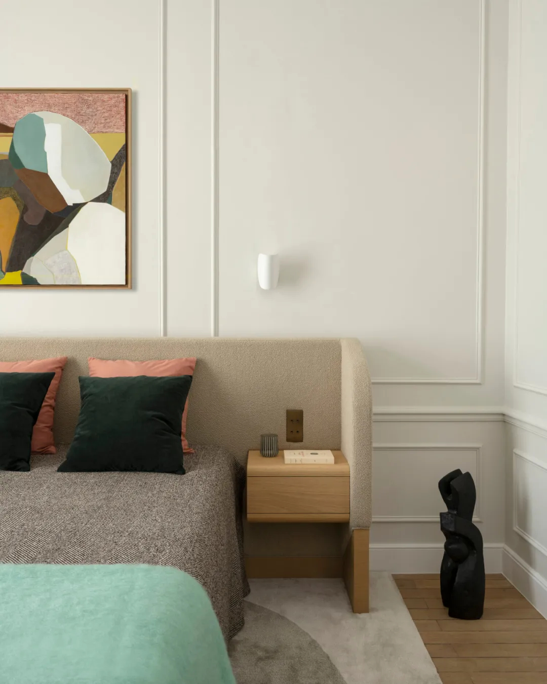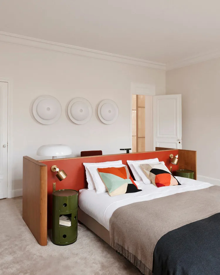 卧室空间在软装的精妙映衬下,延续了色彩斑斓的基调,却又精准把控尺度,不会过于醒目张扬,反而恰到好处地传递出满满的活力,营造出既温馨又灵动的休憩氛围。