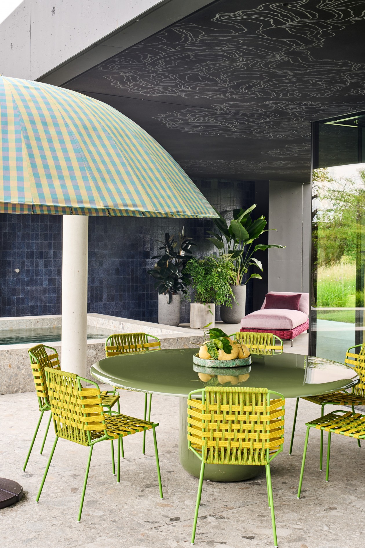建筑设计由Thomas Fabrinsky Architekten负责,整体定位为现代平房,配套设施完善,包含车库(含4个客户汽车存放位)、小型游泳池,环绕绿化的宽大玻璃窗,以及保障未来舒适体验的无障碍通道。室内设计阶段,客户投入大量时间,通过与设计团队材料实验室的合作,逐渐喜爱上大胆色彩、优质材料与精致工艺,深度参与并享受设计过程。