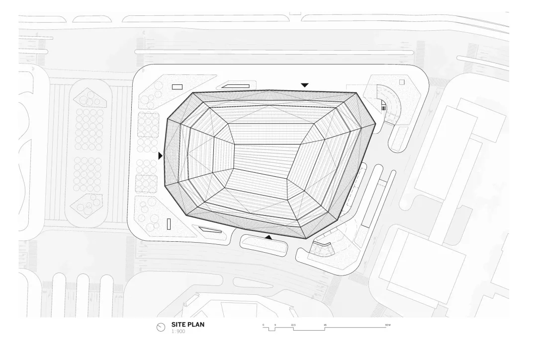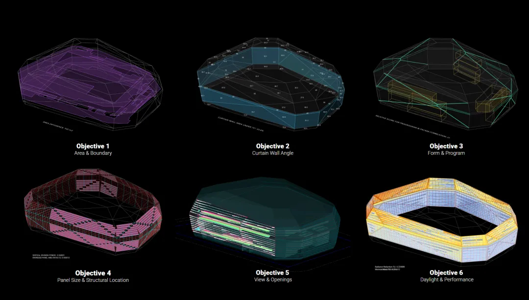 设计阶段,SOM 突破传统工作模式,引入 AI 算法辅助流程:团队输入空间需求、性能目标等基础条件,由系统自动生成数百种几何模型,再结合专业判断筛选优化。这一方式大幅压缩前期方案探索周期,更在结构效率、能耗控制与形态实现间找到精准平衡,让复杂的钻石造型兼具美学与实用性。