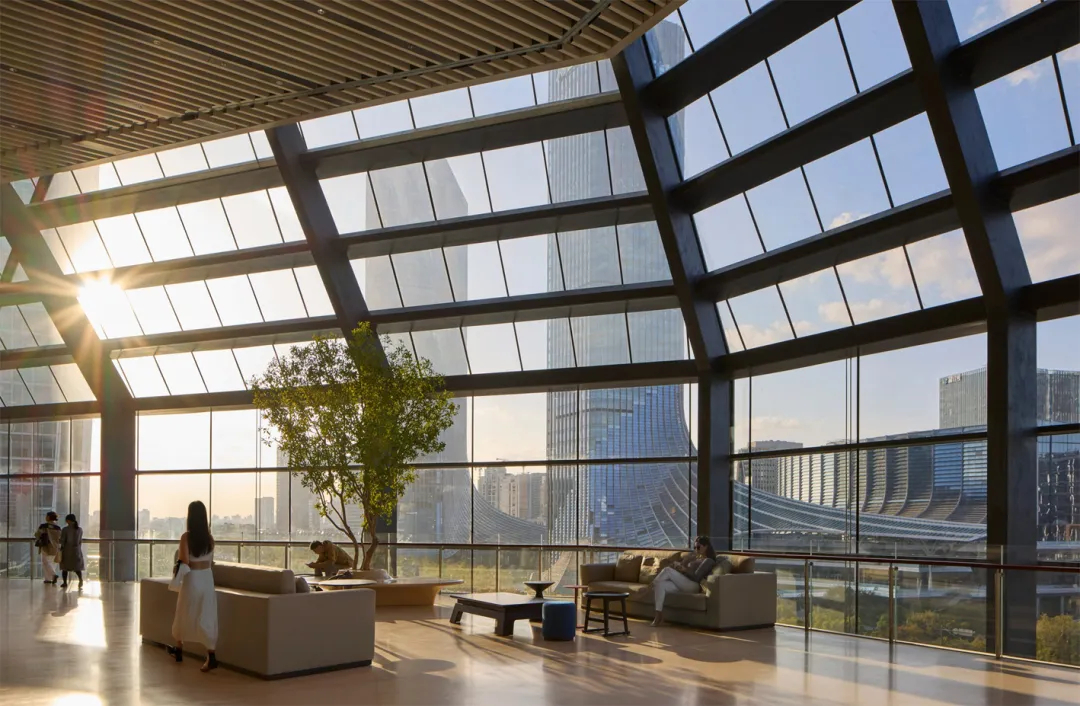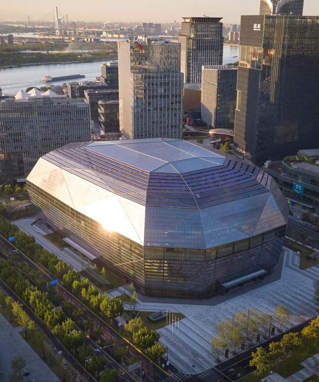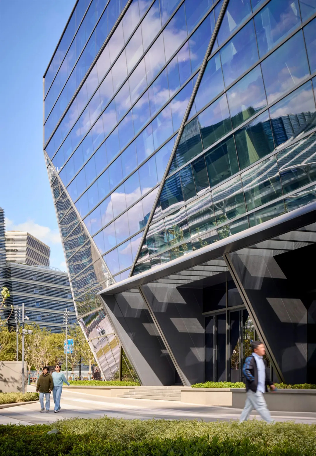 项目由 SOM 建筑事务所主导设计,以 “纯净、优雅、闪耀、无瑕、永恒” 为核心理念,从钻石切割形态中汲取灵感,通过多面玻璃幕墙的光影折射,呈现出理性又晶莹的视觉特质,既呼应西岸科创基因,也为滨江天际线注入精致质感。