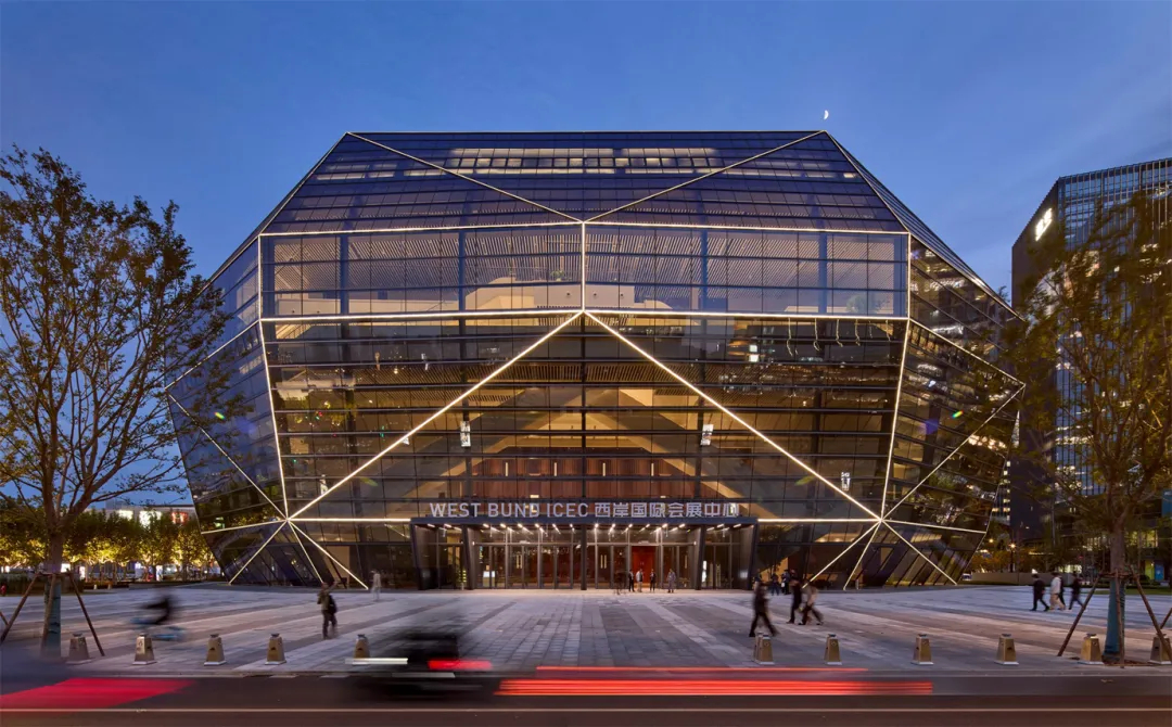 上海黄浦江畔的西岸国际会展中心,以 135 个切面构成的 “钻石” 形态,成为徐汇西岸核心区的全新地标。这座总建筑面积 77350 平方米的建筑,地下 2 层、地上 7 层,采用钢结构大跨度设计,紧邻西岸穹顶艺术中心、传媒港等文化地标,与周边业态共同构筑起滨江文化活力带。