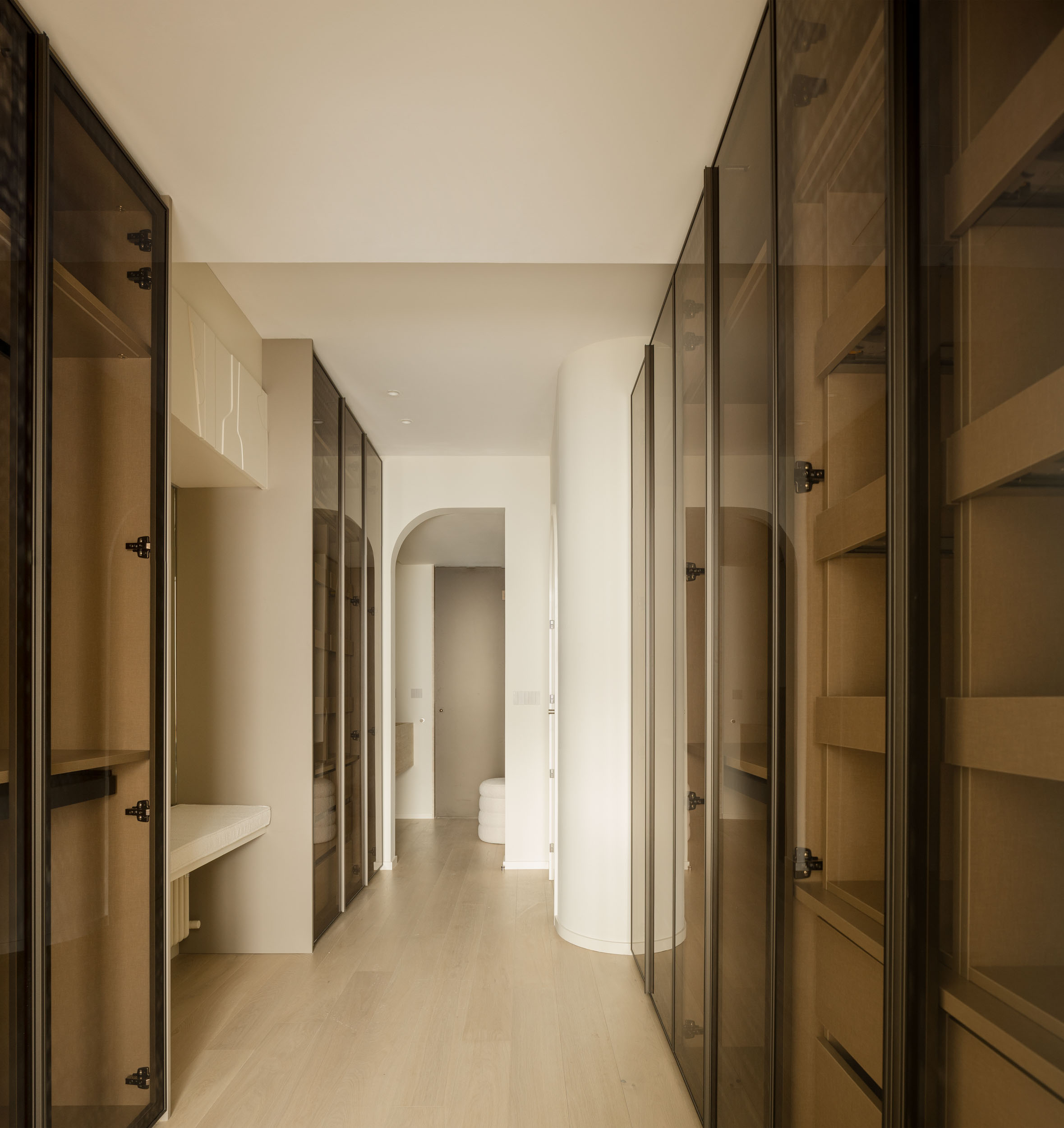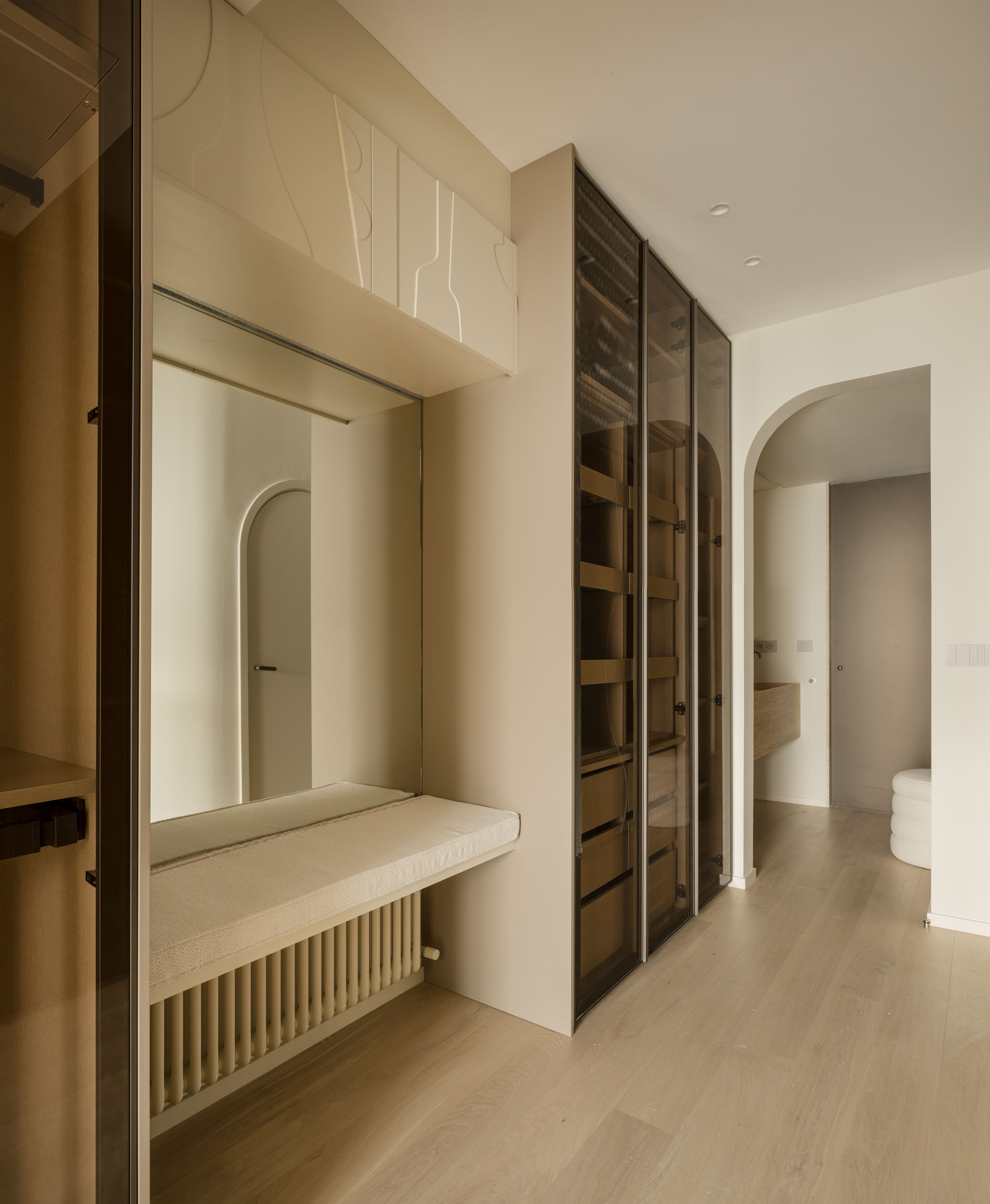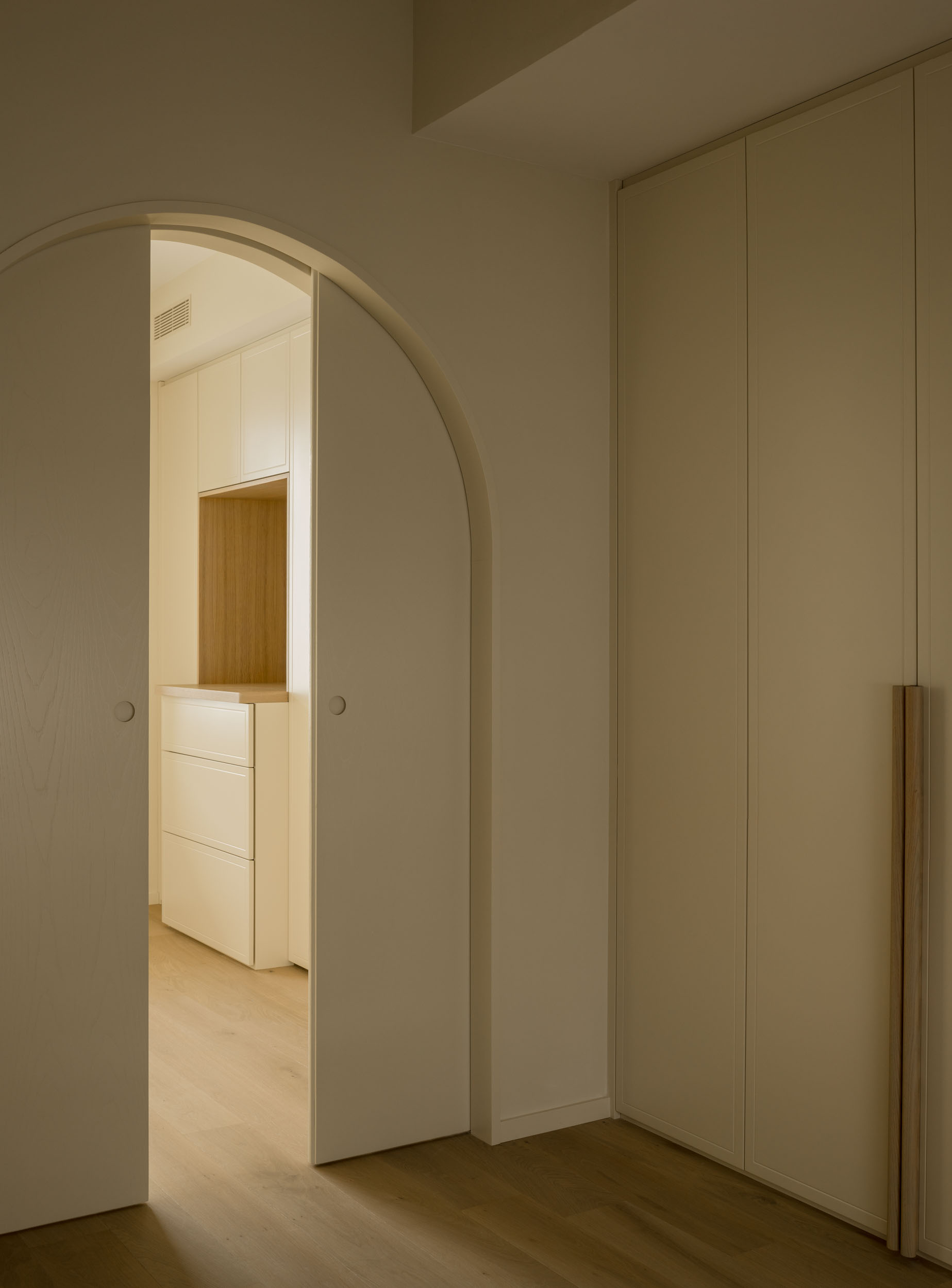 空间以流畅动线为核心,大量运用弧形门框与圆角设计,弱化边界感,引导自然舒适的移动节奏,让家在秩序中拥有柔和与宁静。