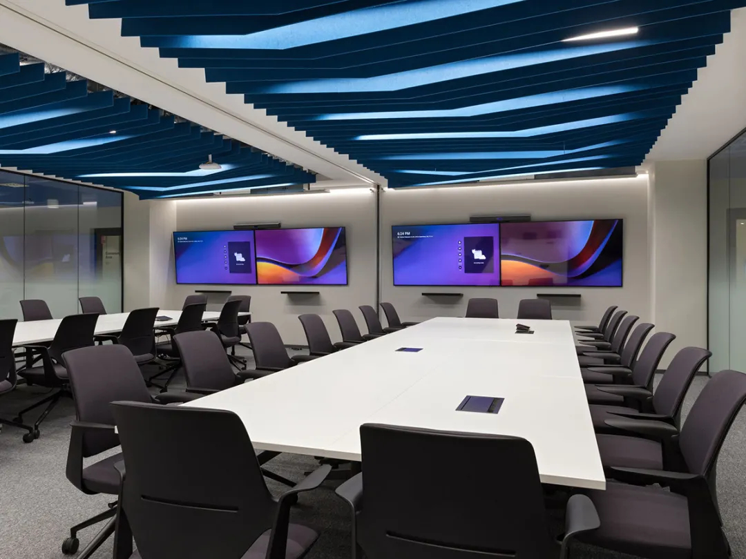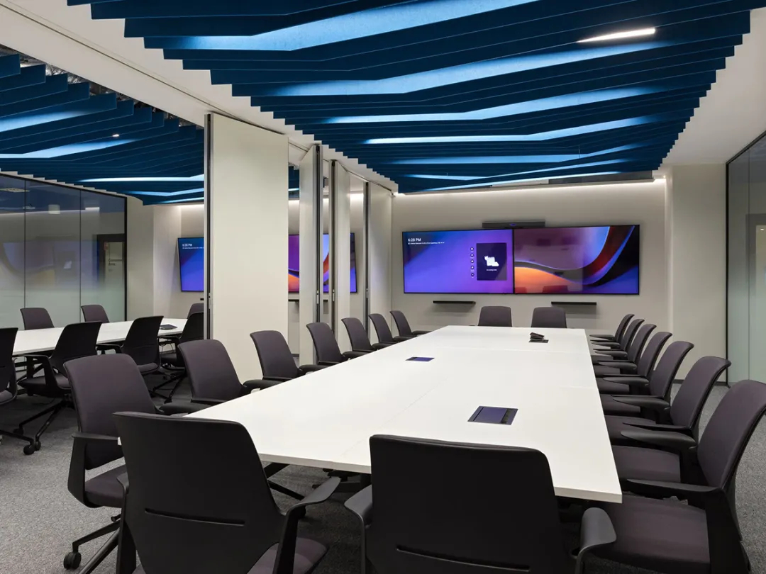 空间细节的打磨彰显专业与用心,高端设备与精湛工艺贯穿全场:灵活工位适配不同办公模式,带锁储物柜、更衣室满足员工日常需求,多功能会议室可通过隔断灵活切换形态,既能容纳数十人开展大型会议,也可拆分為两个小型会议室,搭配舒适座椅、大型会议桌与多媒体屏幕,兼顾实用性与体验感。