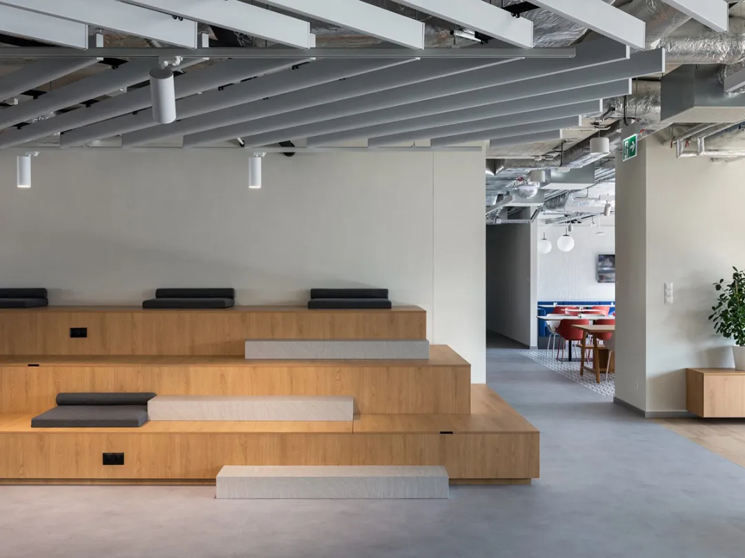 办公空间的设计核心的是平衡多样化需求——既要满足EPAM不同团队、不同员工的日常办公诉求,也要适配客户对接、合作伙伴联动的多元场景,更要为联合办公、项目共创提供灵活载体。作为全球数字化转型服务的领先提供商,EPAM将“共享”理念贯穿空间设计,其克拉科夫新总部不仅是员工的工作阵地,更是与客户共享、共创项目的重要平台,实现了商业办公空间的多功能价值最大化。