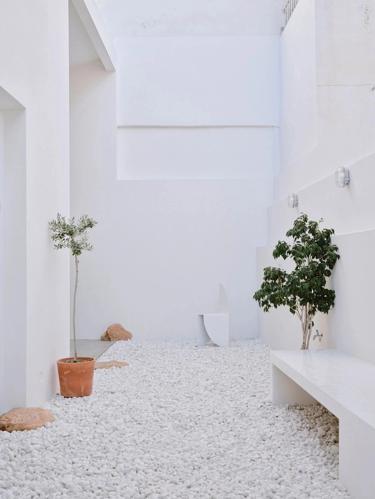 值得一提的是,在施工过程中意外发现的当地原生钙质岩层,被设计师巧妙保留下来,并融入到室内的关键位置,成为空间的一大亮点。阳光透过屋顶的开口,缓缓照射在裸露的岩石表面,随着时间的推移、晨昏的交替,岩石上的光影会不断变化,既让居住者能直观感知到时间的流动,也进一步强化了建筑与场地地质之间的深层联结,让住宅更具地域特色与自然气息。