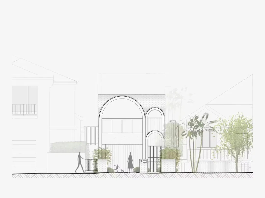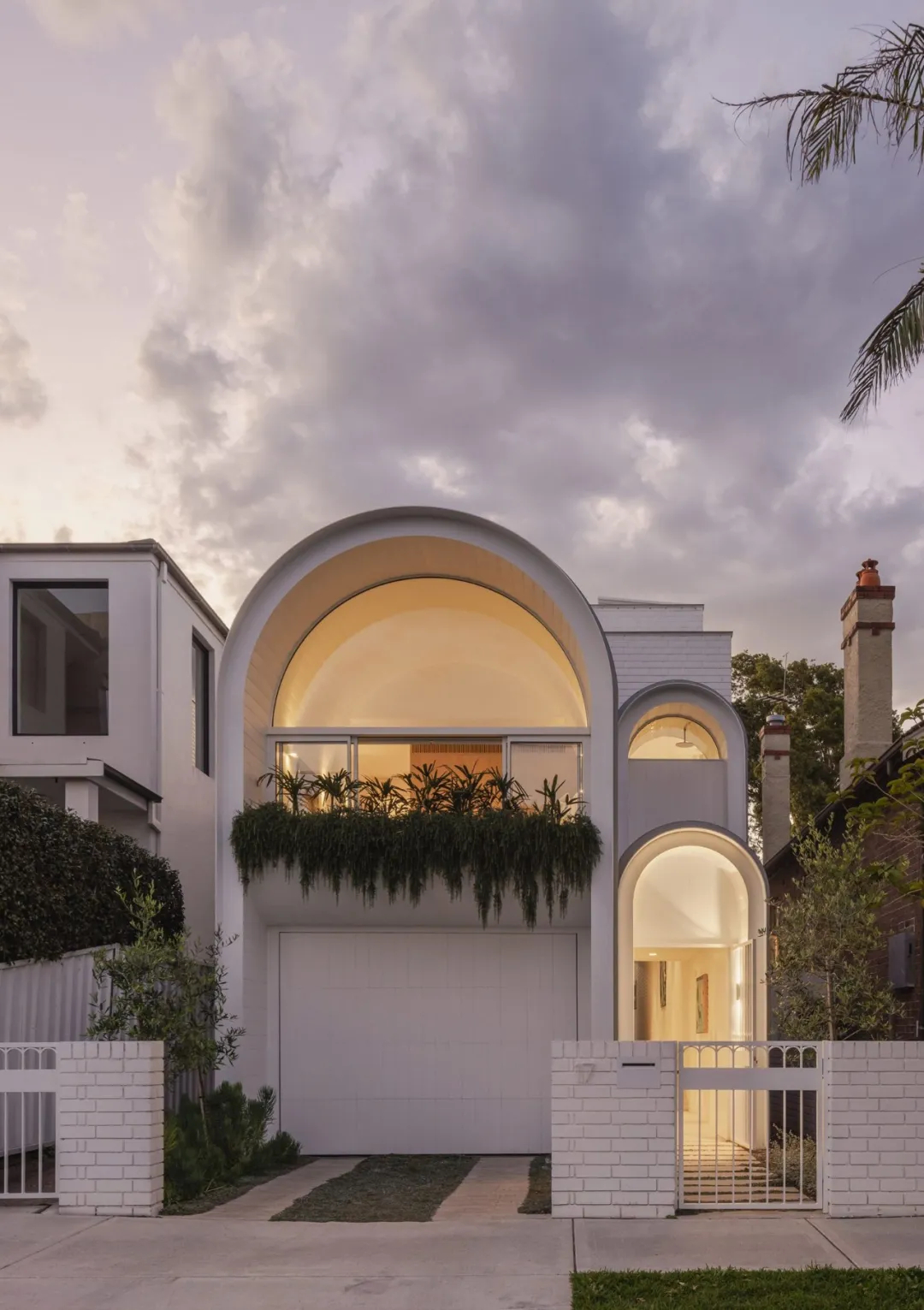 坐落于澳大利亚悉尼 Waverley 区的 Moon House,是 James Garvan Architecture 为年轻家庭打造的当代独立住宅。项目原址为一栋基础严重老化的联邦时期老建筑,设计在尊重街区历史肌理与传统住宅比例秩序的前提下,以纯粹的几何语言与流动曲线,完成了一次对当代居住美学的全新诠释。住宅占地约200平方米,完美嵌入周边兼具新古典与联邦风格的住宅群落中,既不突兀,又极具辨识度。