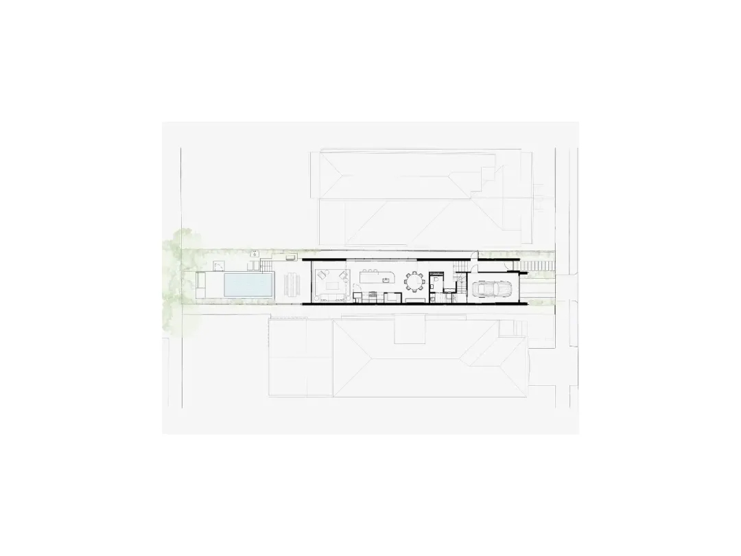 屋顶与整体体量延续了街区常见的轮廓比例,前庭的尺度与围栏细节,都经过反复推敲以适配街道界面。从入口到泳池的地面材质无缝衔接,模糊了室内外边界;庭院的热带植物与浅池,为家人提供了兼具休闲与社交功能的户外空间。设计不仅关注形式美学,更通过对风、光的精细化控制,让建筑在满足台风与地震区结构安全的同时,实现了舒适的被动式节能体验。