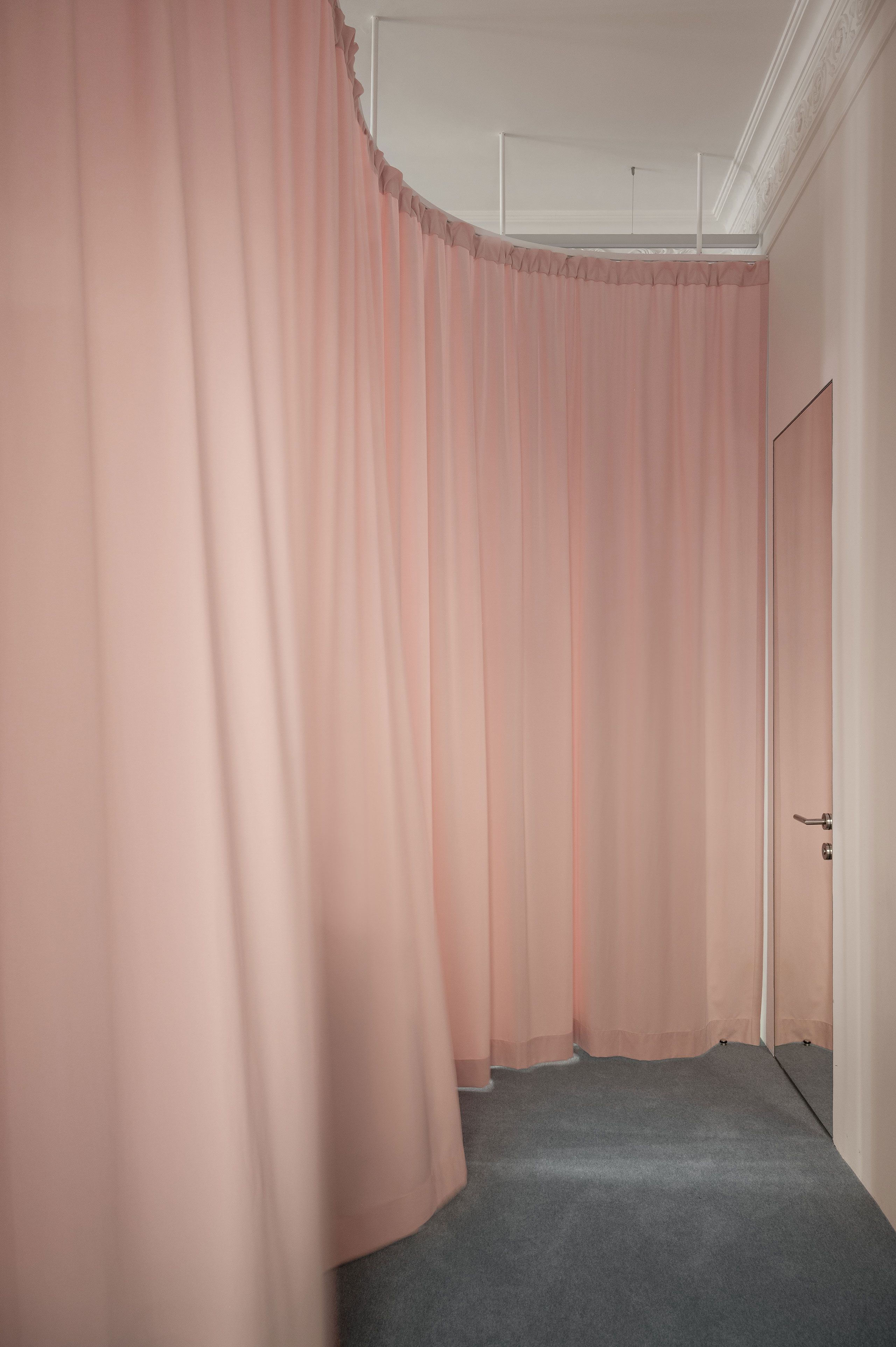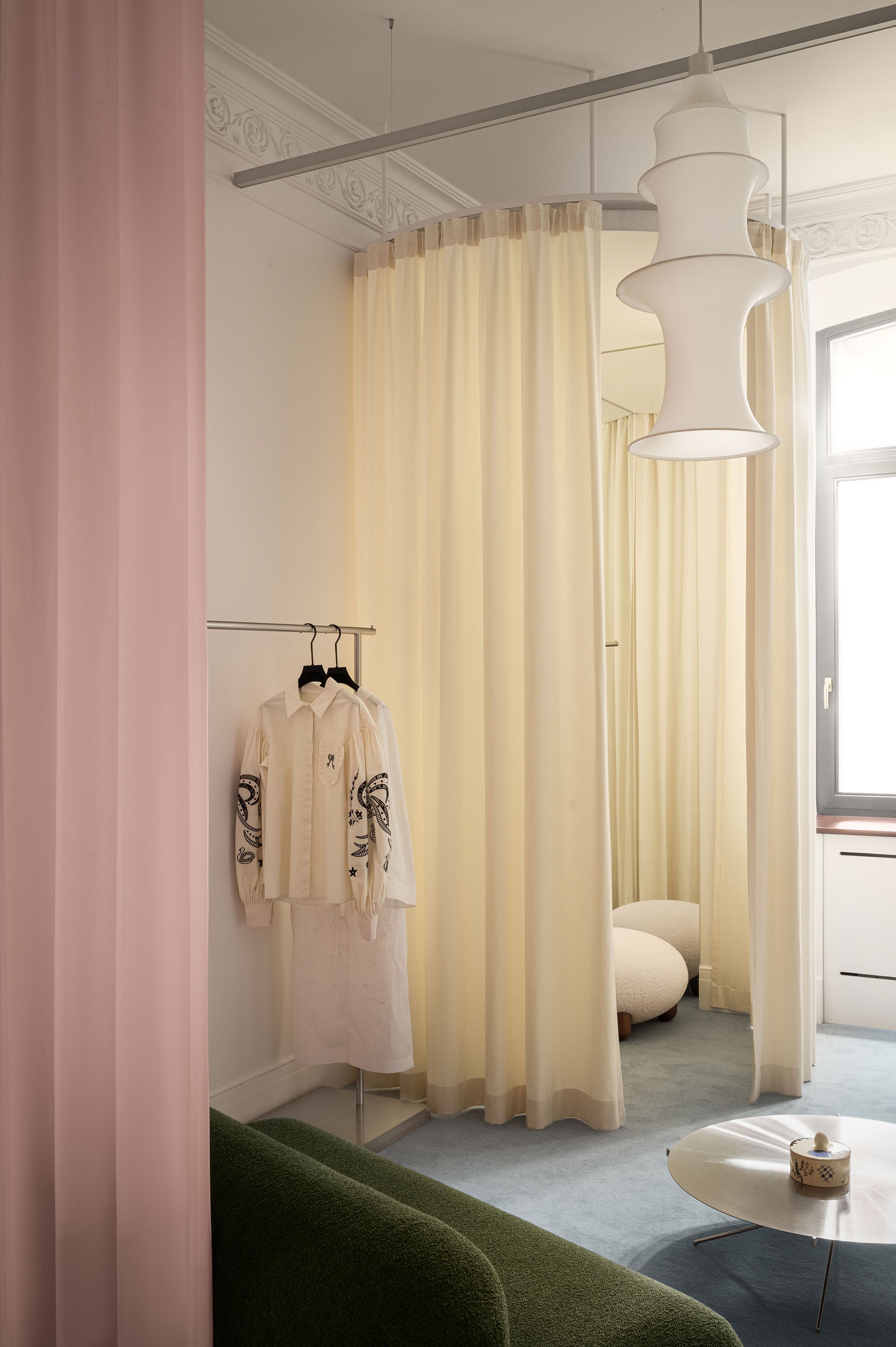最终,整个空间达成了极致精妙的平衡:当代设计的清晰利落,与历史建筑的丰盈厚重相融;静谧的空间氛围,与沉浸式体验感共生。这间展厅不仅陈列品牌作品,更传递着一种生活态度——深深扎根于历史过往,却静默又自信地让传统与当代平等共存,打造出一段可步入、可触摸、可感受的鲜活空间体验。