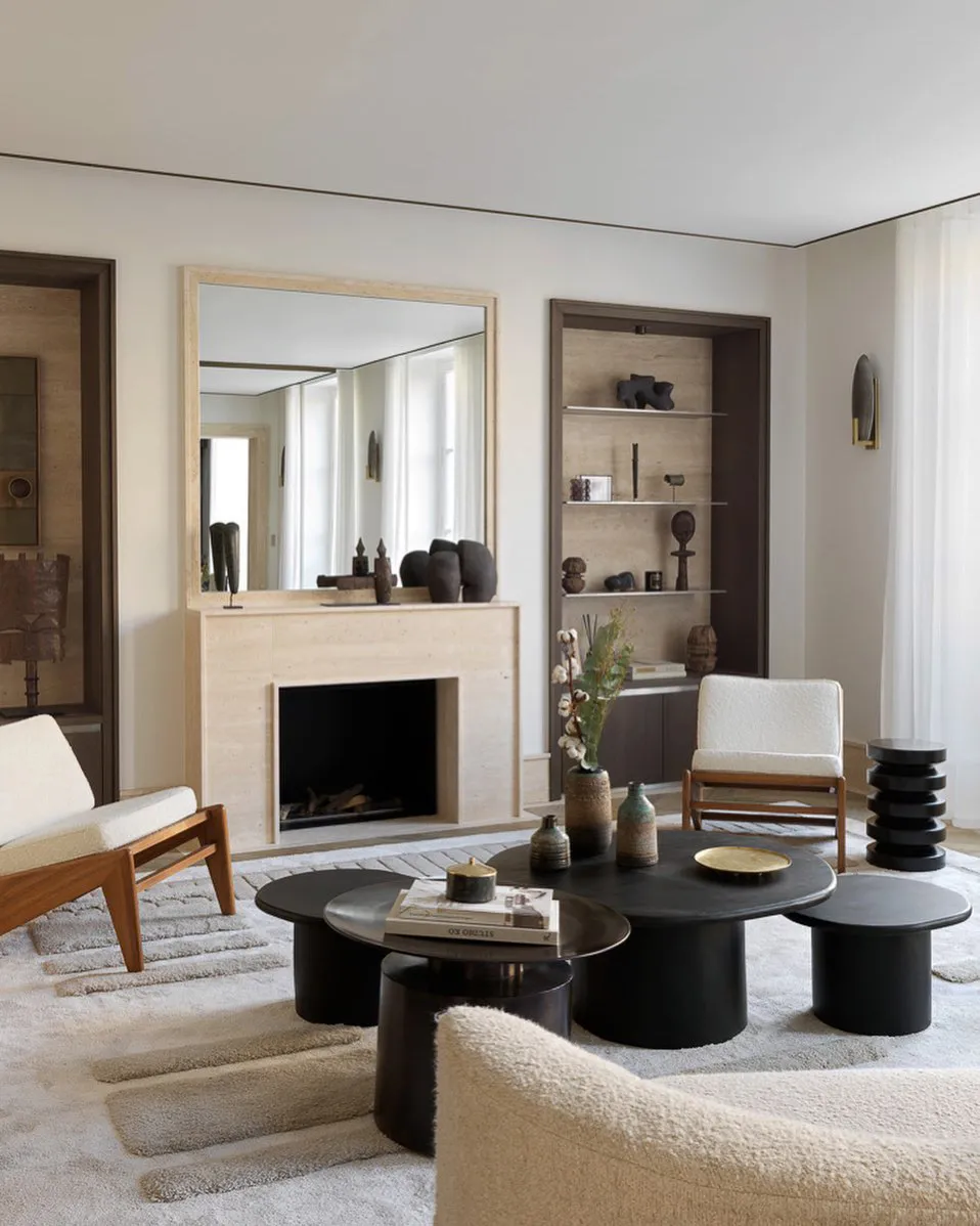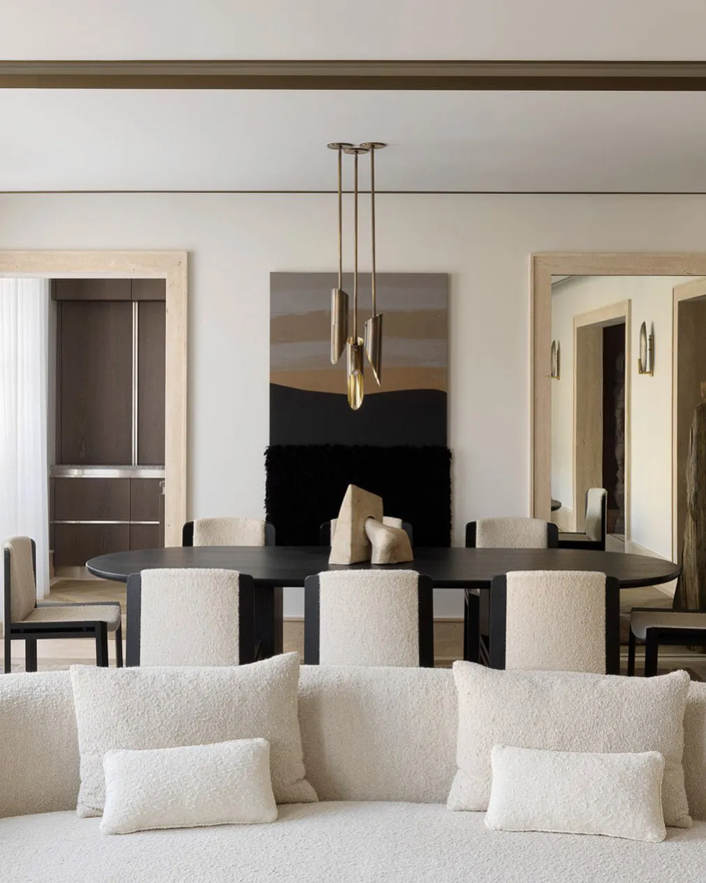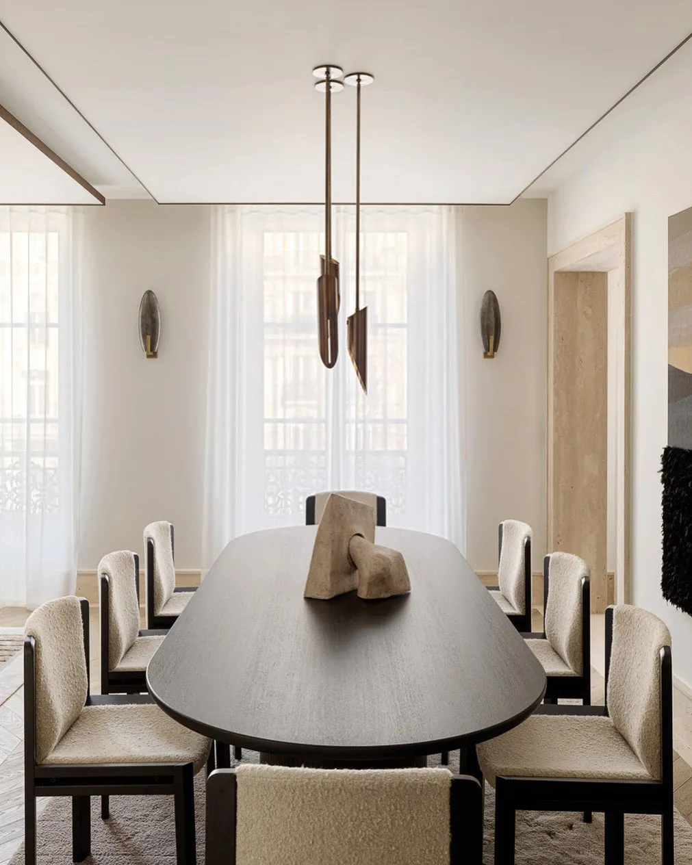 在本案中,随处可见的复古粗犷的陶罐摆件或饰品,让整体空间有着自己的调性,同时又与法式风融合的很好,既没有破坏法式风格特有的优雅浪漫,又以陶罐本身的肌理感呼应了设计师对原材料“野蛮性”的表达。陶罐的古朴质感与木材的温润、混凝土的厚重形成巧妙呼应,柔和了原材料的硬朗线条,而陶罐的复古造型又与法式空间的精致细节相得益彰,让整个公寓在和谐统一的基础上,多了一份沉淀的韵味,也让Felix Millory对空间有机融合的理念,在每一个细微的摆件中得到了极致的落地。