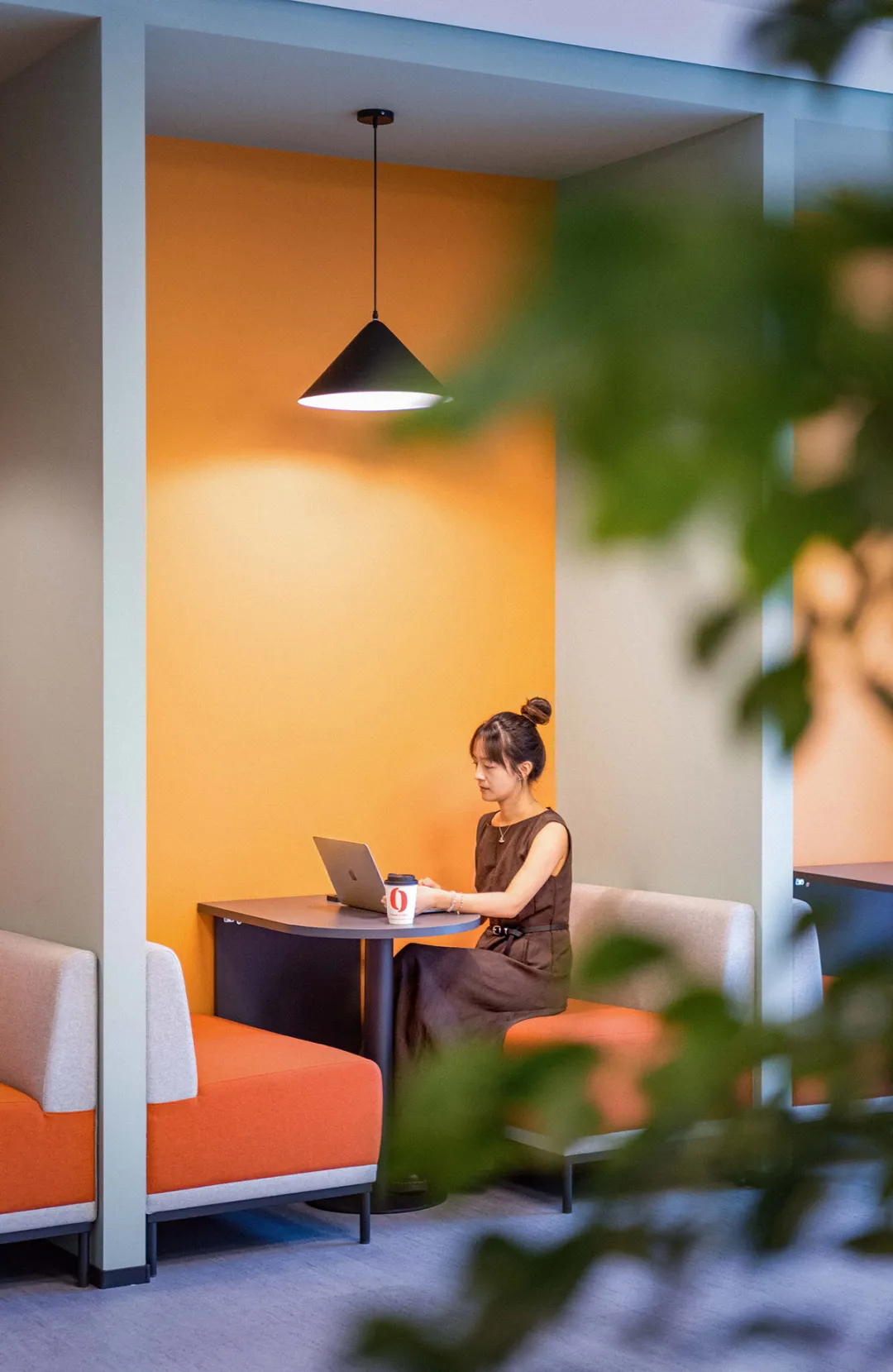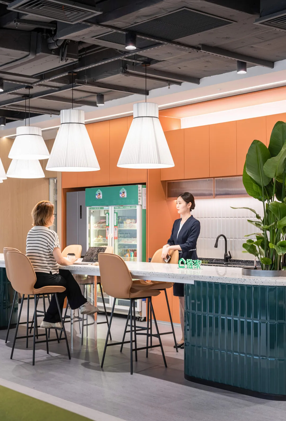 办公空间的设计处处彰显人性化与自主性,员工可以根据自身心情与工作任务,灵活选择合适的空间,在开放区顺畅沟通,在安静隔间专注工作,在绿植环绕的角落或窗边静心思考,这份对个体选择权的尊重,正是链家对人才的信任。开放办公区鼓励日常的高效沟通与协作,封闭、半封闭会议室能满足专注研讨的需求,楼层客厅与各类休闲协作区,更是为员工提供了丰富多元的选择,窗边角落、绿意休闲区,搭配灵活的远程混合办公模式,让办公更显自由。当每个人都能在尊重与自由的氛围中发挥潜能,人与人之间的协作默契自然生成,信任也在点滴相处中不断积累。