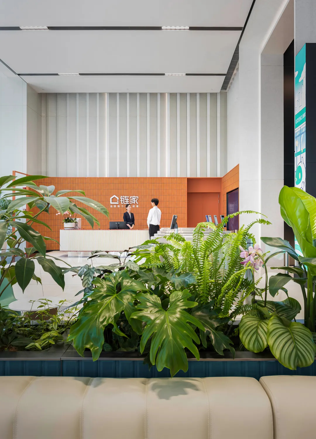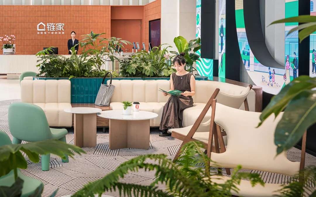 步入链家新总部,通透开阔的接待大堂率先映入眼帘,成为品牌对外的第一印象。绿意点缀的沙发区,为访客与员工提供了舒适放松的交流空间;醒目大气的品牌LED屏,在增添空间灵动性的同时,直观展现着链家的科技实力与专业底气。接待区不只是简单的空间过渡,更是链家“简单、真诚、开放”价值观的具象呈现。访客踏入这里的第一刻,便能感受到品牌传递的可靠承诺;经纪人回到总部,也能体会到满满的归属感与温暖,如同身处安心的家园。