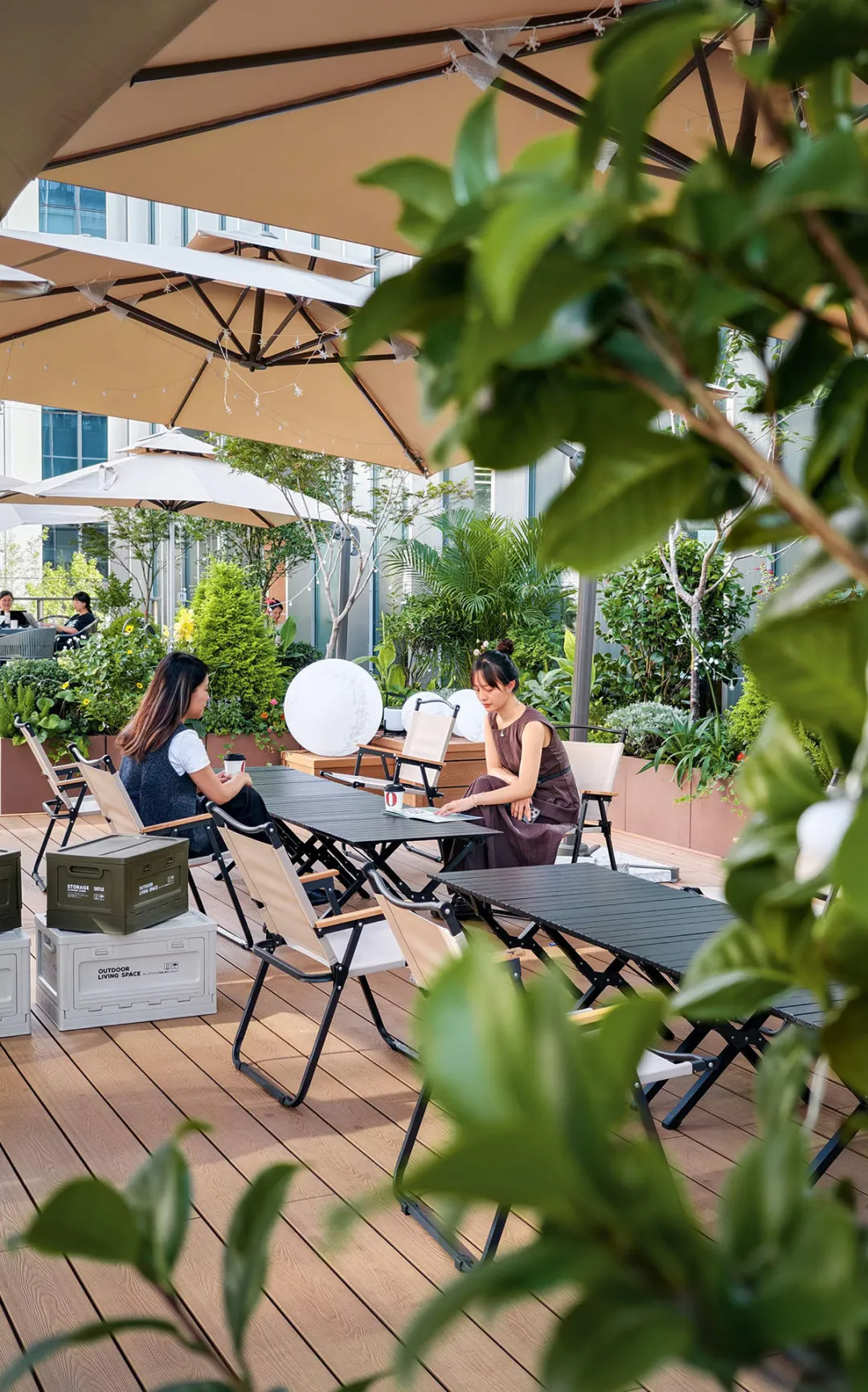 链家新总部不仅是高效工作的场地,更是滋养员工幸福感、凝聚社区活力的温馨港湾,多样化的社区化空间,让信任在日常点滴中慢慢沉淀。员工食堂不止提供餐饮服务,更是充满人文关怀的社交场域,长桌、吧台、圆桌等多样桌椅组合,打破部门壁垒,鼓励跨团队交流,让用餐时光也成为拉近彼此距离、建立信任的契机。露台餐厅被绿意环绕,宛如闹市里的城市绿洲,白天是轻松的研讨交流空间,夜晚变身惬意社交吧台,共同的空间体验,让同事间的联结愈发紧密。图书室与展厅则是员工与品牌共同学习和成长的地方,品牌文化在这里变得可感可见,信任也在一次次交流与认同中不断加深。