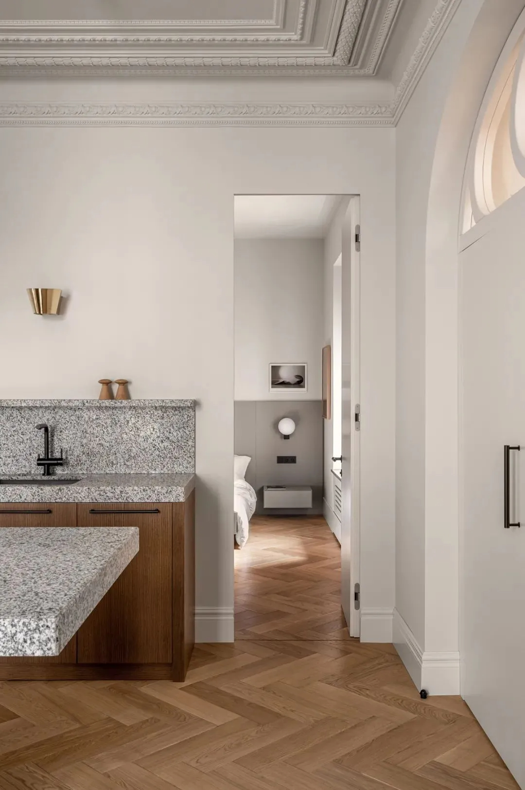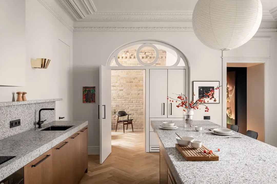 而Yevheniia Dubrovska在设计中的显著特点,就是擅长新旧元素的融合,对每一个细节都仔细打磨,还总在设计中探索新的建筑表达方法,她的作品,总能在轻奢素雅的基调里,流露出丰富而有层次的情感,这套艺术公寓,就是最好的诠释。