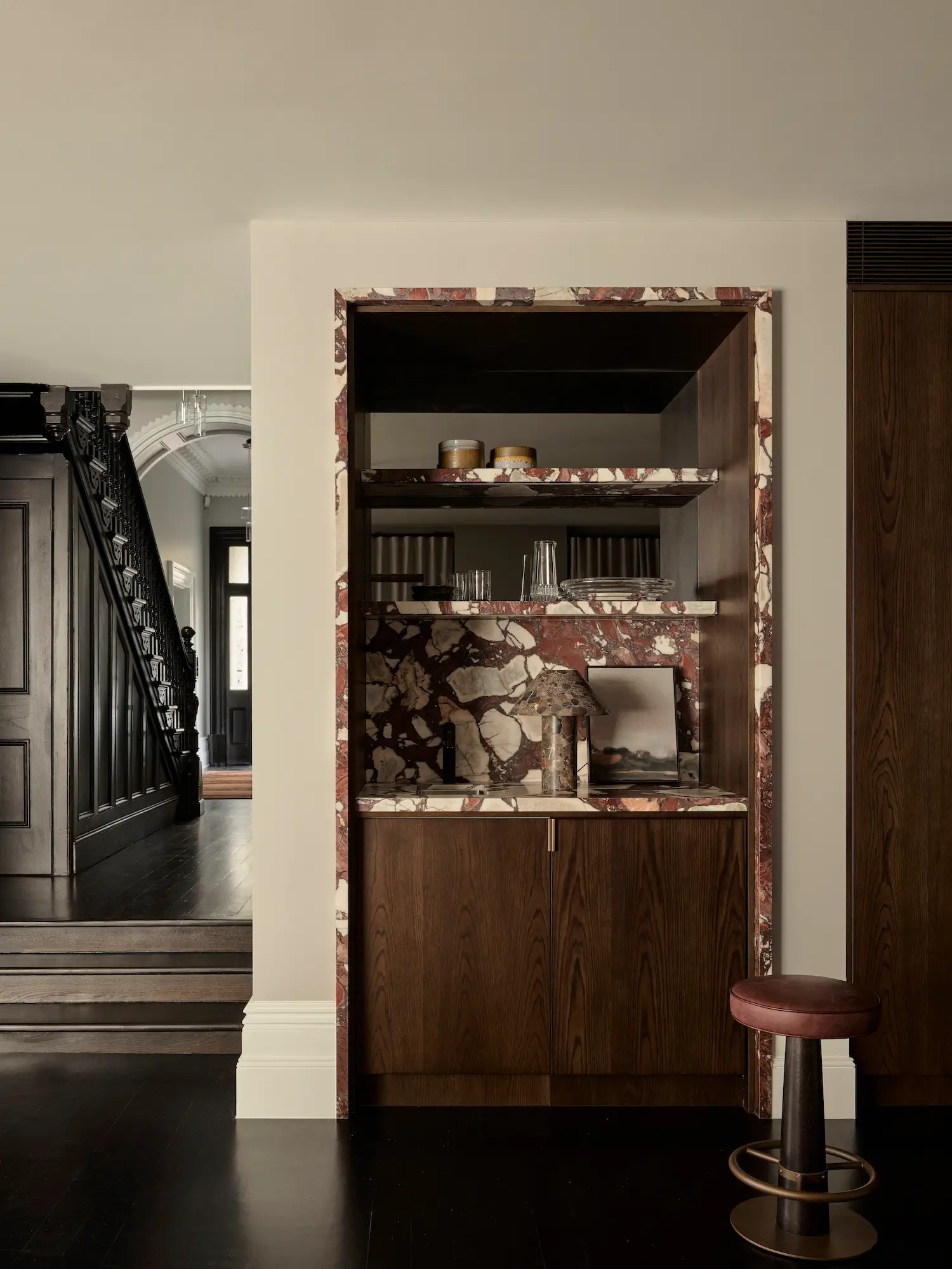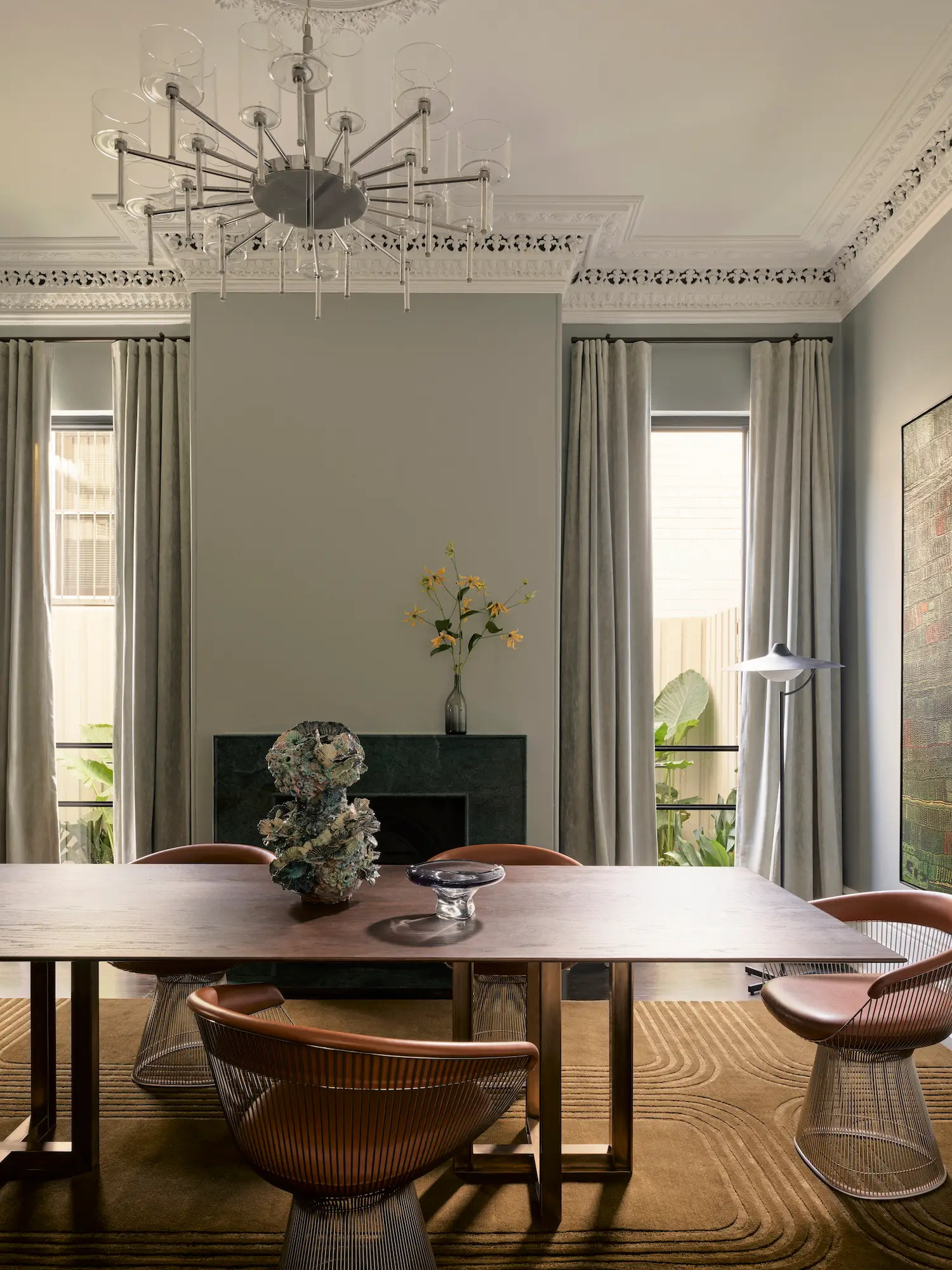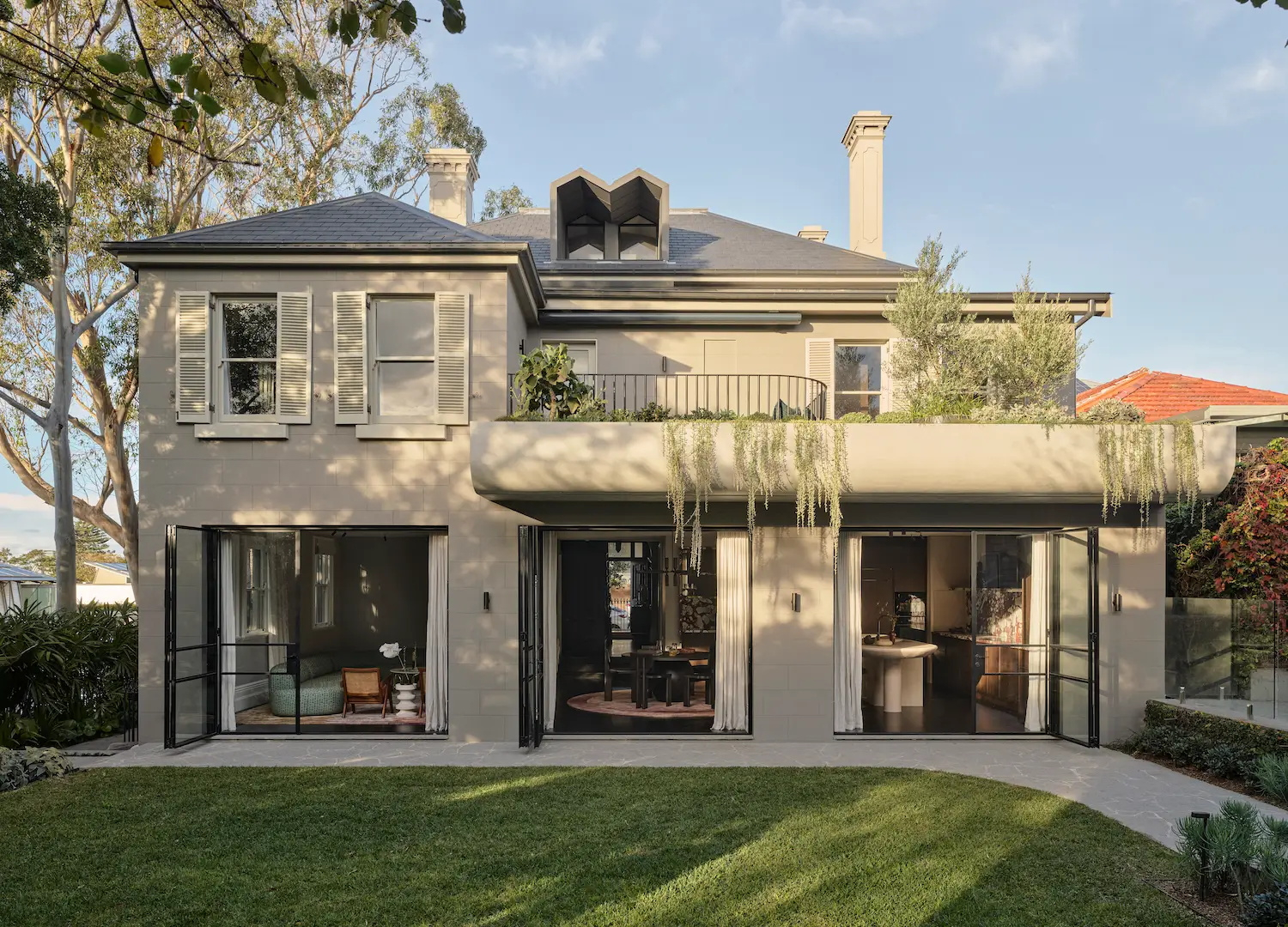 这栋别墅建于19 世纪90年代,是典型的维多利亚风格,外墙爬着精致的铁艺花边,还贴了黑白相间的瓷砖,一眼就能看出岁月的痕迹。不过它以前是间产房,内部空间又小又暗,没什么自然光。Alexander & CO.的任务,就是既要保住这份历史美感,又要融入客户的喜好,重新规划空间,把正式和非正式的生活区域划分清楚 —— 毕竟客户家是个在悉尼慢慢壮大的大家庭,还特别爱招待宾客,空间得实用又有格调。