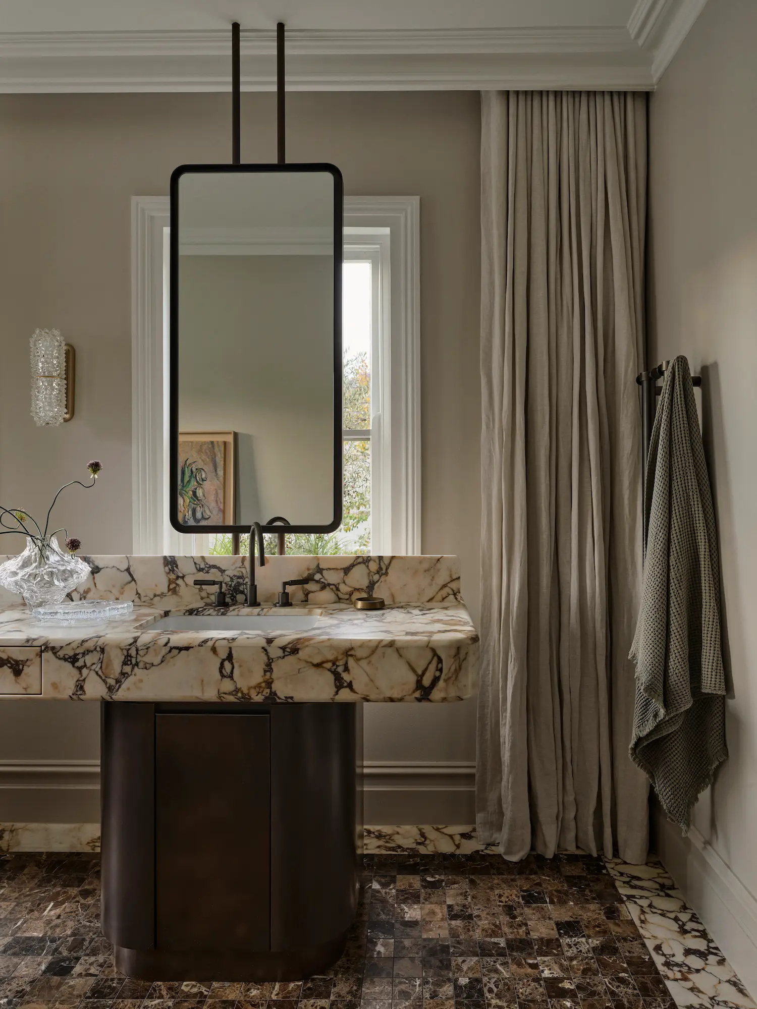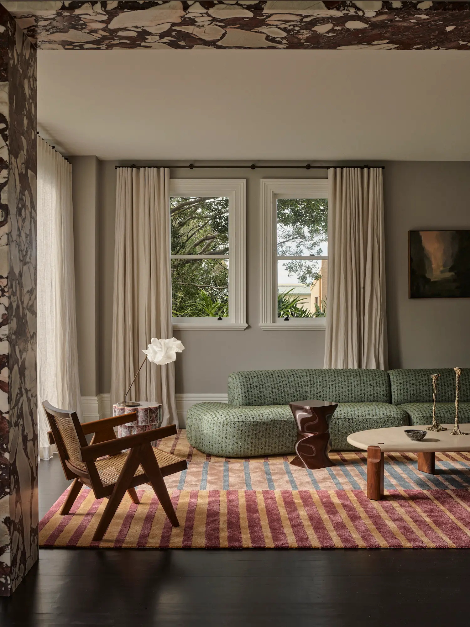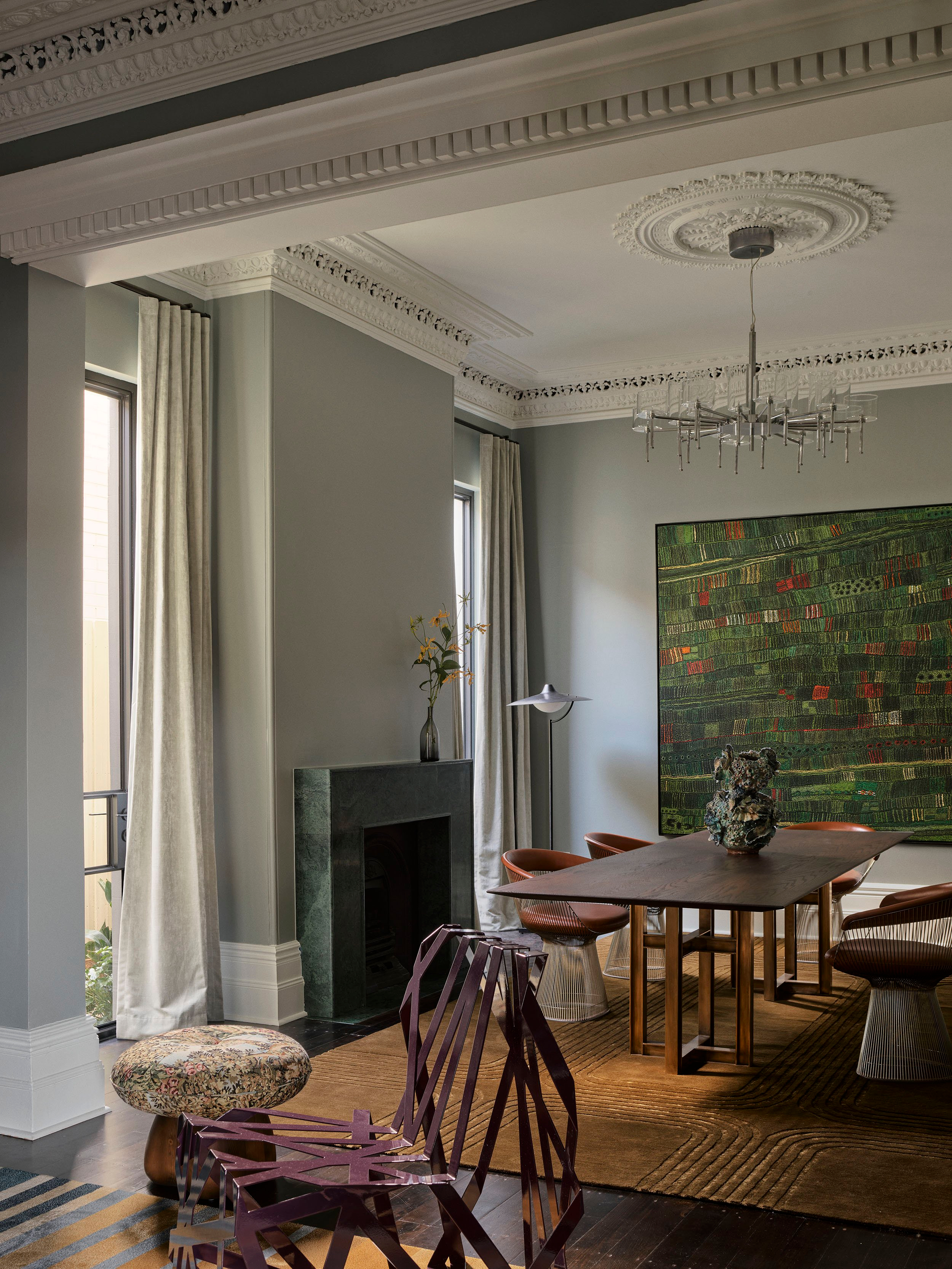 这栋别墅建于19 世纪90年代,是典型的维多利亚风格,外墙爬着精致的铁艺花边,还贴了黑白相间的瓷砖,一眼就能看出岁月的痕迹。不过它以前是间产房,内部空间又小又暗,没什么自然光。Alexander & CO.的任务,就是既要保住这份历史美感,又要融入客户的喜好,重新规划空间,把正式和非正式的生活区域划分清楚 —— 毕竟客户家是个在悉尼慢慢壮大的大家庭,还特别爱招待宾客,空间得实用又有格调。